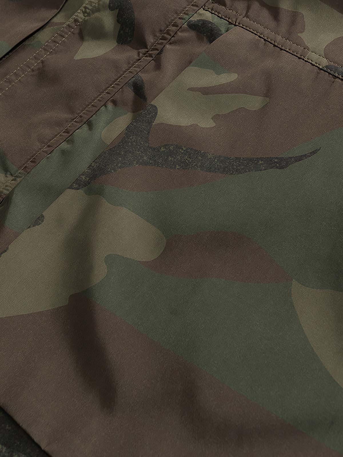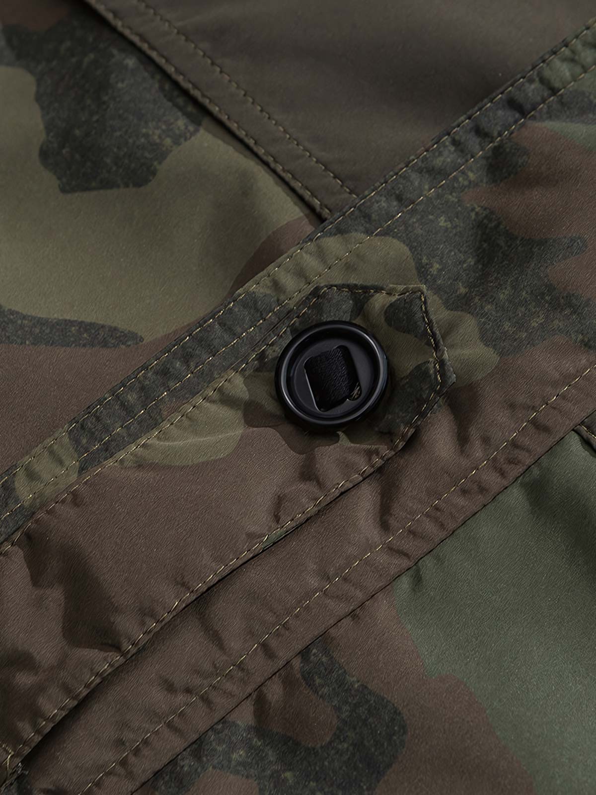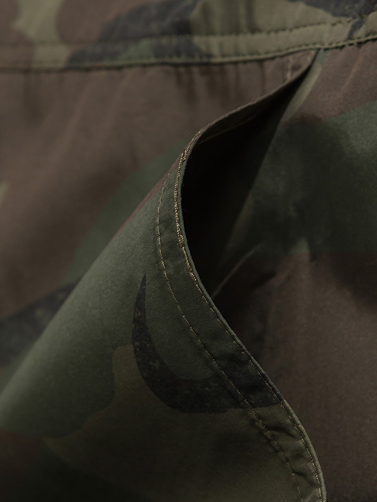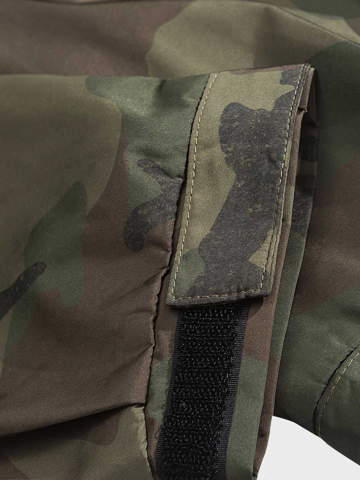 このマウンテンジャケットは、軍用迷彩からインスピレーションを得た機能的なアウトドアウェアです。カモフラージュパターンは、もともとは自然に溶け込むためのものですが、現在では都会的なファッションステートメントとしても人気を博しています。