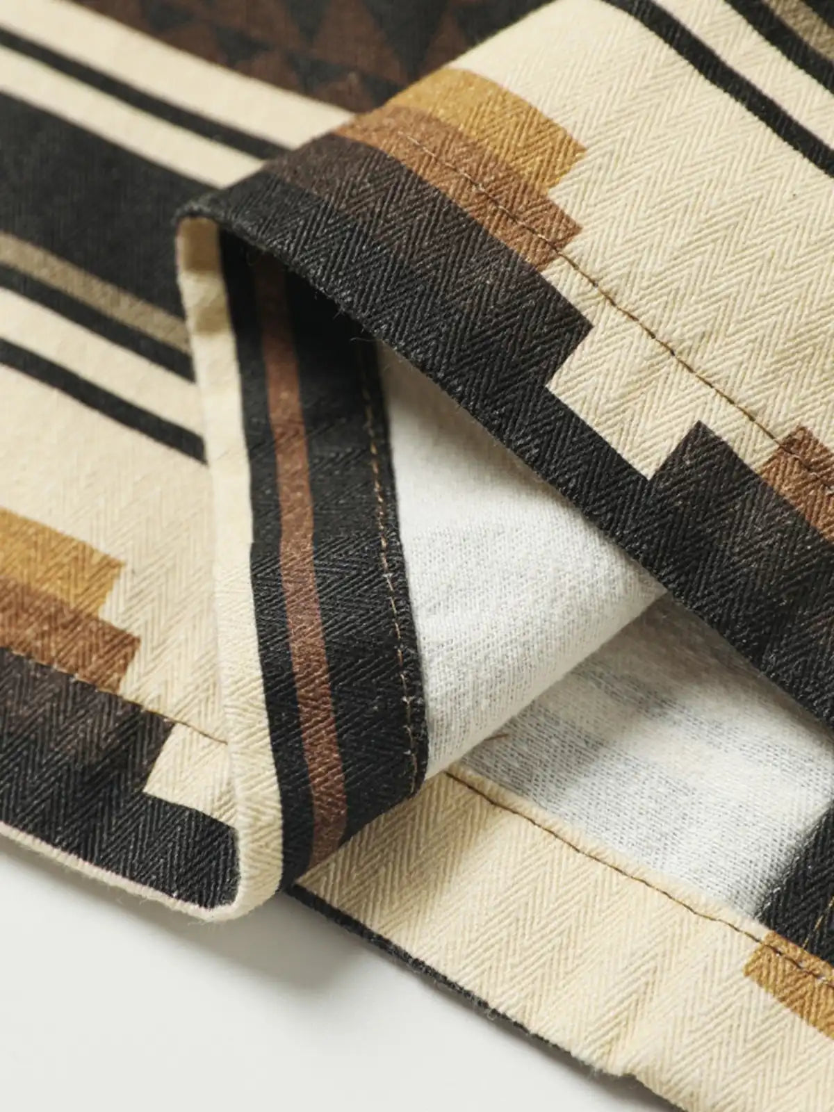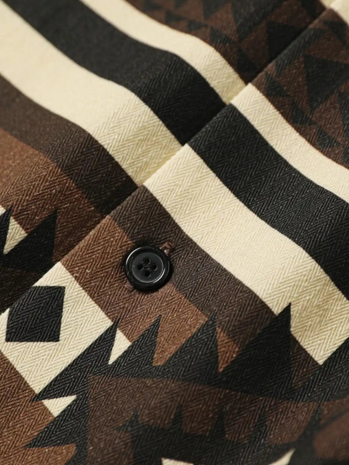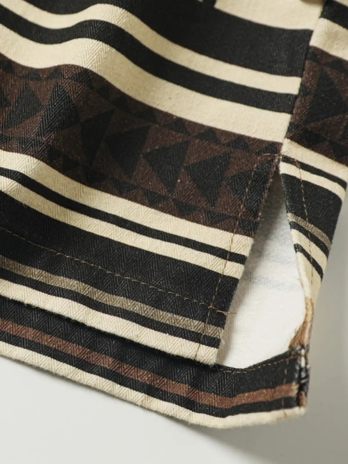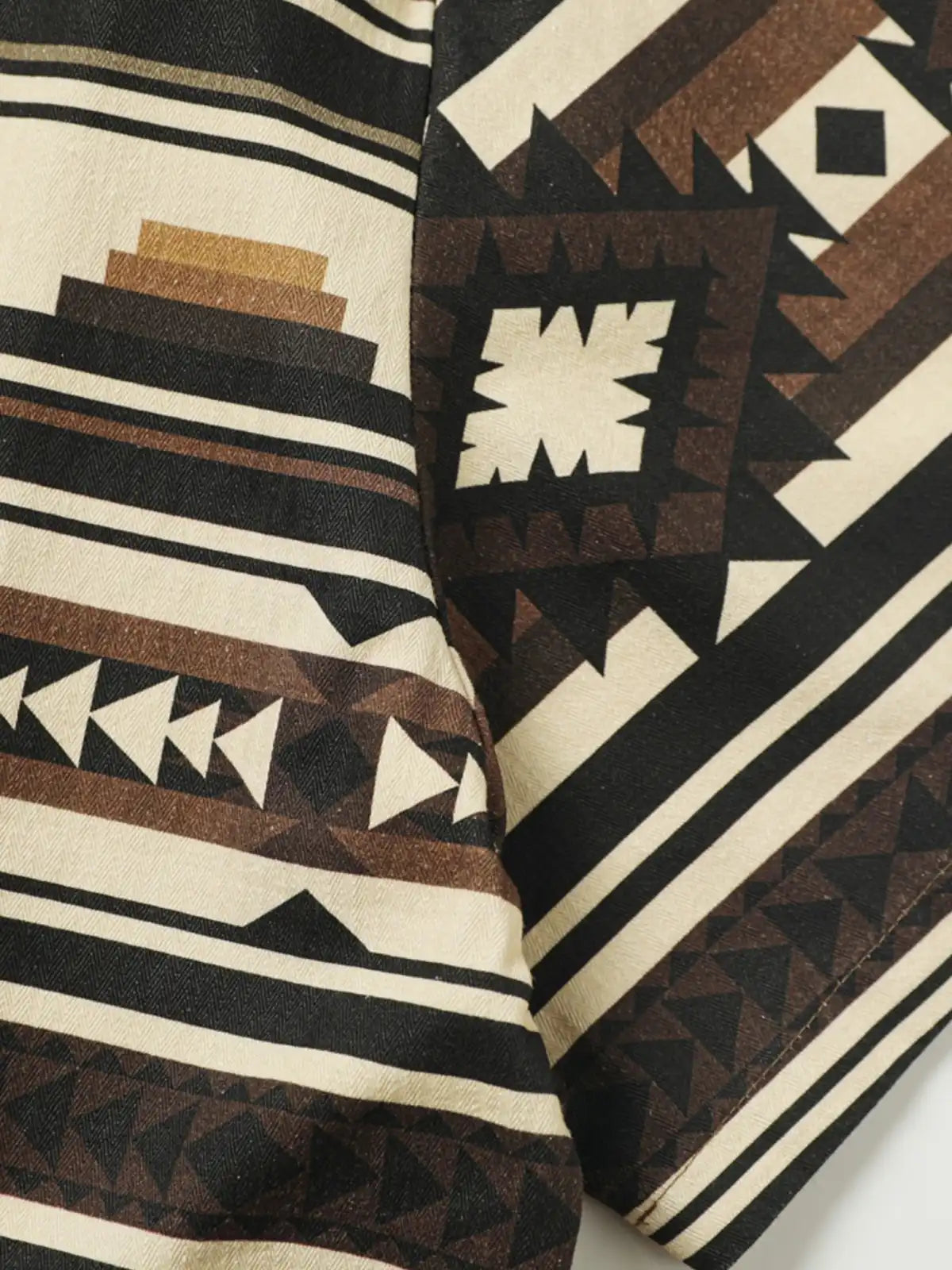エスニックな幾何柄が夏の着こなしに温かみと個性を添えるコットン製半袖キューバシャツ。