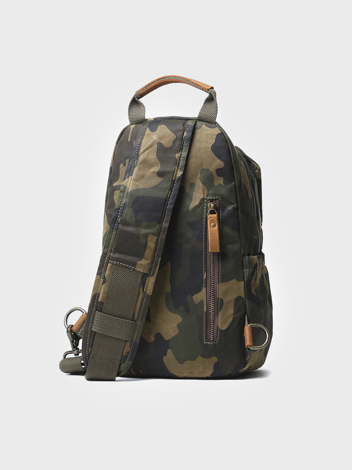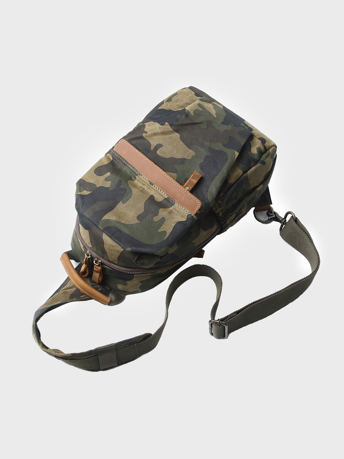 このショルダーバッグは、機能性とスタイルを兼ね備えたデザインです。迷彩柄はミリタリーインスピレーションを感じさせつつ、現代的な都会的アウトドアスタイルにもマッチします。手掛けとショルダーの2way使用が可能で、日常の使用や週末のアウトドアに適しています。さりげないレザーのトリムが高級感を演出します。