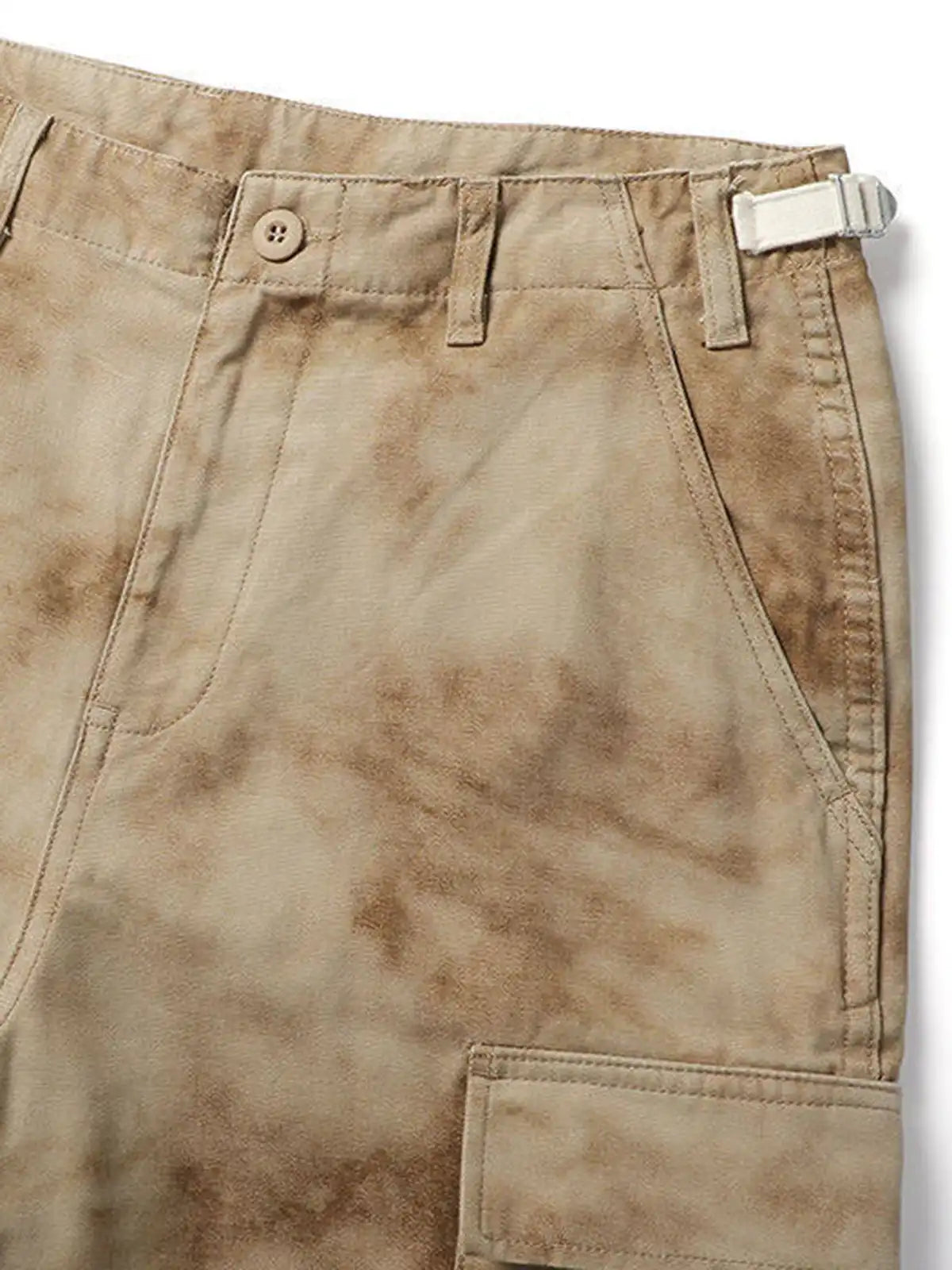 本製品は、柔らかな質感のコットン100%生地を採用し、独特の洗い加工によるムラ染め風の色合いが、レトロかつアーティスティックな雰囲気を演出します。両サイドに配した大きめのカーゴポケットは収納力に優れ、実用性とデザイン性を両立。ウエスト部分にはアジャスターが付いており、ベルト不要でサイズ調整が可能です。ゆったりとしたワイドシルエットと長めの丈が、男女問わずリラックスした着こなしを楽しめる要因に。吸湿性・通気性に優れ、肌触りもソフトなコットン素材は夏の暑い日でも快適な履き心地を提供します。