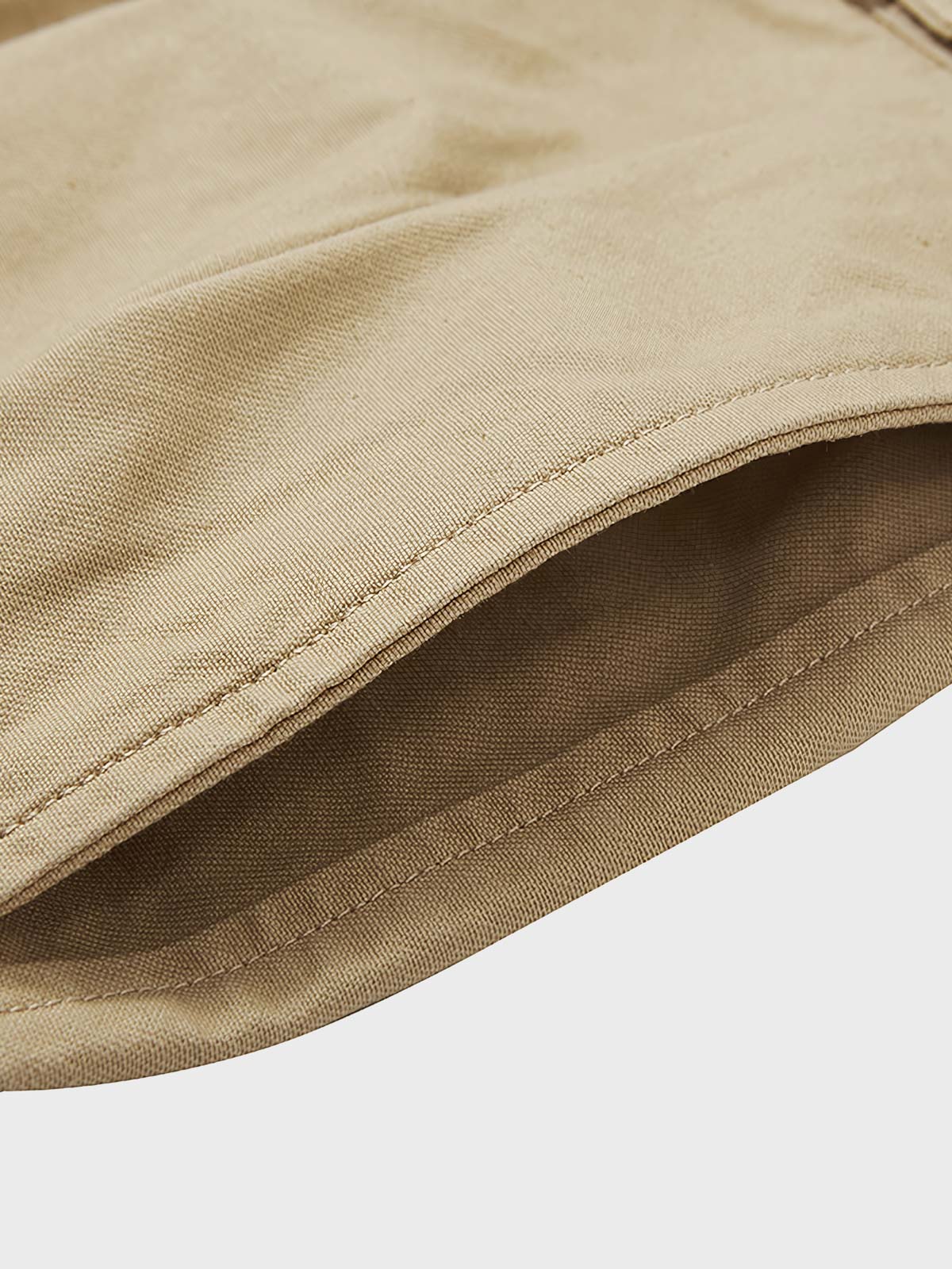 このショートパンツは、英国軍のグルカパンツにインスパイアされたデザインで、元々はネパールのグルカ兵によって着用されていた伝統的な軍用トラウザーズです。グルカパンツはそのユニークな快適さと機能性で知られており、特に過酷な環境での活動に適しています。ダブルアジャストストラップのデザインが実用性と調節可能性を強化し、さまざまな体型や活動に適応します。
