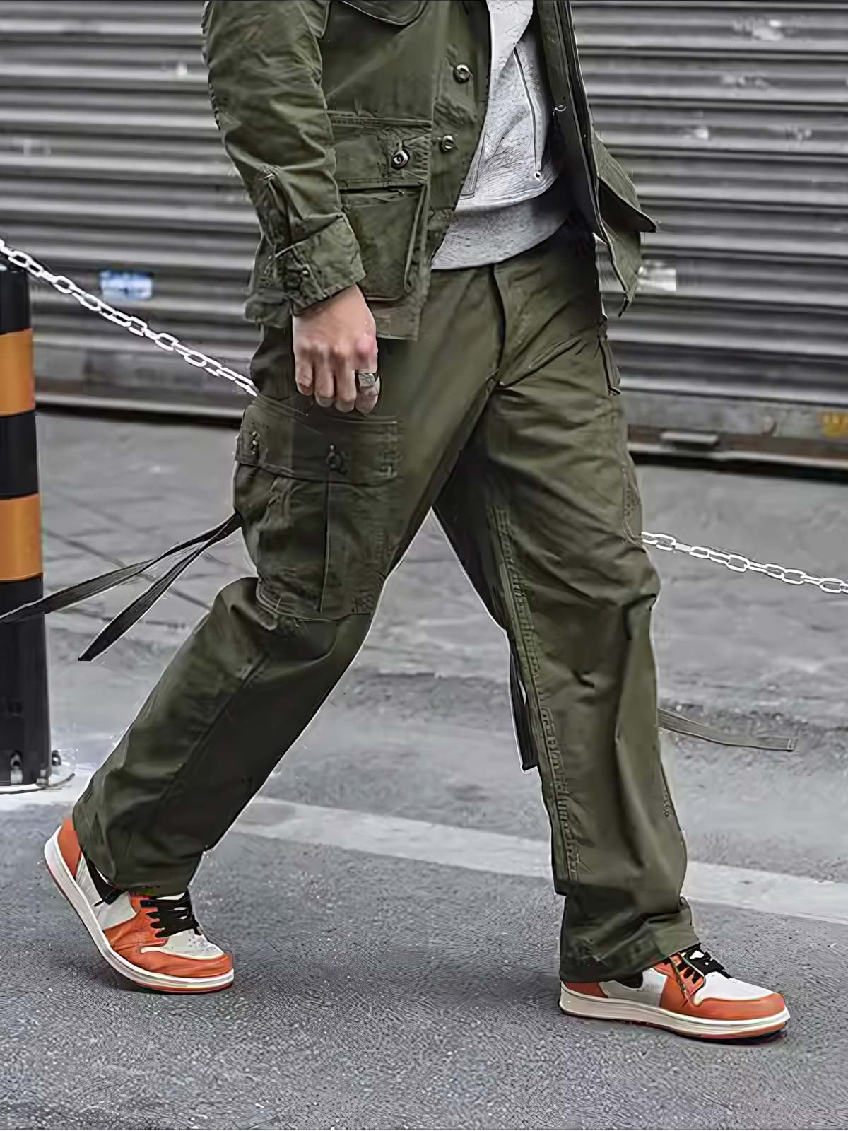 このカーゴパンツは、実用的な軍服に由来するデザインを採用しています。多機能性を備えたポケットは、軍隊での必需品携行の必要性から生まれました。