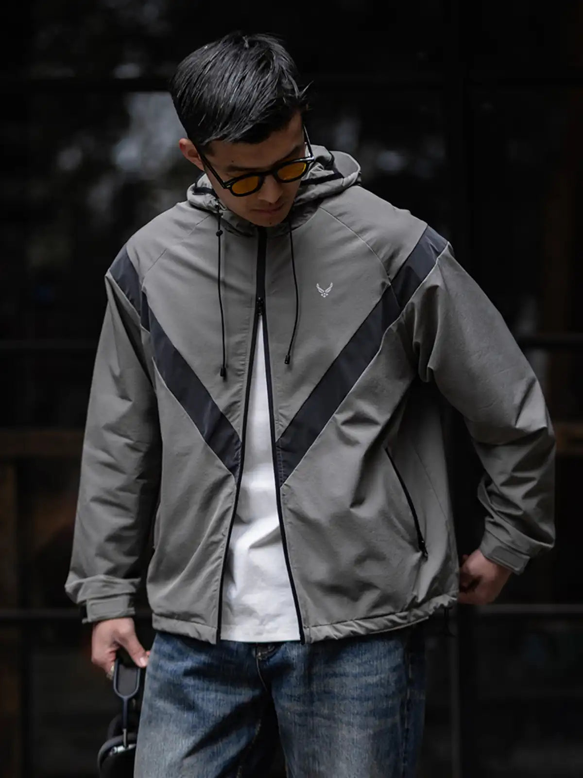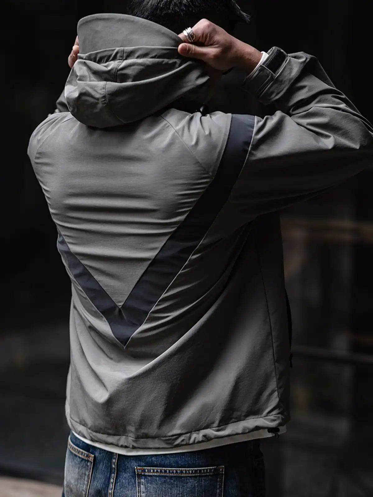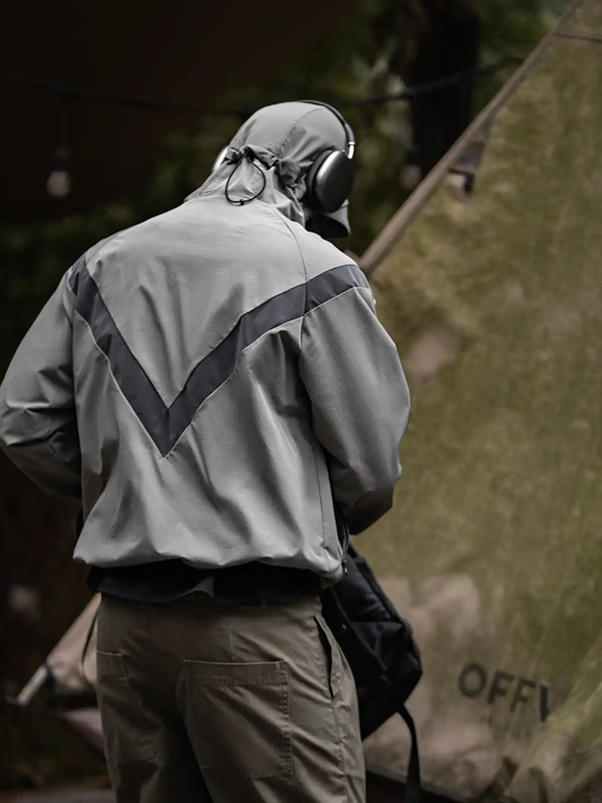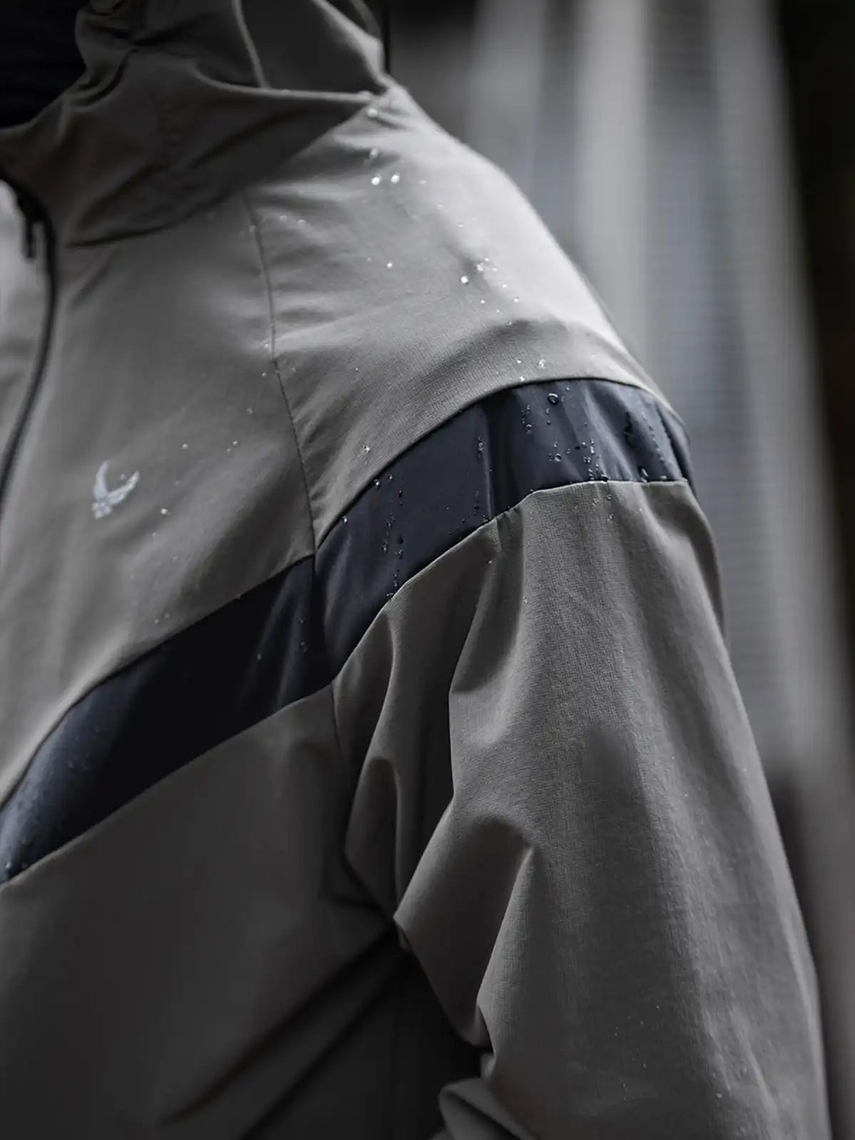 1990年代に米軍が採用したIPFU(Improved Physical Fitness Uniform)をベースに、アウトドア機能とミリタリー要素を融合したハイブリッドデザイン。4方向ストレッチが効くソフトシェル素材に特フッ素防水コーティングを施し、5000mm相当の耐水圧を実現。フードは3点調整式でヘルメットやキャップとの併用が可能。ラグランに近い肩のパターンで、アジア体型に合わせてゆったりとしたシルエットを保ちつつ、動きやすさを向上。夜間の視認性を高める反射プリントのVロゴや、ミリタリーライクな圧着ジッパーなど、細部にわたるディテールにもこだわりを感じさせる一着。