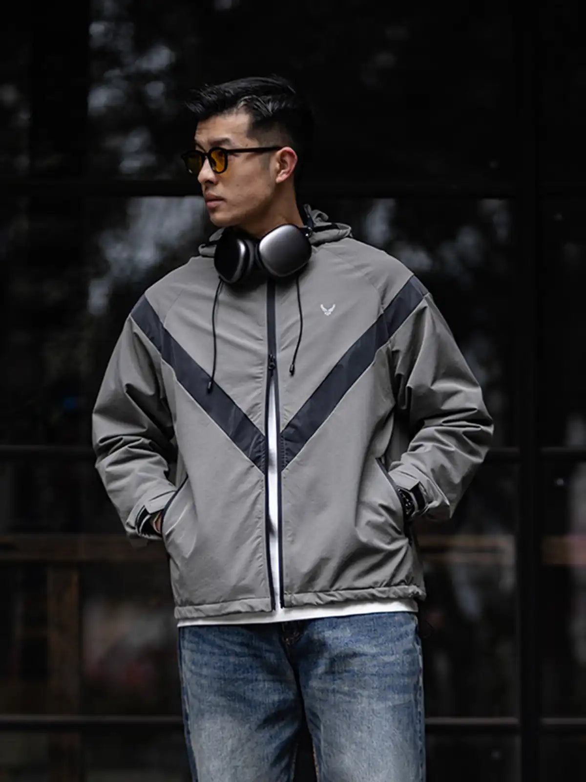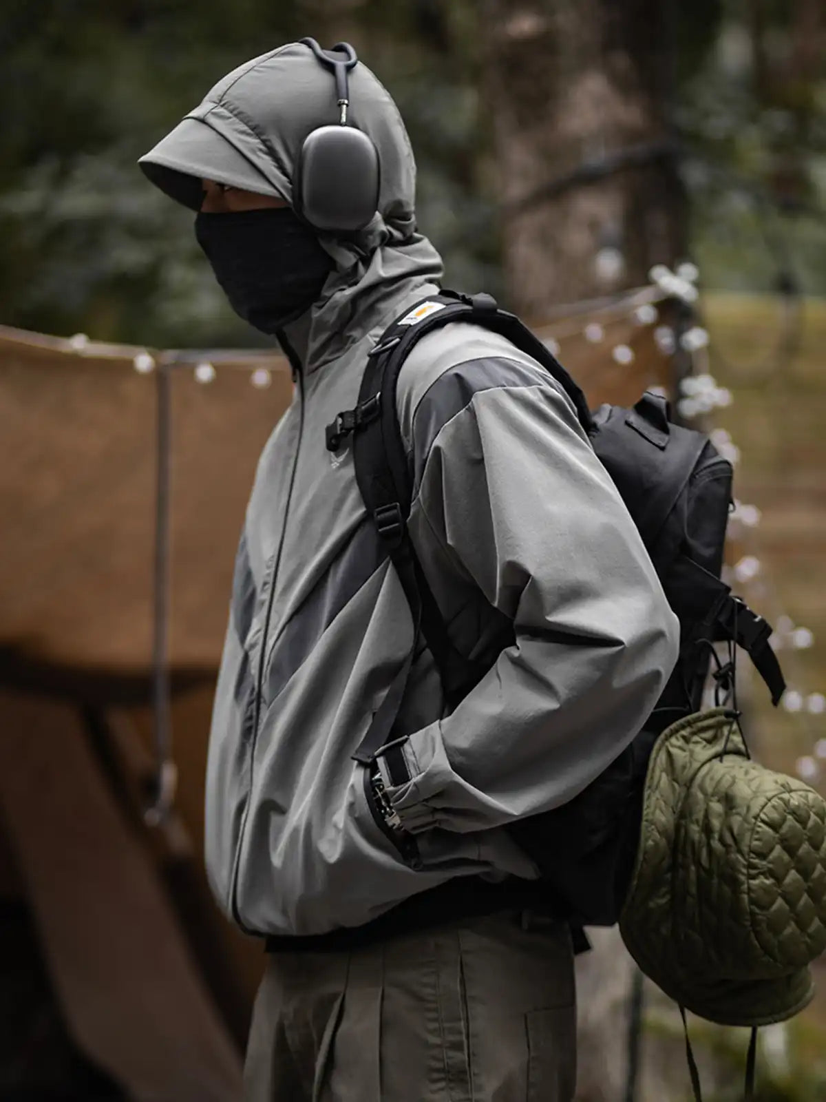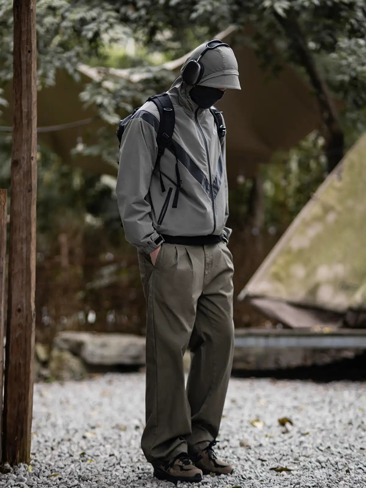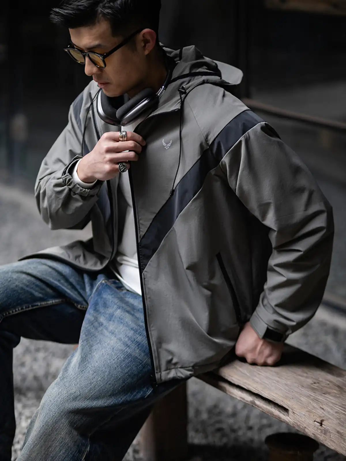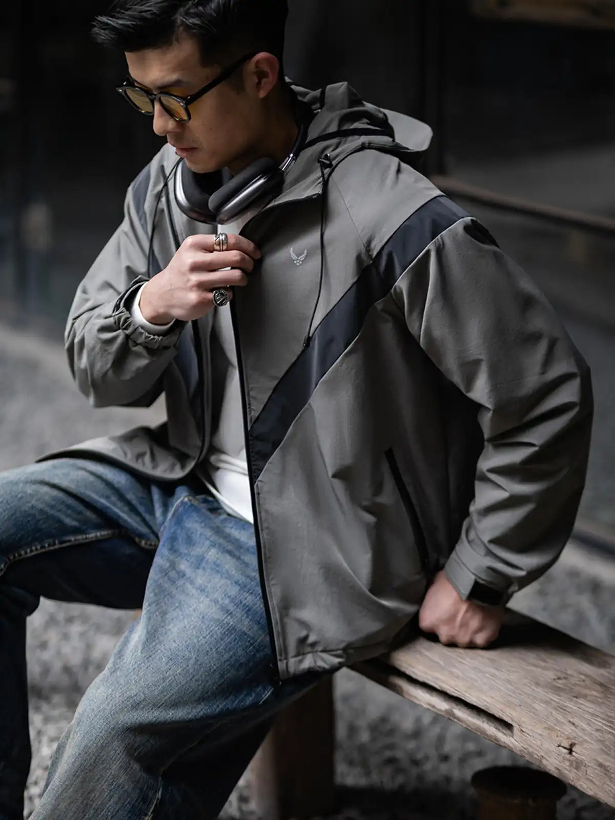 1990年代に米軍が採用したIPFU(Improved Physical Fitness Uniform)をベースに、アウトドア機能とミリタリー要素を融合したハイブリッドデザイン。4方向ストレッチが効くソフトシェル素材に特フッ素防水コーティングを施し、5000mm相当の耐水圧を実現。フードは3点調整式でヘルメットやキャップとの併用が可能。ラグランに近い肩のパターンで、アジア体型に合わせてゆったりとしたシルエットを保ちつつ、動きやすさを向上。夜間の視認性を高める反射プリントのVロゴや、ミリタリーライクな圧着ジッパーなど、細部にわたるディテールにもこだわりを感じさせる一着。