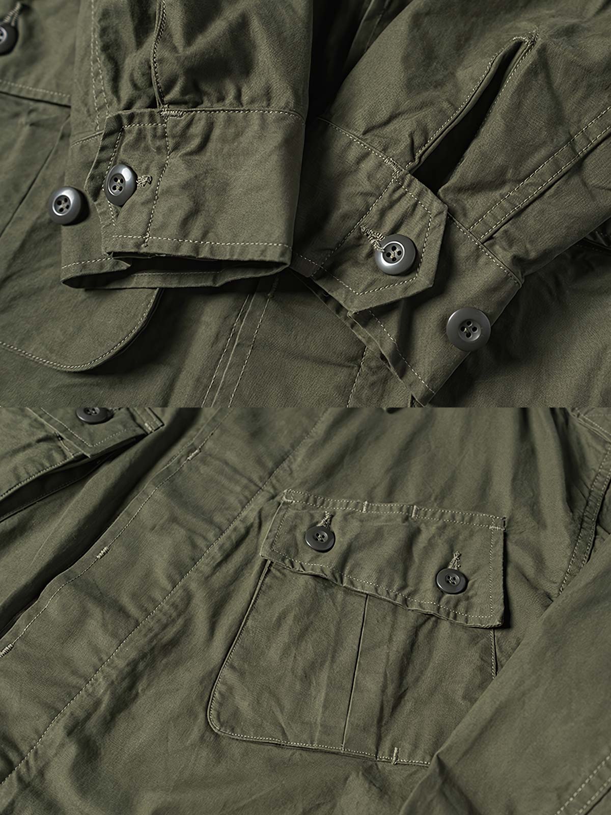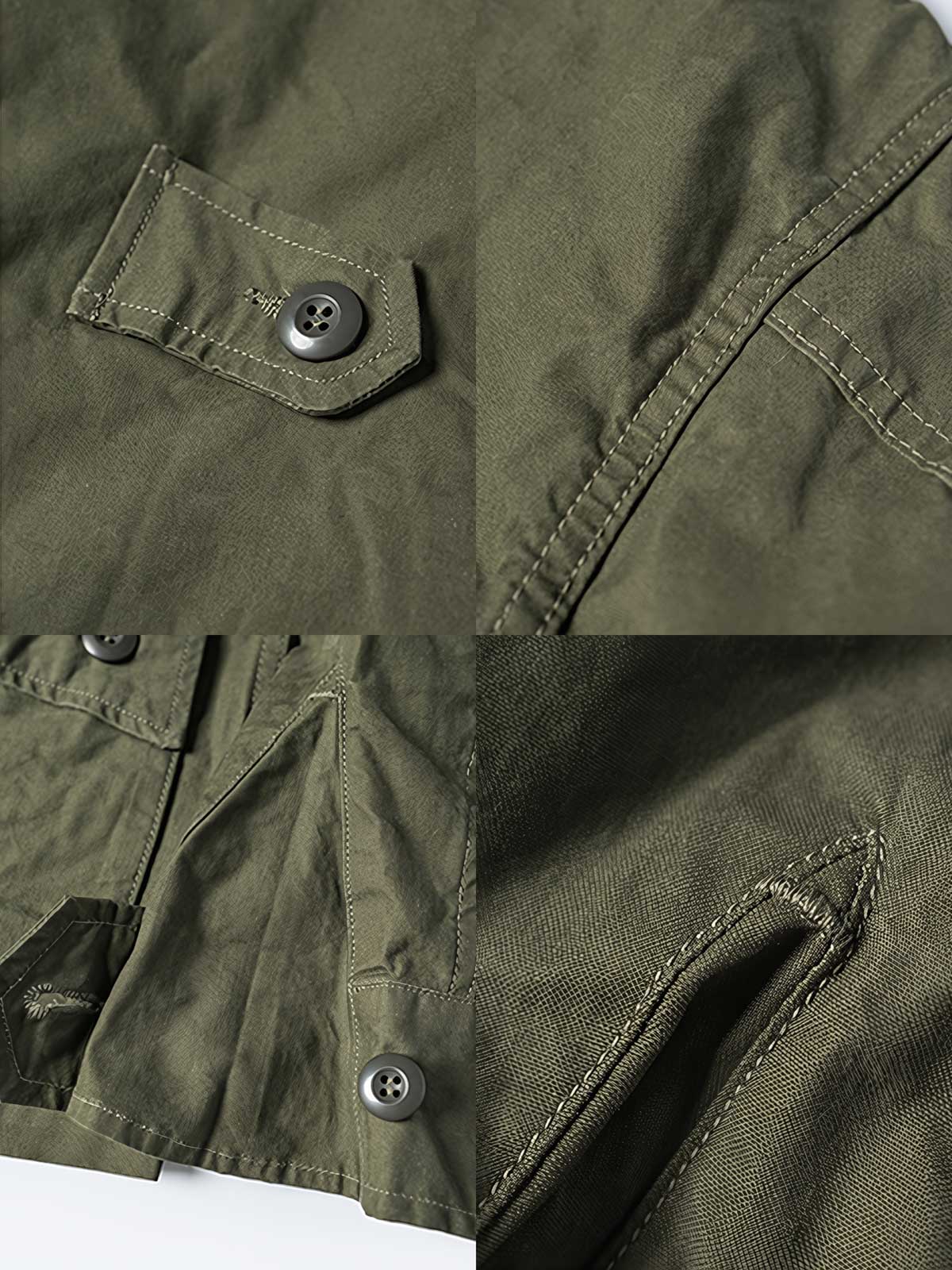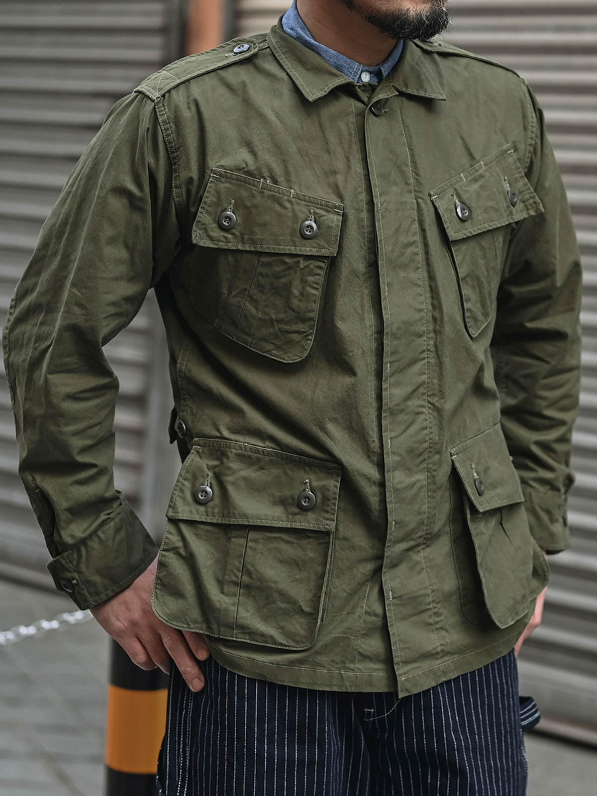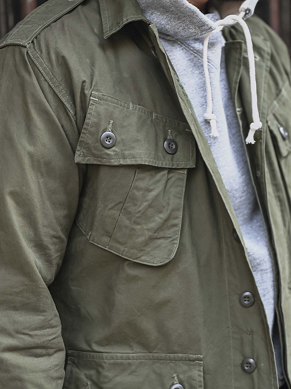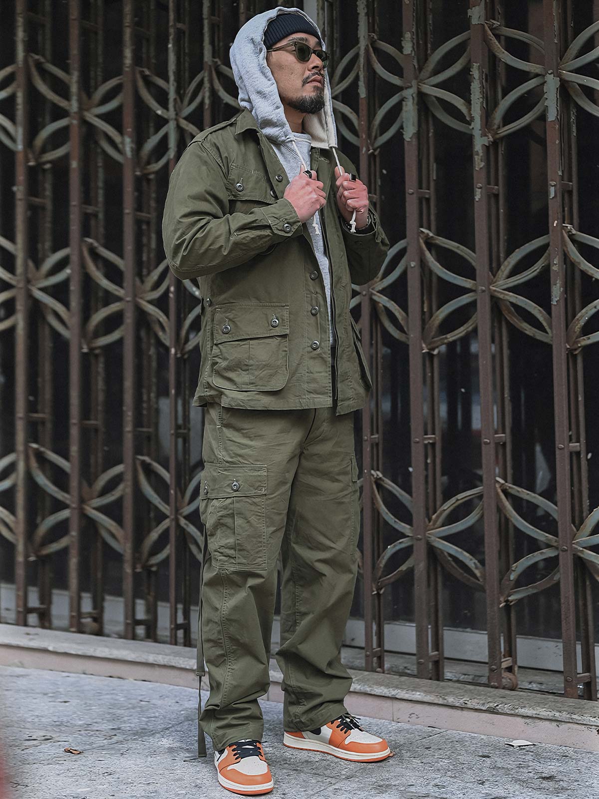 このフィールドジャケットは、軍用衣料に触発された実用的なデザインです。歴史的には、兵士の機能性と快適性を高めるために開発されました。多機能ポケットは、必需品を携帯するための軍の要件から生まれたものです。
