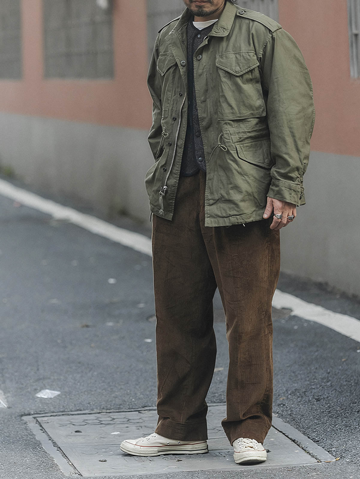 M-51は伝統的なフィールドジャケットの実直なシルエットを保ちつつ、現代のスタイリングに合うように微調整されています。ややゆったりとしたフィット感は自由な動きを提供し、重ね着にも適しています。