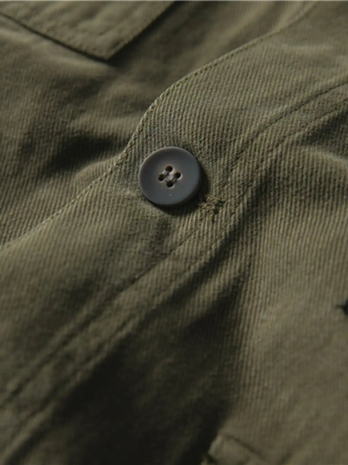 フロントに大容量のポケットを複数配置し、収納力とデザイン性を両立。ゆったりめの肩幅と身幅が動きやすさを確保し、ラフなコーディネートからアウトドアスタイルまで幅広く活躍。襟部分は素材を切り替えたり、ステッチワークにこだわることで無骨さと上質感を演出。ワークパンツやデニムと相性抜群で、カジュアルに着こなしやすい一着。
