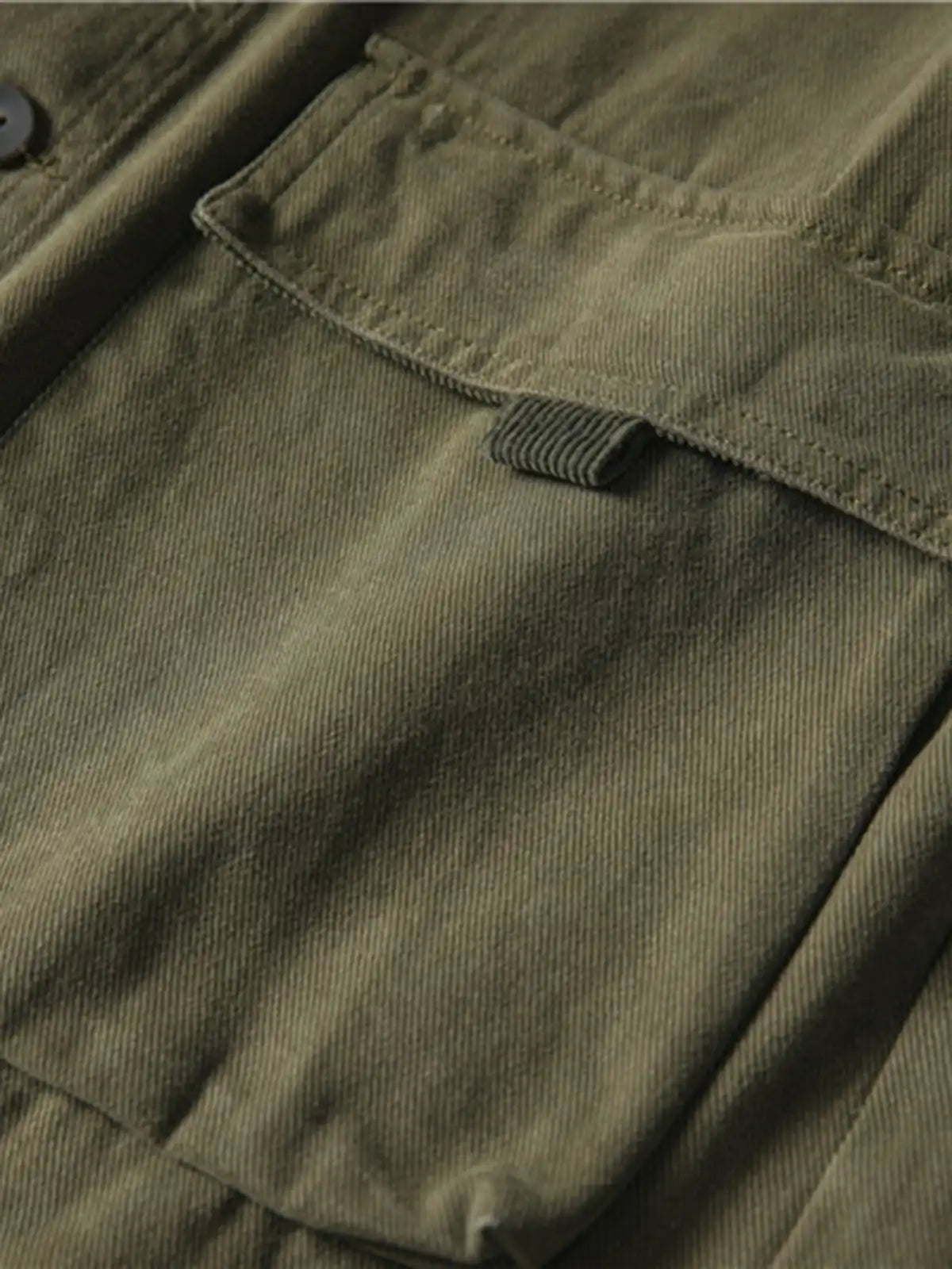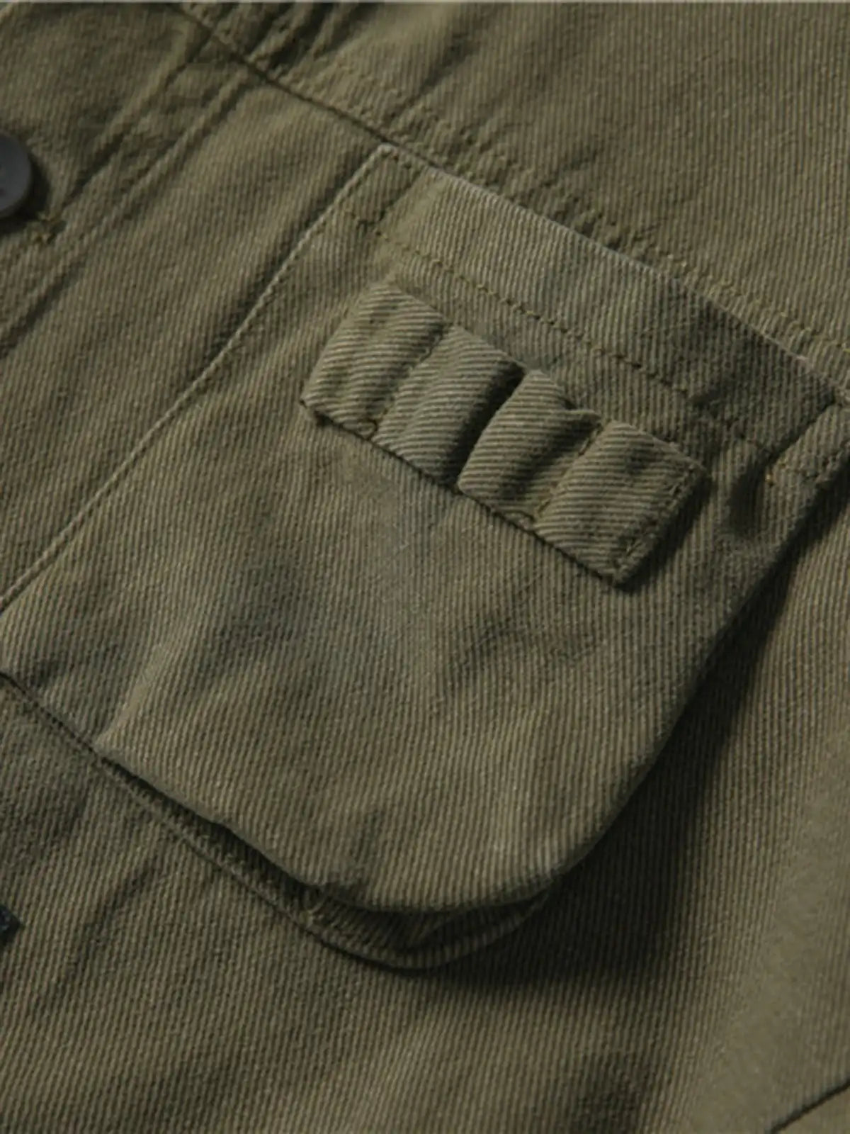 複数のポケットを備えた無骨なデザインと、程よいゆとりのシルエットが特徴のワークテイストジャケット。
