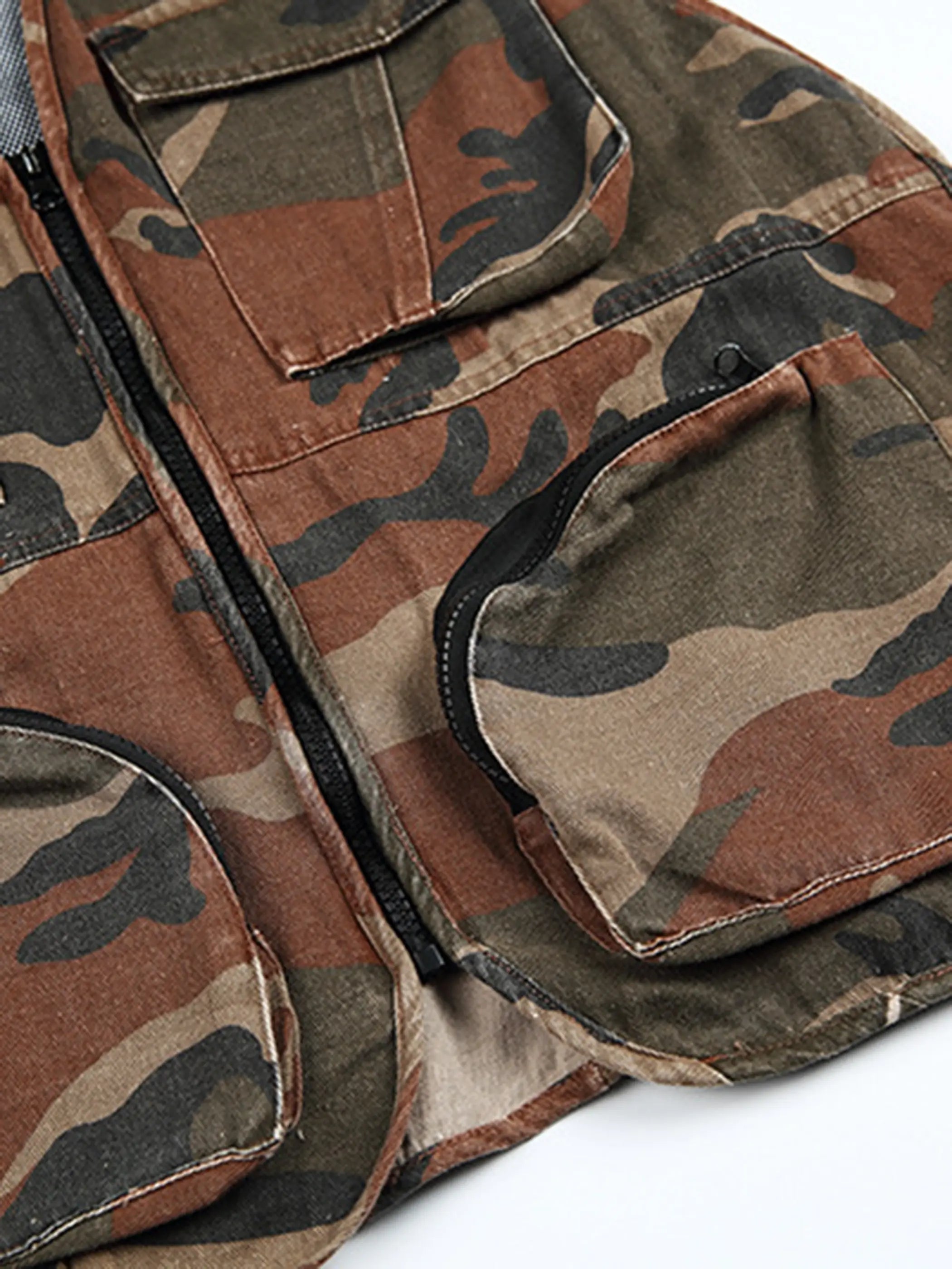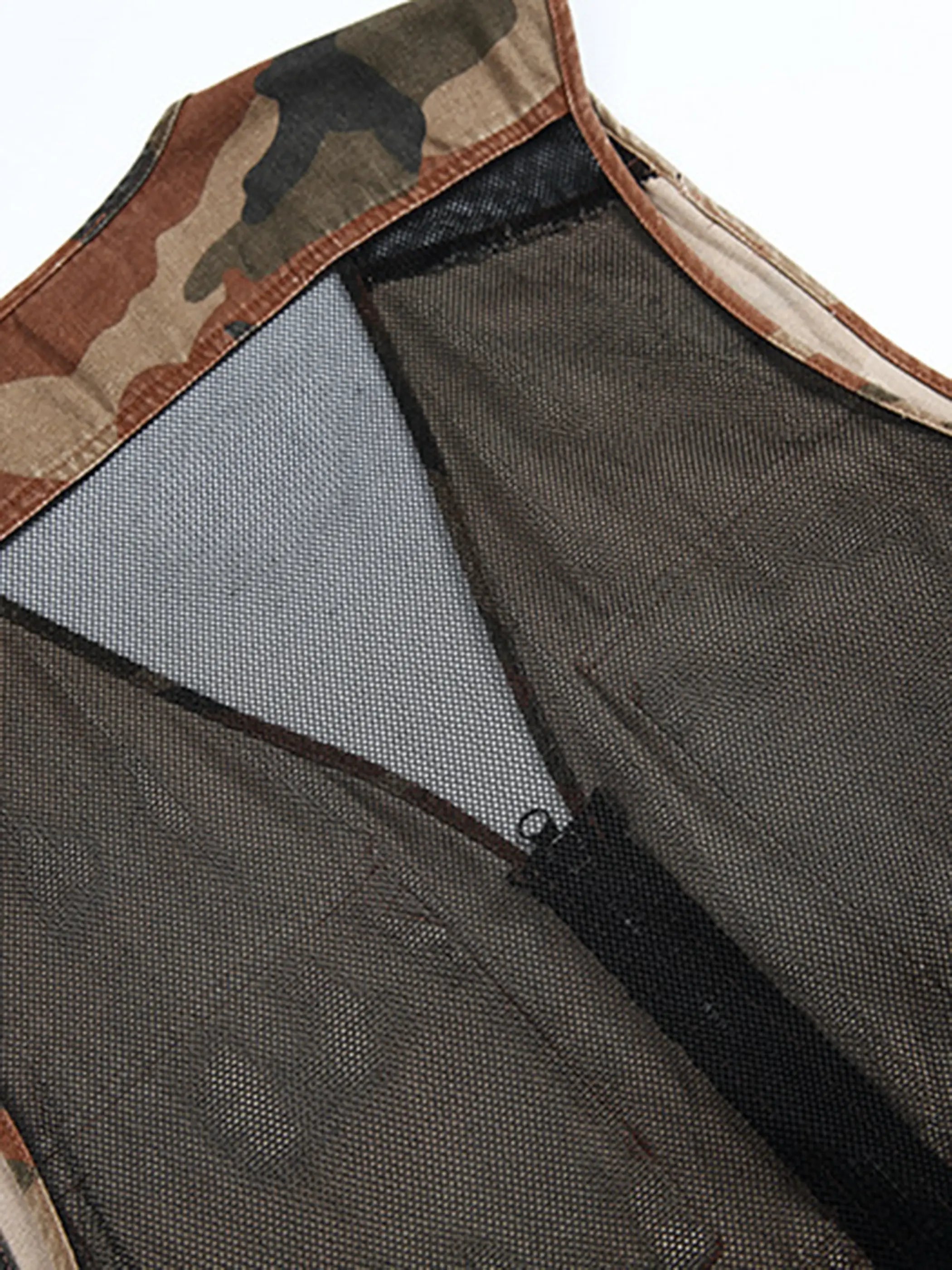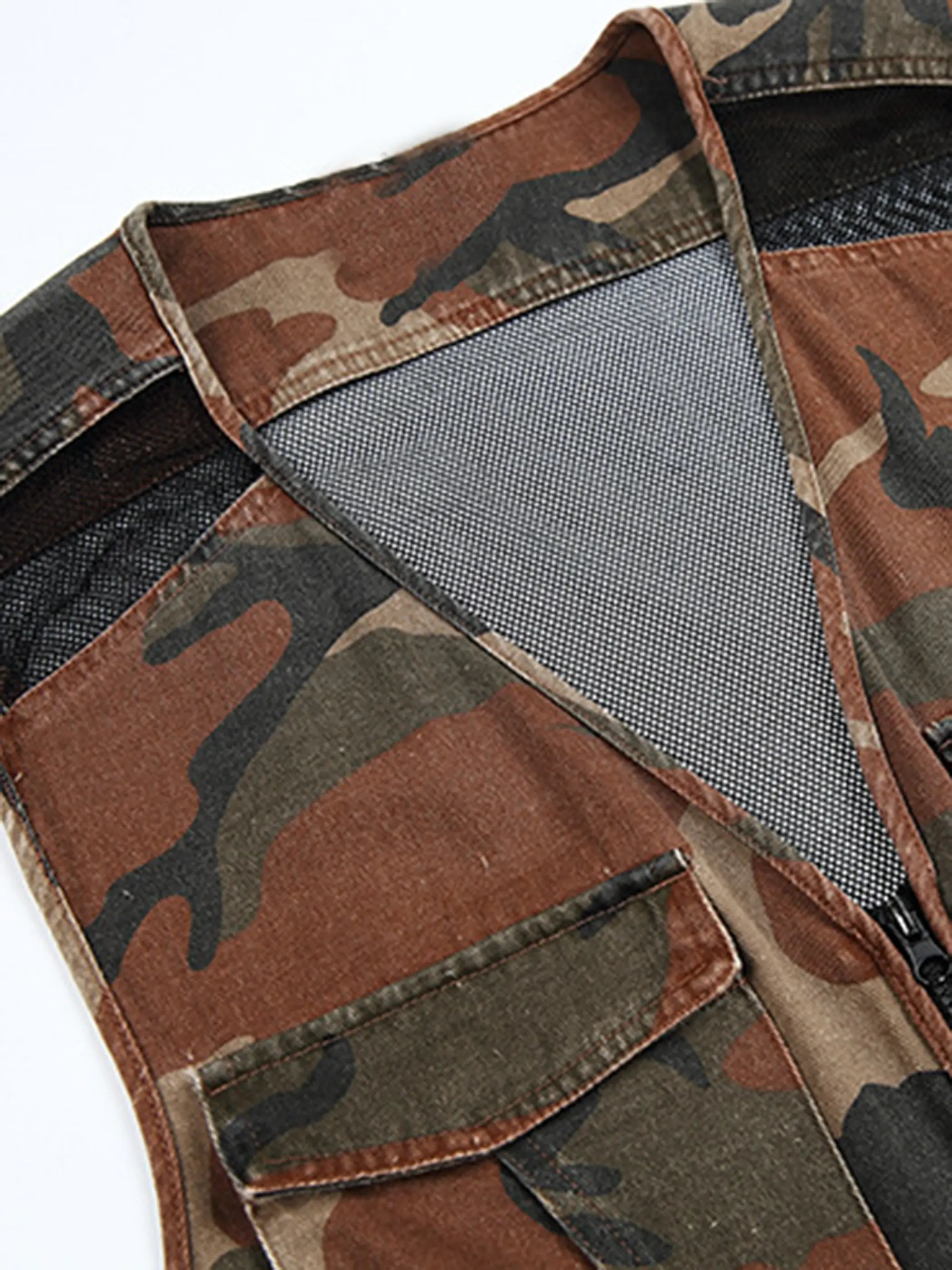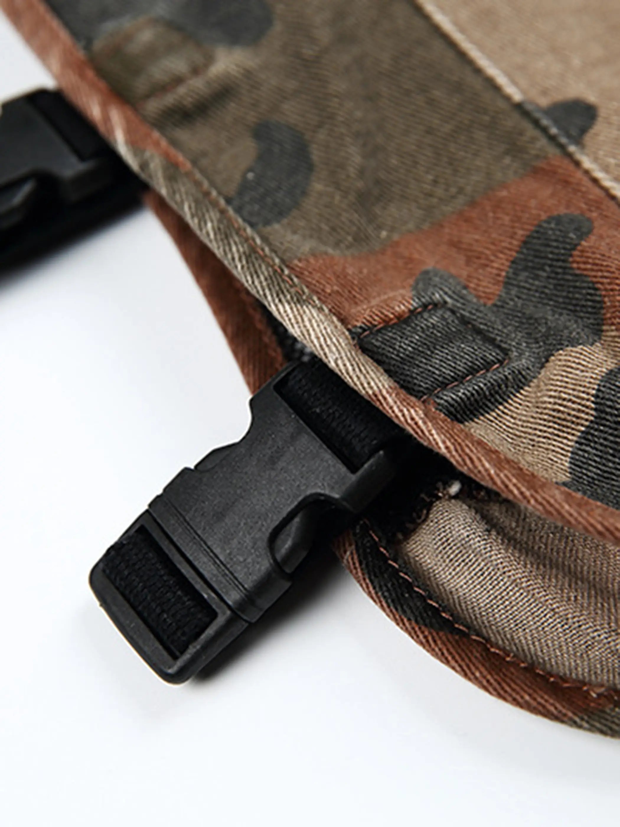 多様なポケット配置と調節ベルトを備えた、本格派ミリタリースタイルのコットンベスト。