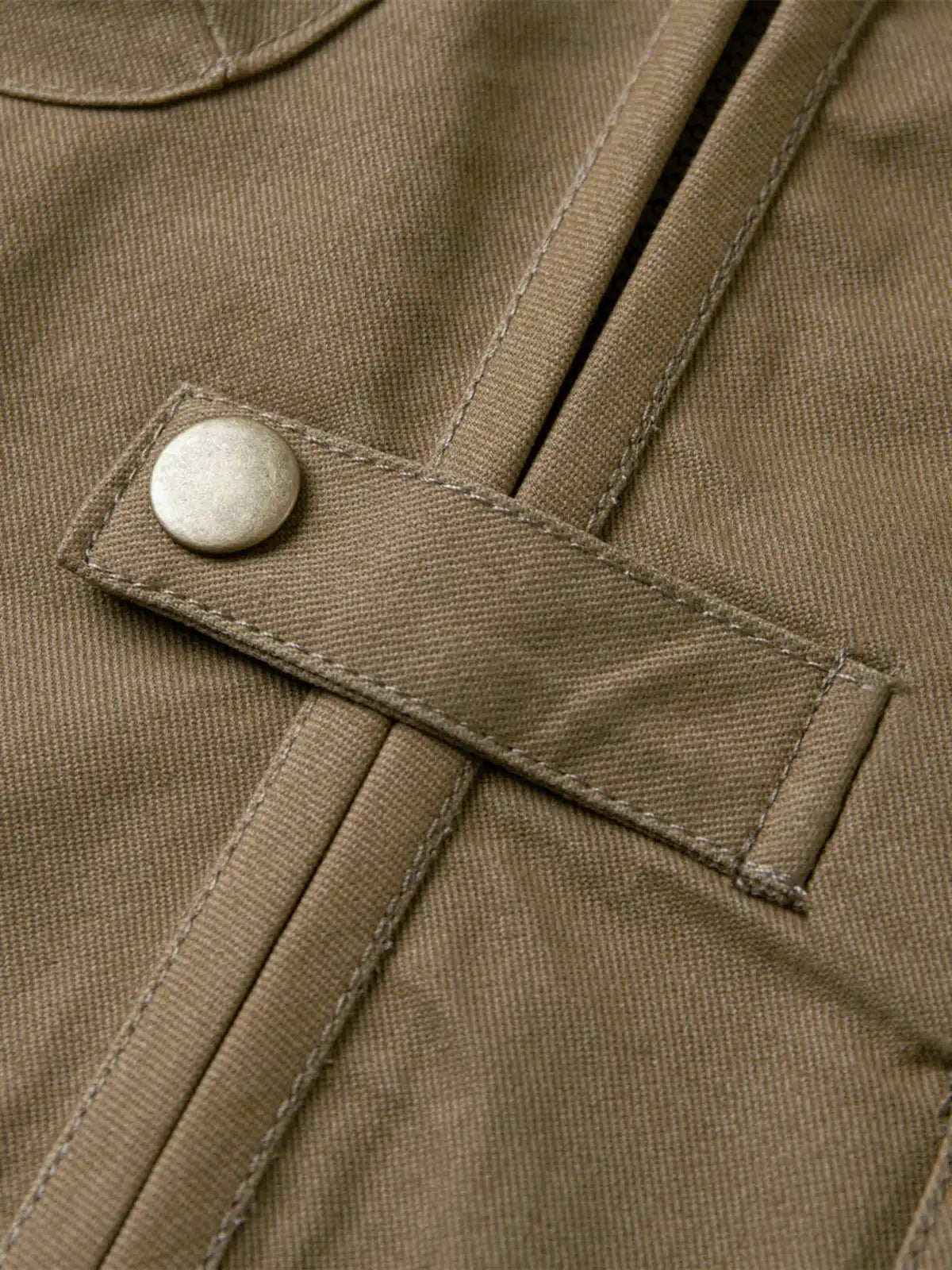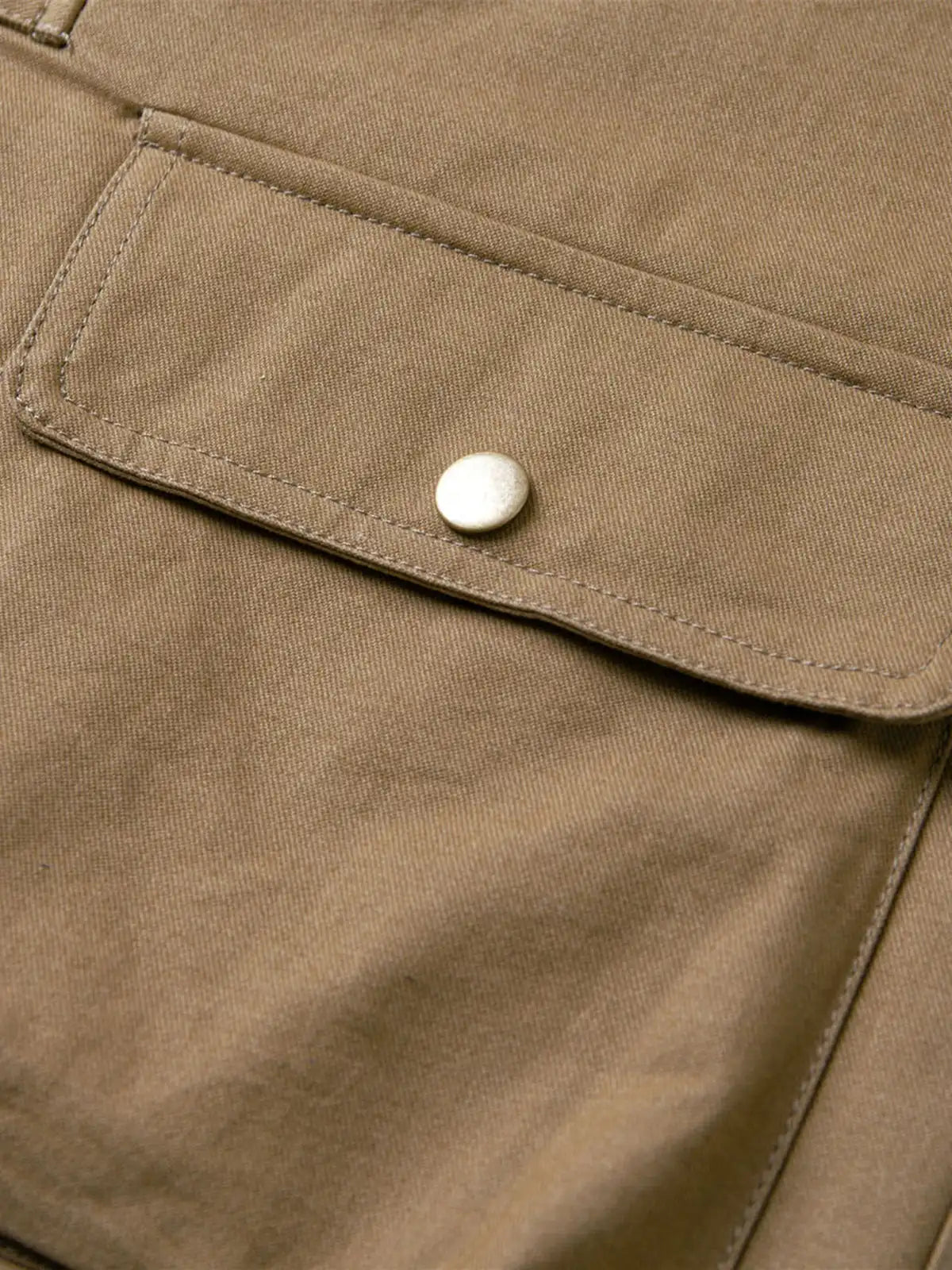 多彩な立体ポケットを備えた、100%コットン製のミリタリーテイスト工装ベスト。