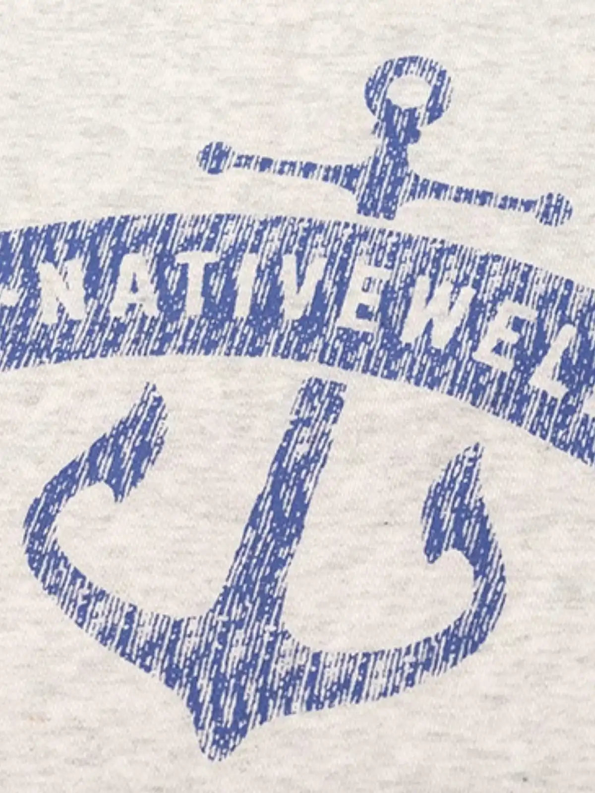 柔らかなフリース素材とネイビーマリンアンカーのプリントを組み合わせ、日常のコーディネートにレトロな情緒と快適な暖かさをプラス。