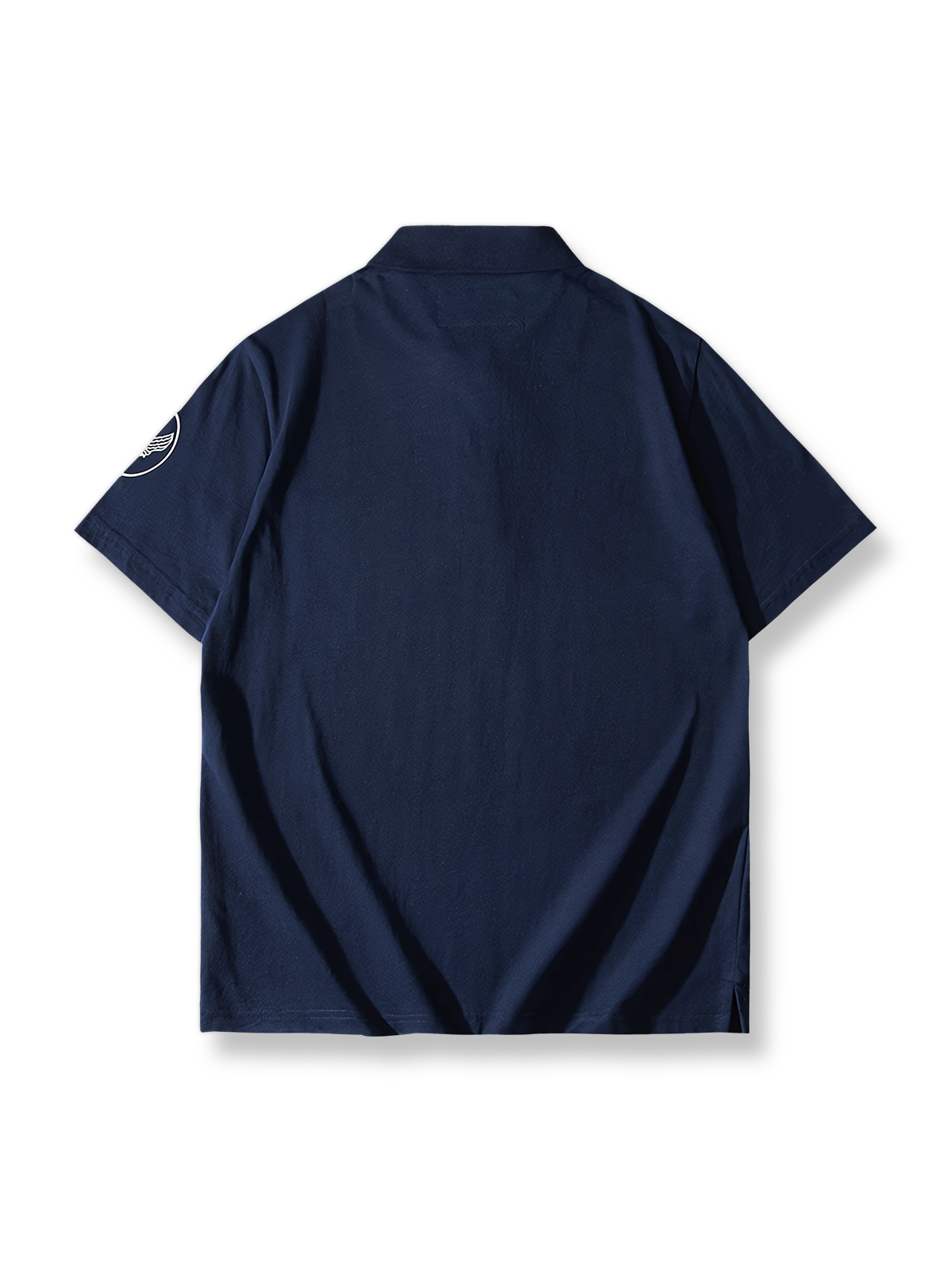 このポロシャツは、従来のピケコットン素材を排除し、200グラムの純コットン生地を使用しています。変形しにくく、快適性と耐久性を兼ね備えています。胸元の小さなポケットデザインは、実用性と個性を増し、袖にはアメリカンエアフォースのプリントが施され、全体にファッション性をプラスしています。裾のサイドスリットデザインは、伝統的なポロシャツのスタイルを踏襲しつつ、動きやすさも向上させます。デザインは全体的に調和しており、カジュアルにもフォーマルな場面にも適しています。