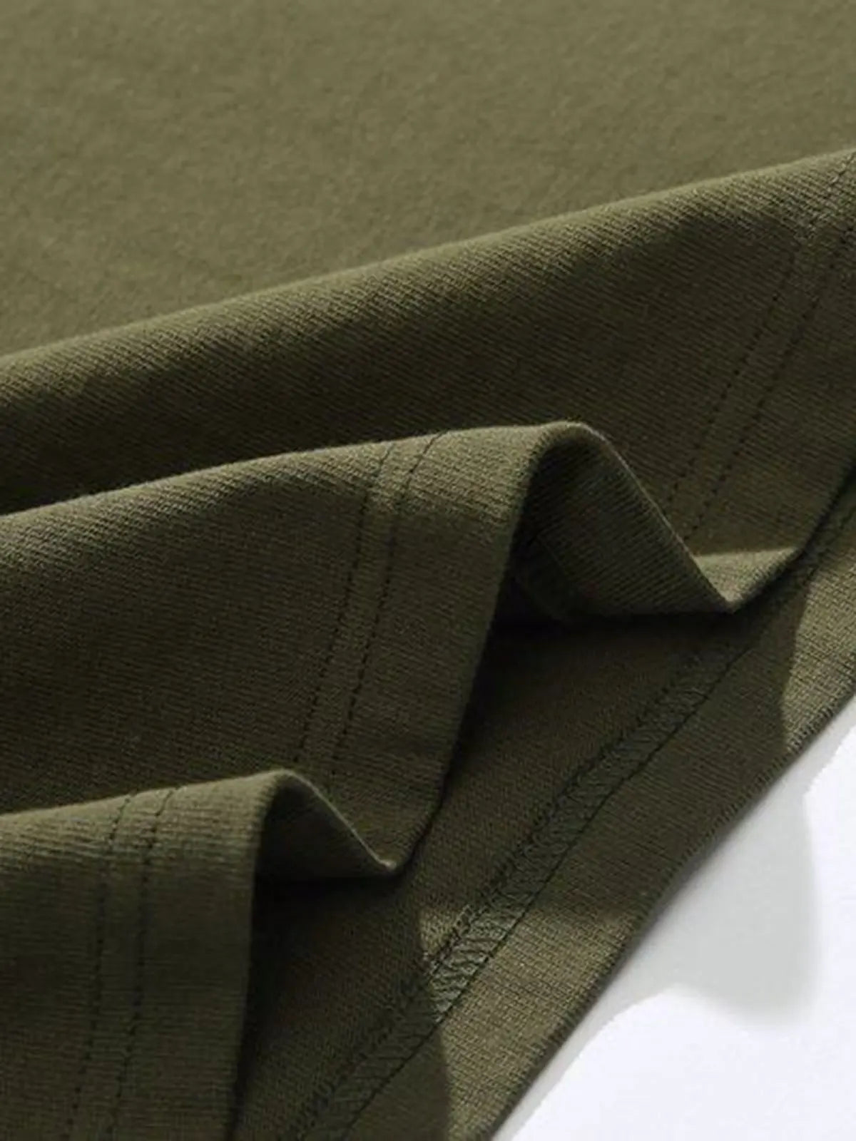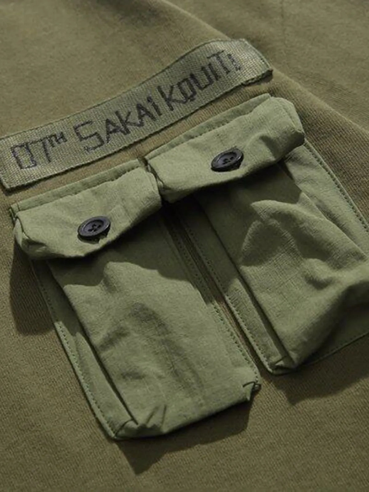 第二次大戦期のミリタリーアパレルに着想を得たデュアルチェストポケットは、弾薬ポーチのような実用性を備え、スマホや小物の収納に最適。100%コットンの生地は、着込むほどに風合いが増し、リラックス感のあるゆったりフィットが日常の動きを妨げません。無骨なディテールはカーゴパンツやデニムとの相性が良く、Tシャツ一枚でもストリートからアウトドアまで男らしい存在感を放ちます。