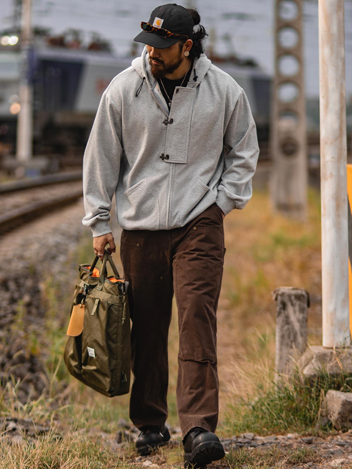 ミリタリーデザインとボクシングスタイルを融合し、デッキフックのディテールが際立つ、ヴィンテージ感あふれるフーディー。