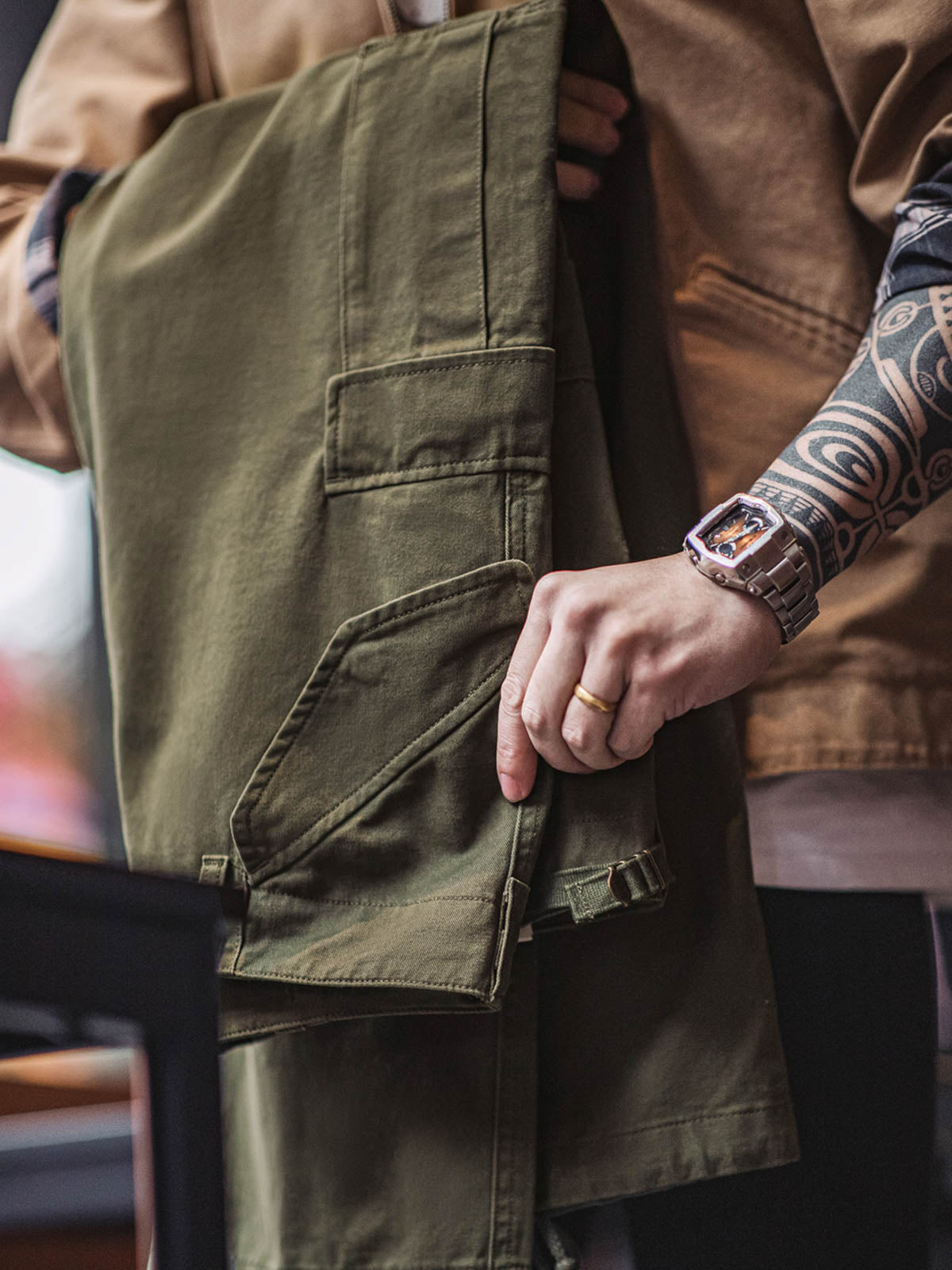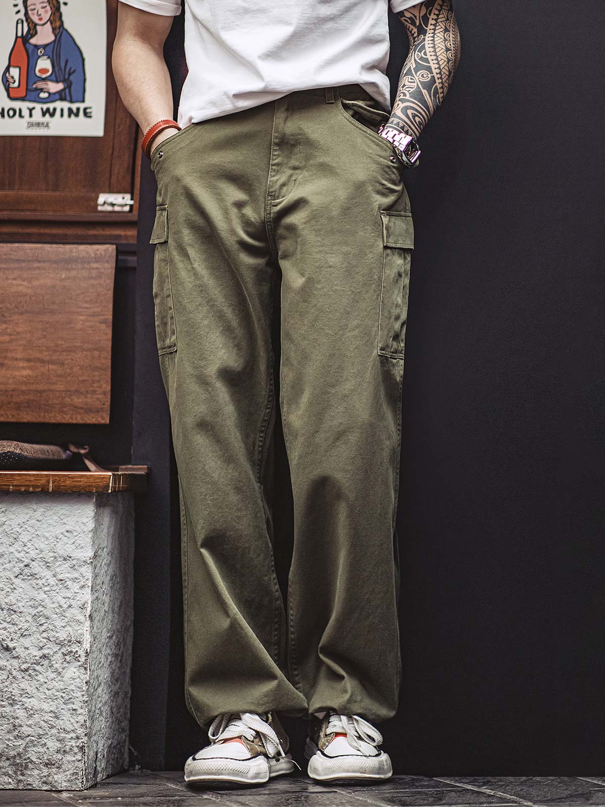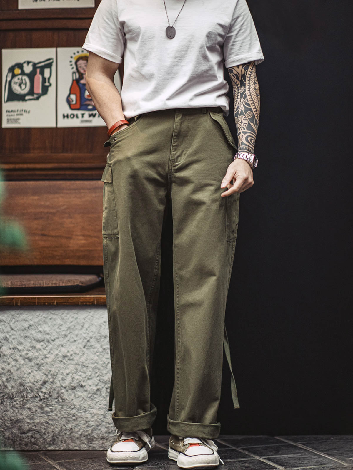 このM51カーゴパンツは、歴史的なミリタリーファッションを現代のスタイルに落とし込んだアイテムです。耐久性と機能性を保ちつつ、今日のファッショントレンドに合わせたアイテムとして、レトロながらも現代的な着こなしを提案します。