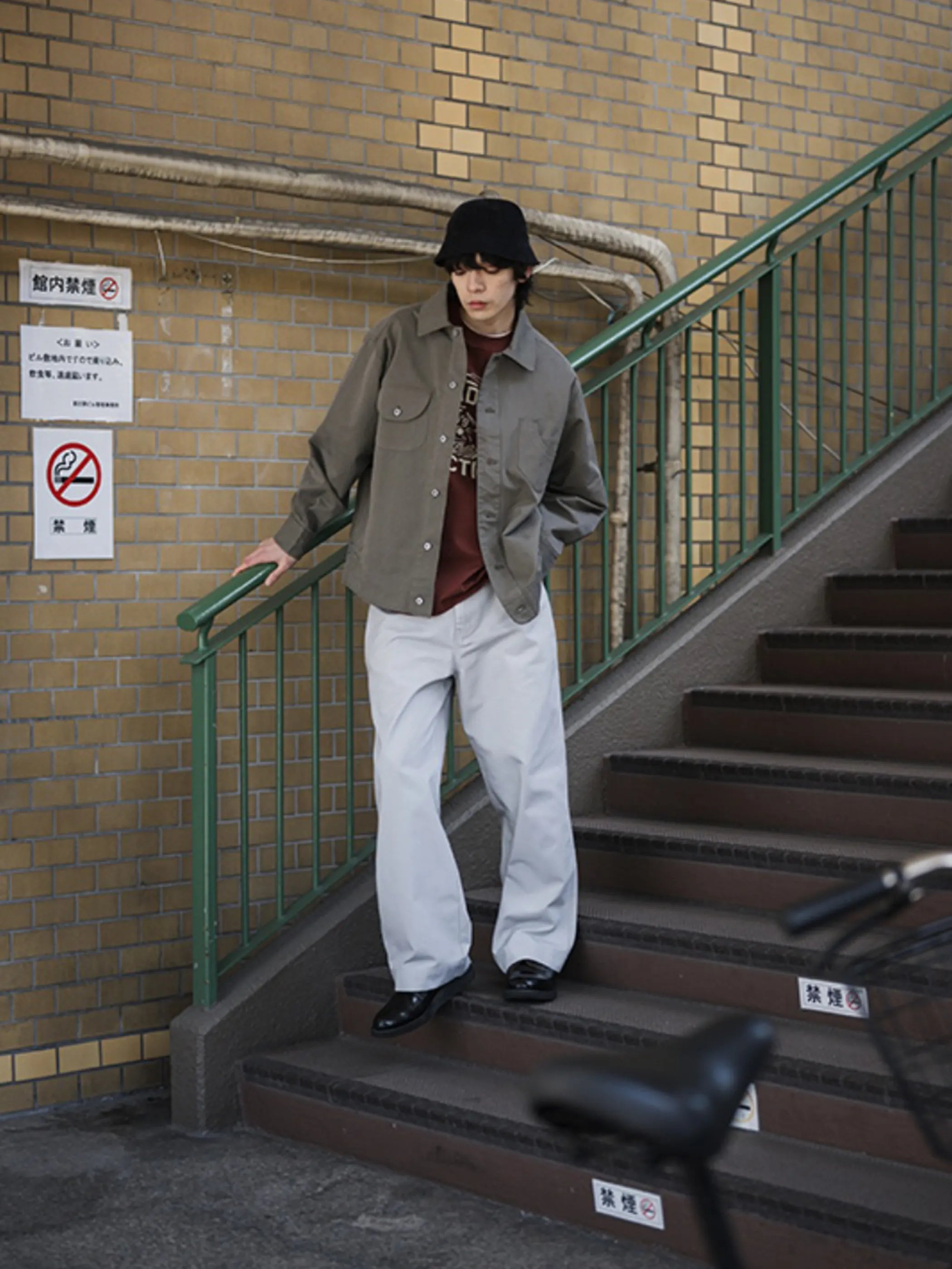 「Hunting Jacket」の機能美と実用性を受け継ぎつつ、短丈かつワイドなシルエットにアップデートした一着。右胸の丸みを帯びたポケットや、左胸の不規則ポケットなど、各所に施された個性的なポケット配置が特徴的です。下部の丸みを帯びたパッチポケットや袖口・裾の丸角ディテールで、クラシックなハンティングジャケットとはひと味違う独特の存在感を演出。YKK製のドーナツボタンがレトロな雰囲気を添えつつ、使いやすさも兼備。270gのコットン/ナイロン混紡素材を洗い加工し、ヴィンテージ感としなやかさを両立させています。ワイドパンツやミリタリーパンツと合わせて、無骨ながらも洗練された着こなしが可能です。