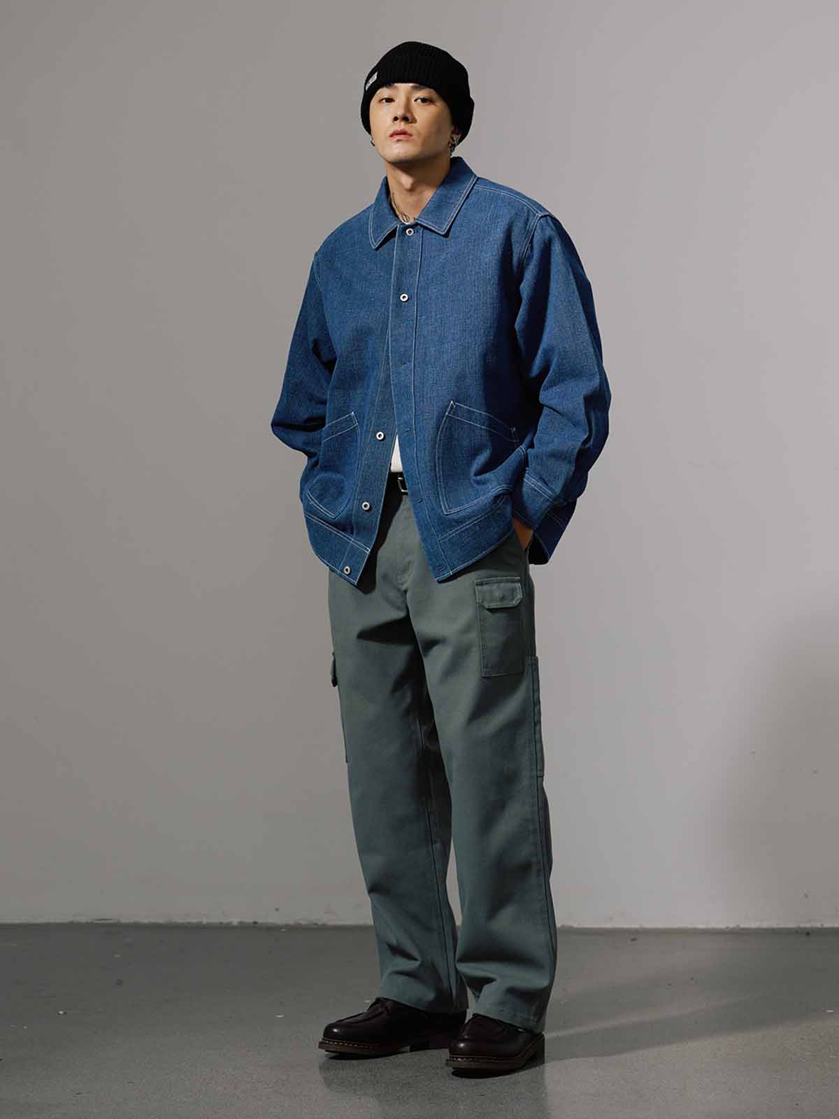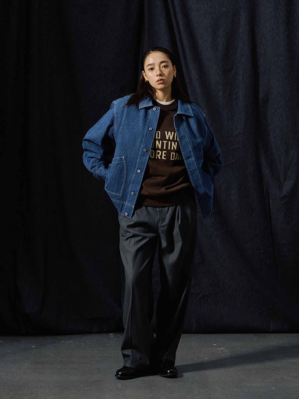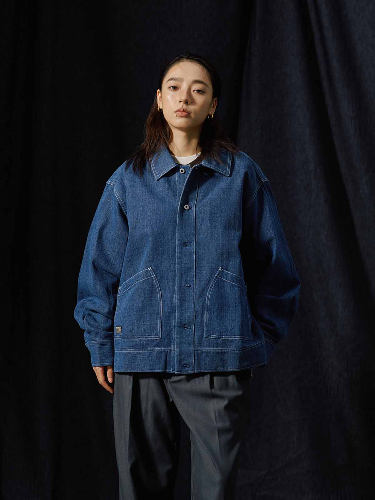 1920年代のSwitch Board Chore Jacketをモデルに、12oz竹節模様デニム生地とダブルウォッシュ加工でヴィンテージ感を際立たせた、ショートワイドカットのデニムシャツジャケットです。