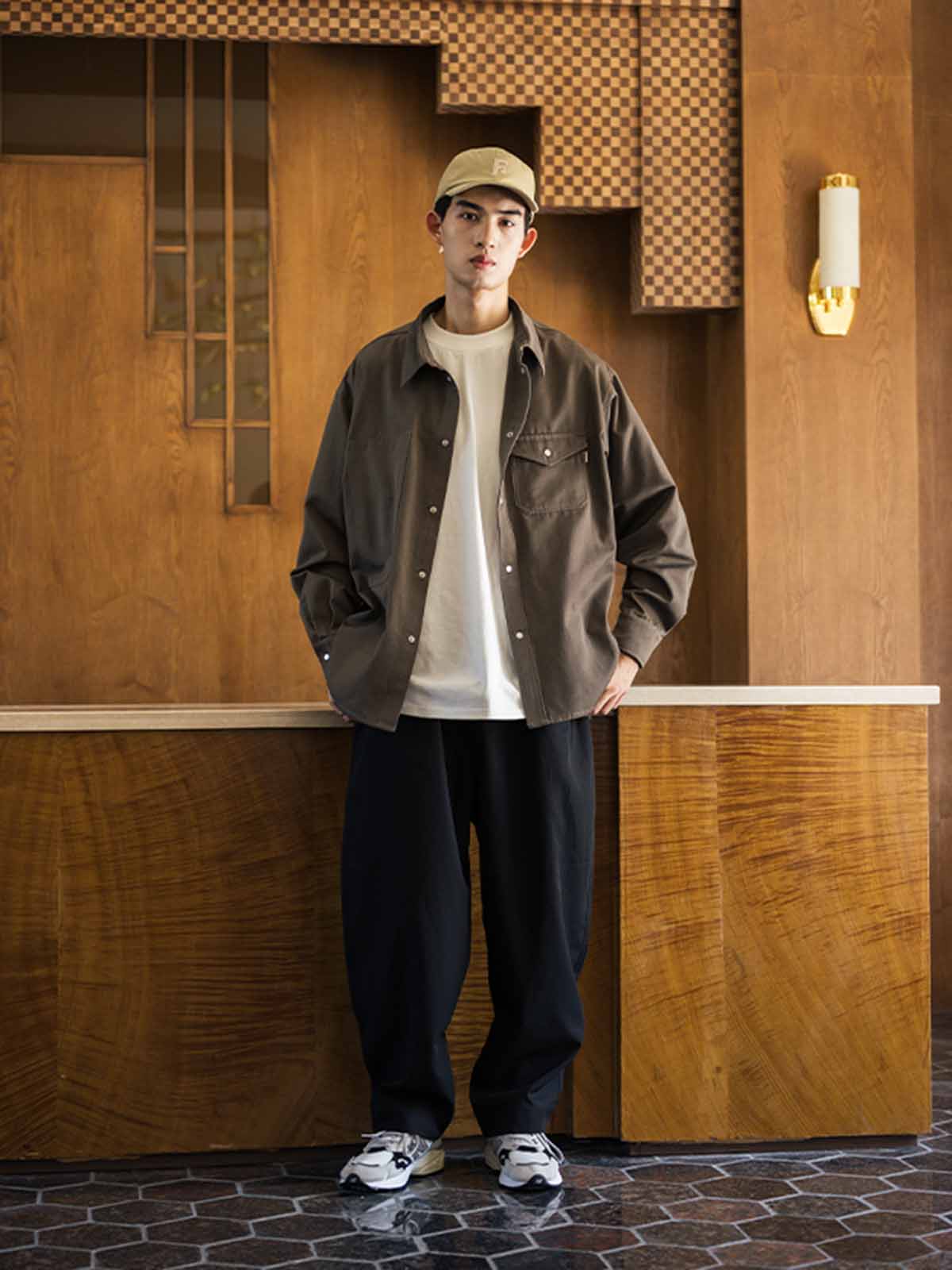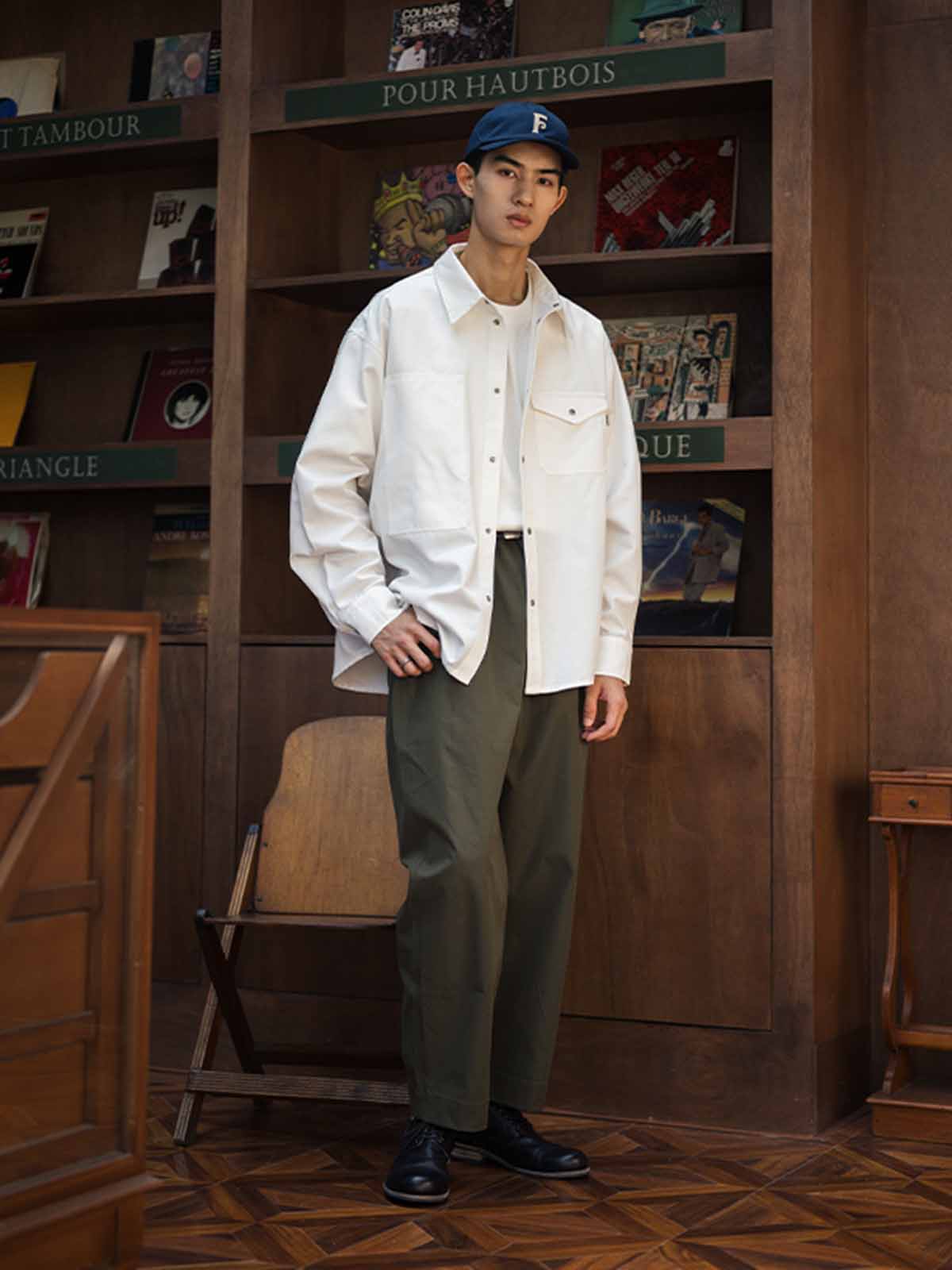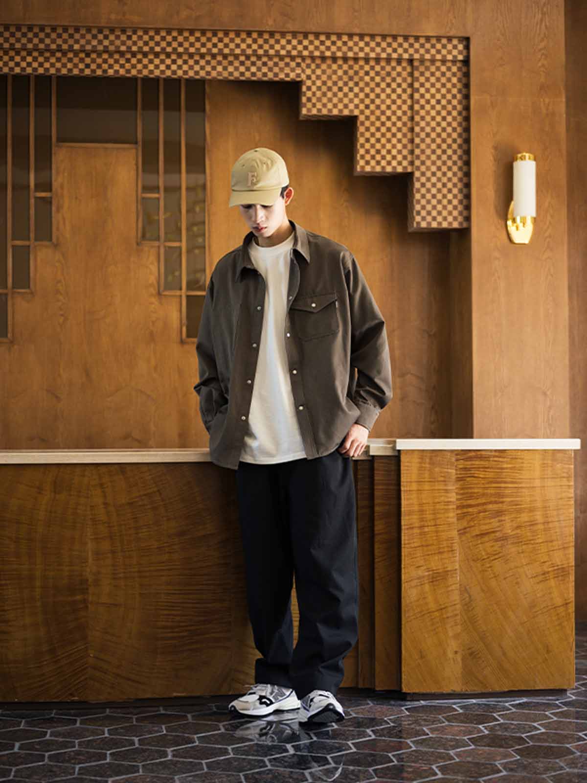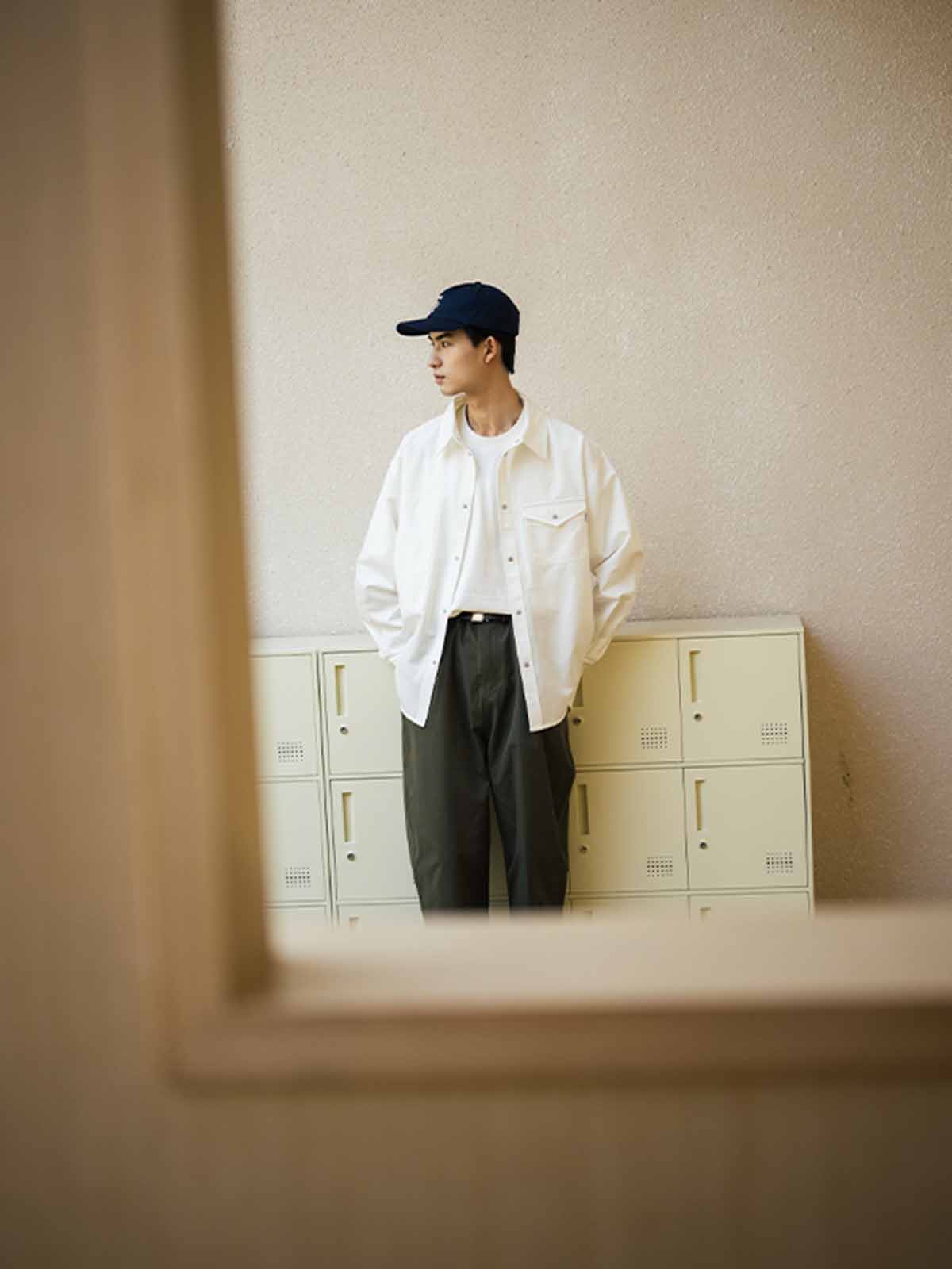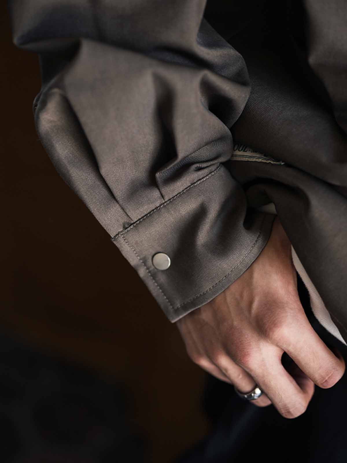 1930年代米軍作業シャツの原型に忠実に、側面開口ポケットなどクラシックなデザインを維持。240gの30/60混紡生地は、綿の快適性とポリエステルの耐久性・抗シワ性を融合し、洗い加工で自然な色落ちと骨格が浮かび上がる。Boxingカットの短く幅広いシルエットと落肩、丸みを帯びた下裾が、動きやすさと硬派な印象を演出。古銀色の日産YKK五爪扣と加硬裏地が全体の輪郭をキープし、長時間着用してもシワになりにくい仕様。