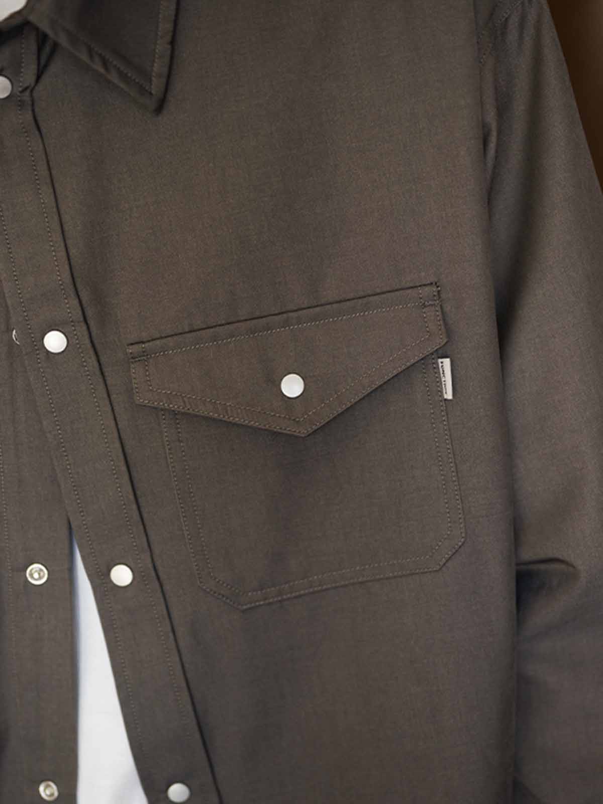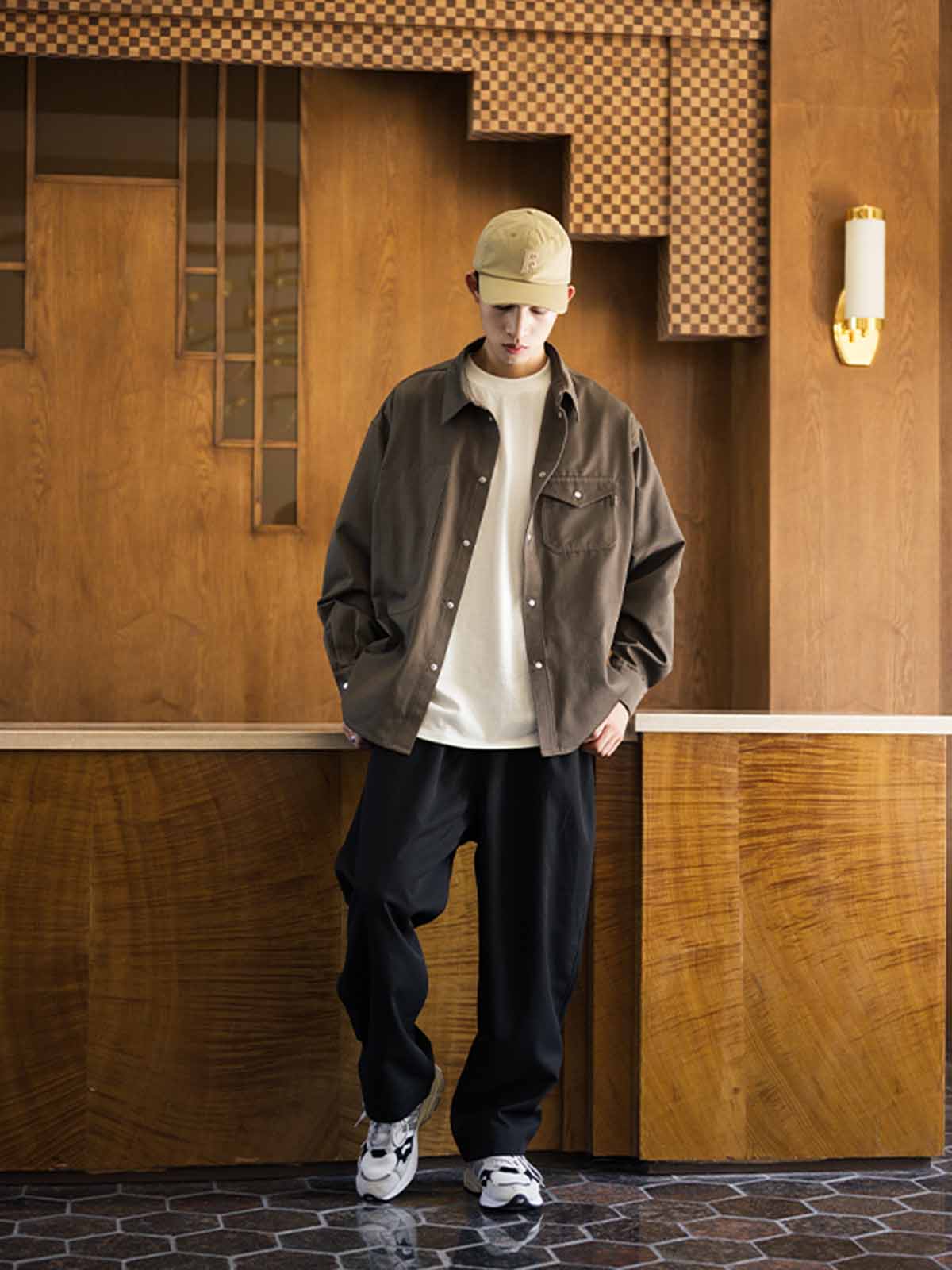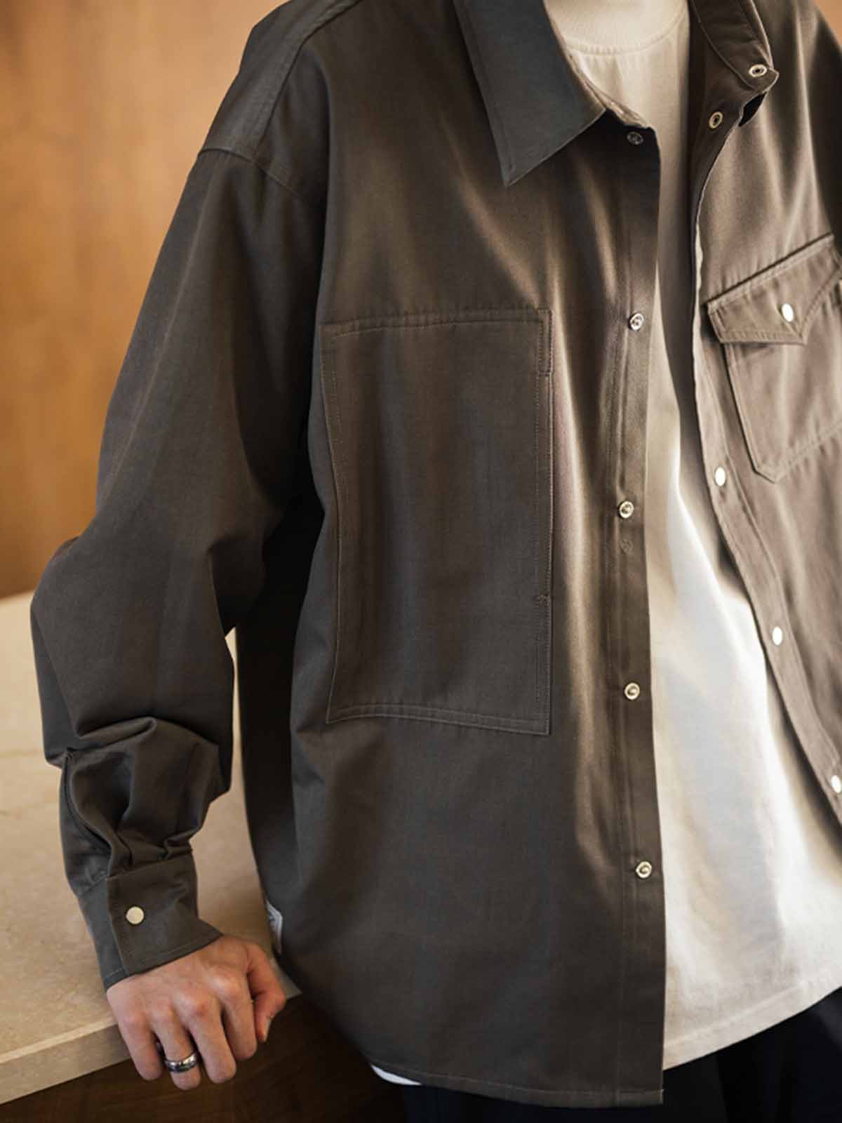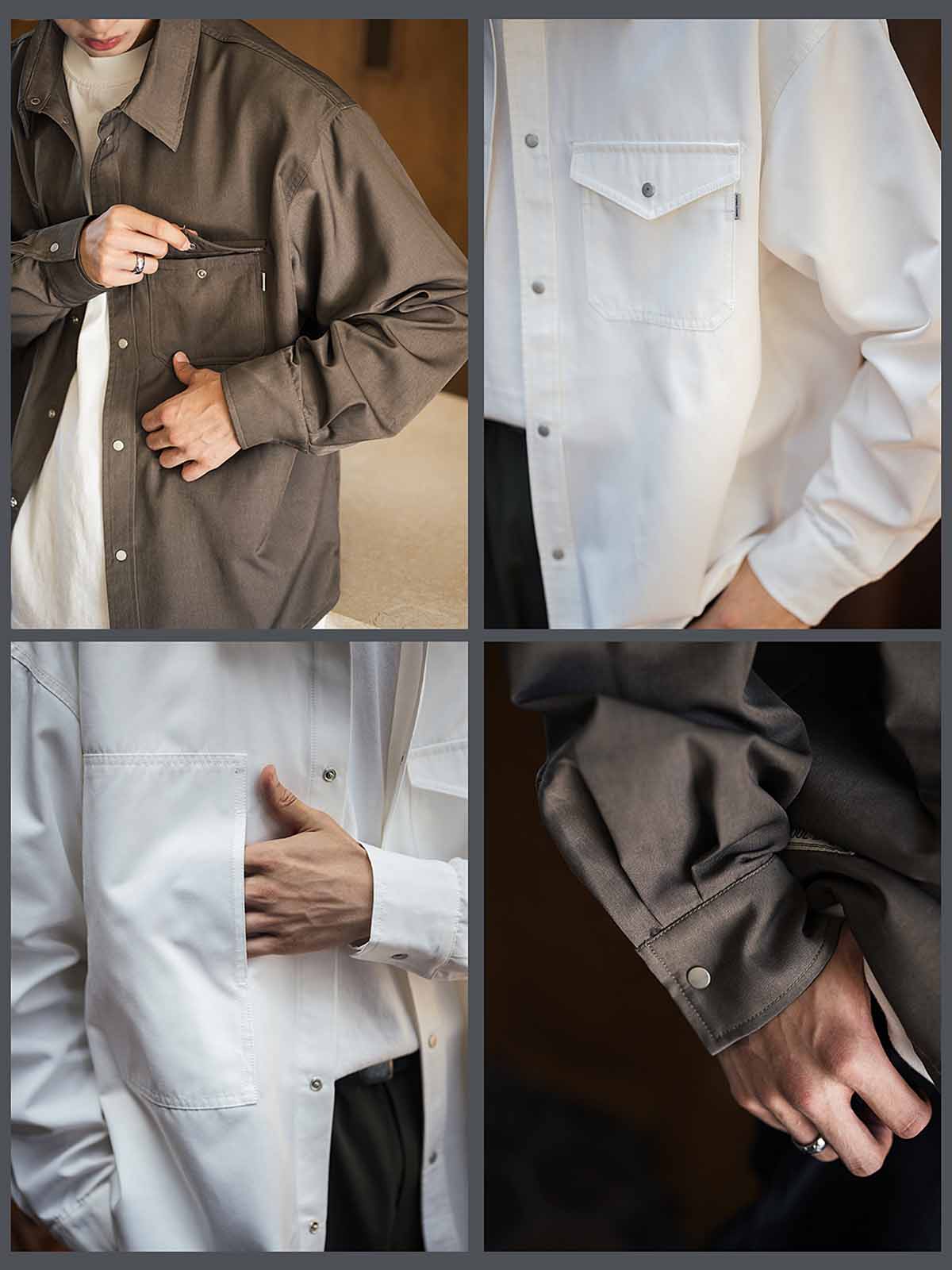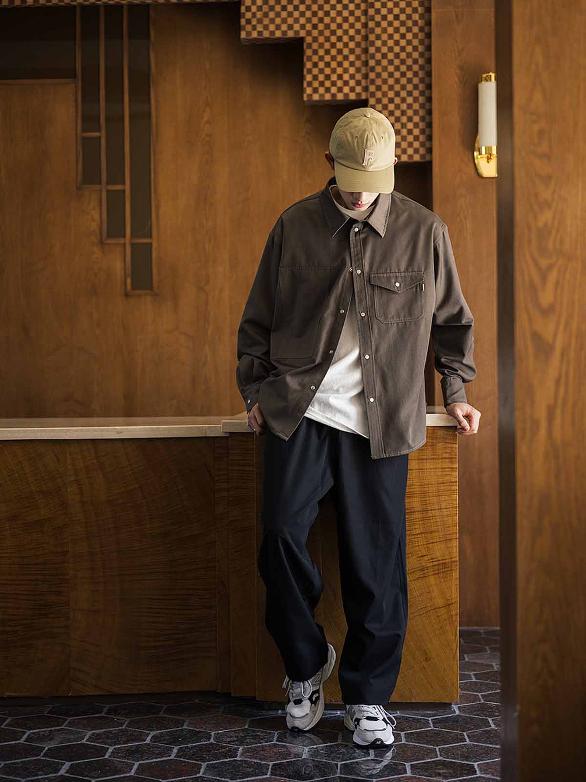 1930年代米軍作業シャツの原型に忠実に、側面開口ポケットなどクラシックなデザインを維持。240gの30/60混紡生地は、綿の快適性とポリエステルの耐久性・抗シワ性を融合し、洗い加工で自然な色落ちと骨格が浮かび上がる。Boxingカットの短く幅広いシルエットと落肩、丸みを帯びた下裾が、動きやすさと硬派な印象を演出。古銀色の日産YKK五爪扣と加硬裏地が全体の輪郭をキープし、長時間着用してもシワになりにくい仕様。