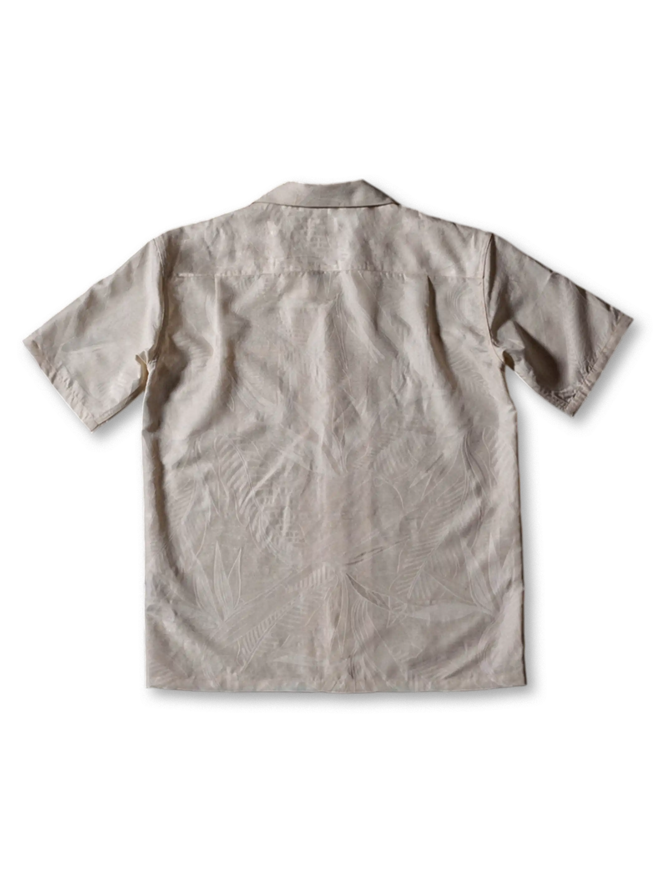 熱帯植物をモチーフにしたジャカード生地と上質な光沢感が魅力のヴィンテージ風アロハシャツ。