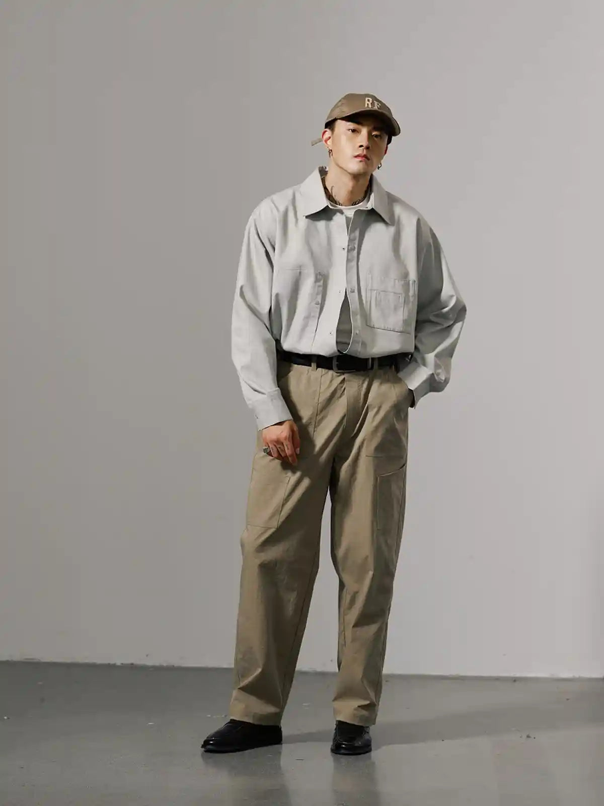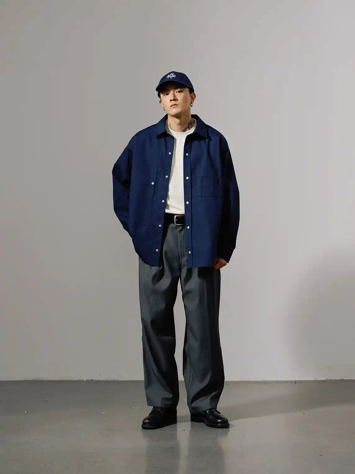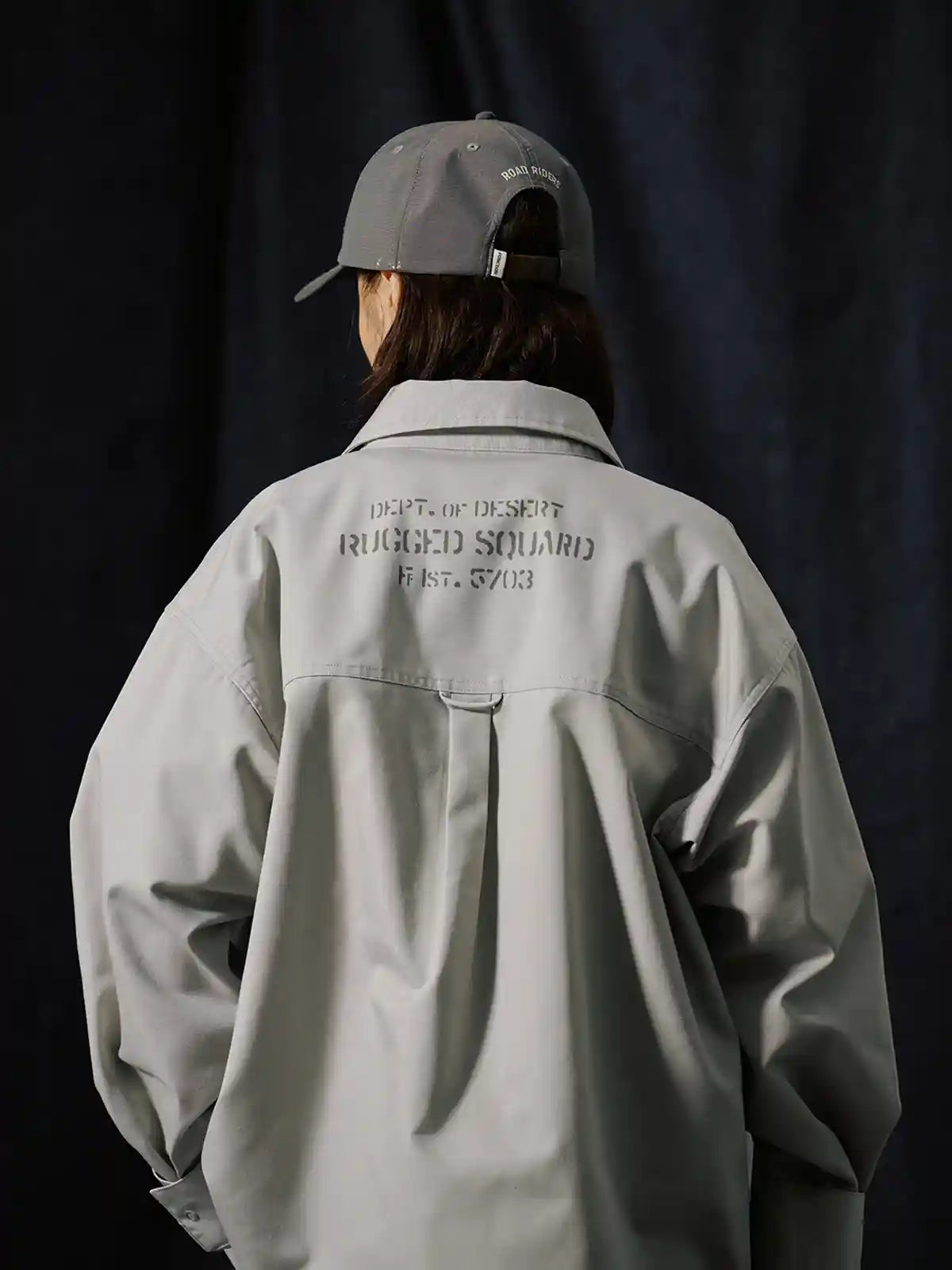 このシャツは、1940年代のハンティングシャツの伝統を継承しつつ、左胸に古典的なハンティングポケット、右胸に不規則な大型ポケットを採用。255gのT/C混紡珠帆布を使用し、ウォッシュ&磨毛加工により自然なシワと色落ちが表現され、レトロな魅力を醸し出す。標準的な袖丈と着丈で、日常の通勤からアウトドアまで幅広く対応。