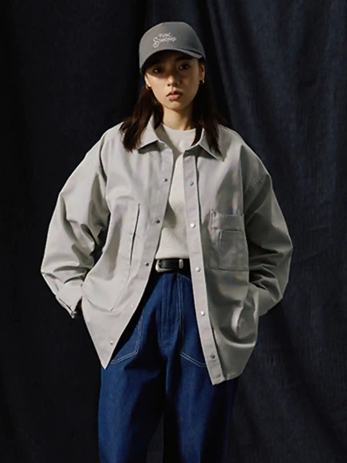1940年代のハンティングシャツを原型に、クラシックな多ポケットデザインとウォッシュ加工によるヴィンテージ感を併せ持つルーズフィットシャツ。
