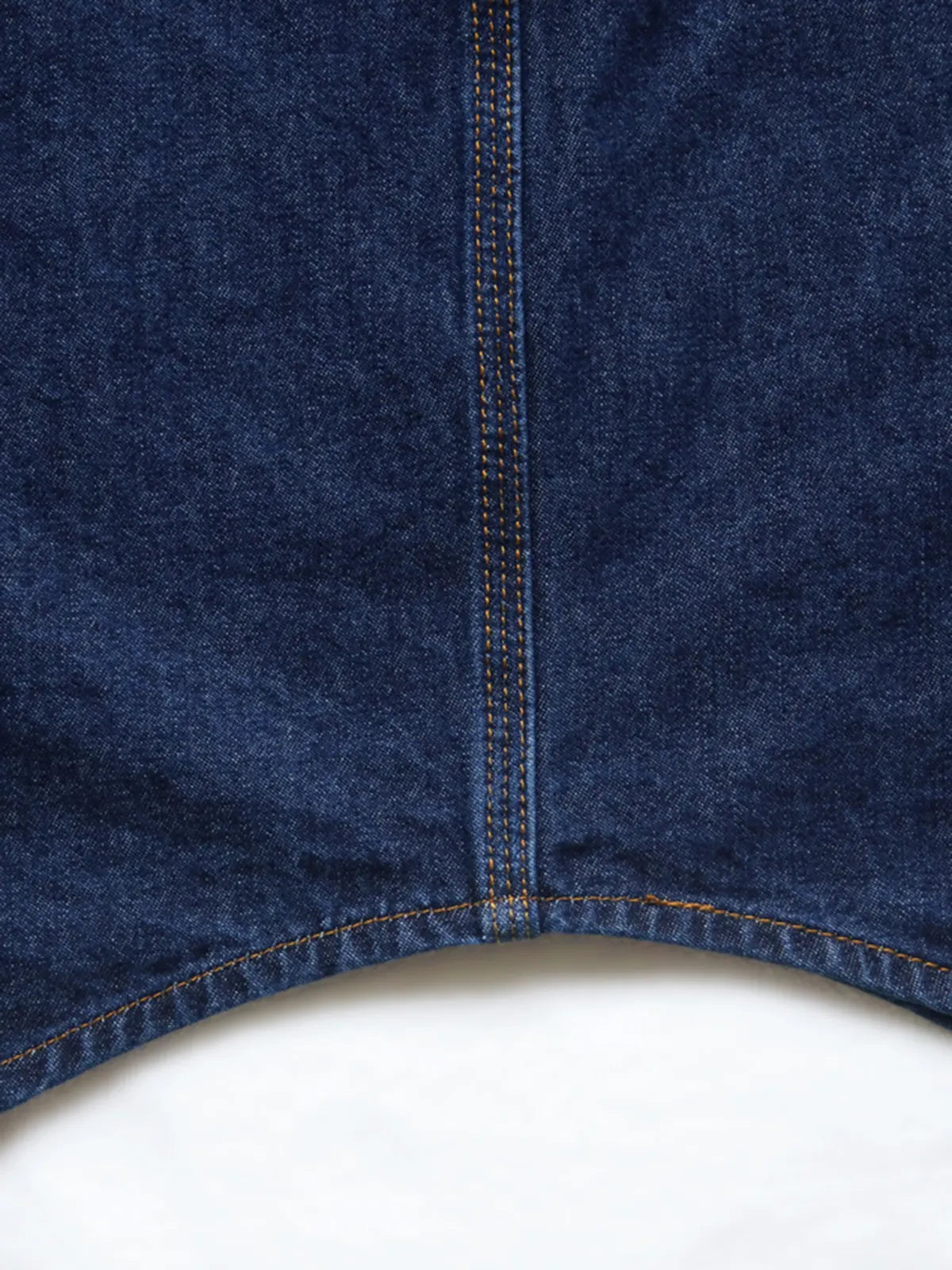 アメカジテイストを象徴するデニム素材を使用したシャツ。スクエアカラーによってクラシックな雰囲気を演出し、胸元の立体ポケットと隠しポケットが実用性とデザイン性を両立。シンプルながらもリベットのディテールがワークテイストを強調し、ヴィンテージ感を際立たせます。デニムパンツやチノパンとの相性が良く、カジュアルからミリタリーミックスまで幅広いコーディネートを楽しめる一枚です。