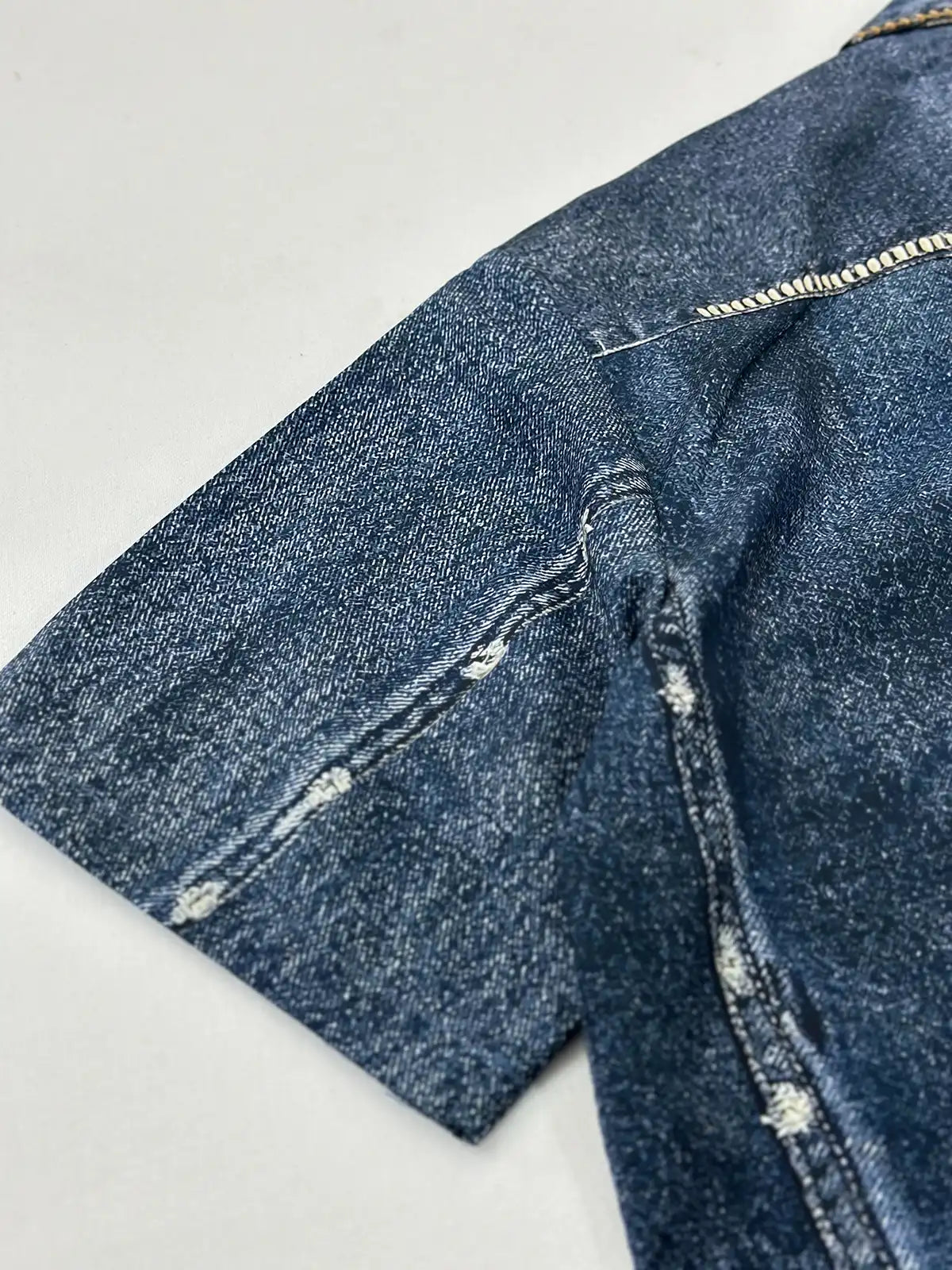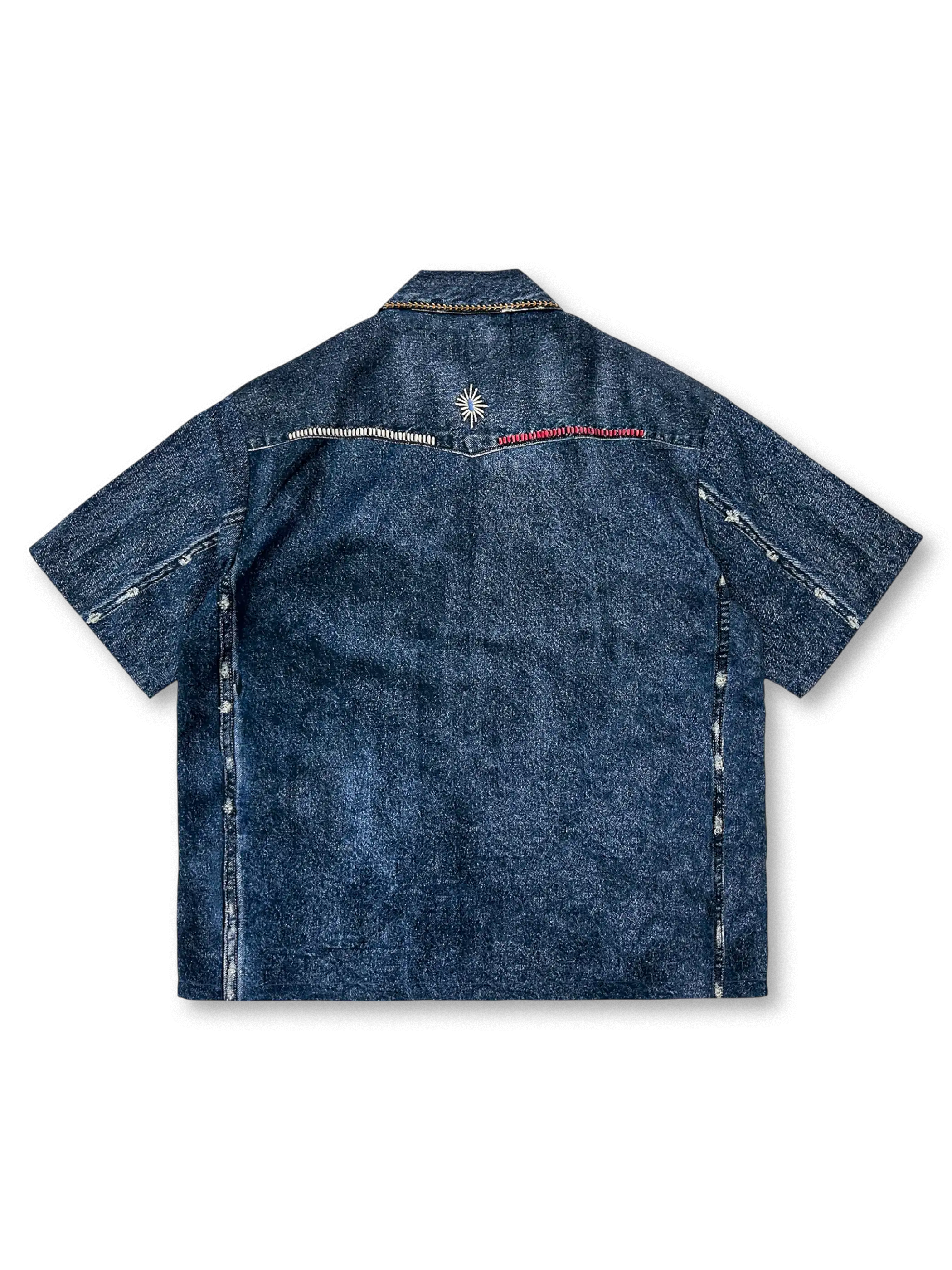 20世紀中期アメリカ西部開拓時代のワークウェアを踏襲し、レイヤーを重ねたような色ムラ加工を施した6.5オンスデニム生地に、インディアン文化の守護神に相当する雷鳥(サンダーバード)モチーフを両肩にプリント。天然素材の風合いを残しながらも耐久性に優れた6.5オンスデニムは、着込むほどにヴィンテージライクな色落ち感が深まり、本物の経年変化を楽しめる。左右の胸ポケット、スナップボタン仕様、本格的なヨーク切り替えなどディテールも忠実に再現。ショーツやブーツと合わせるだけで、ストリートとワークが融合したダイナミックなスタイルが完成する一着。