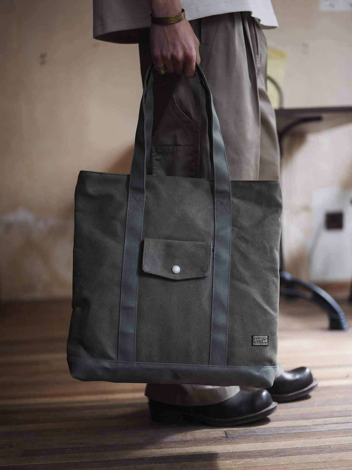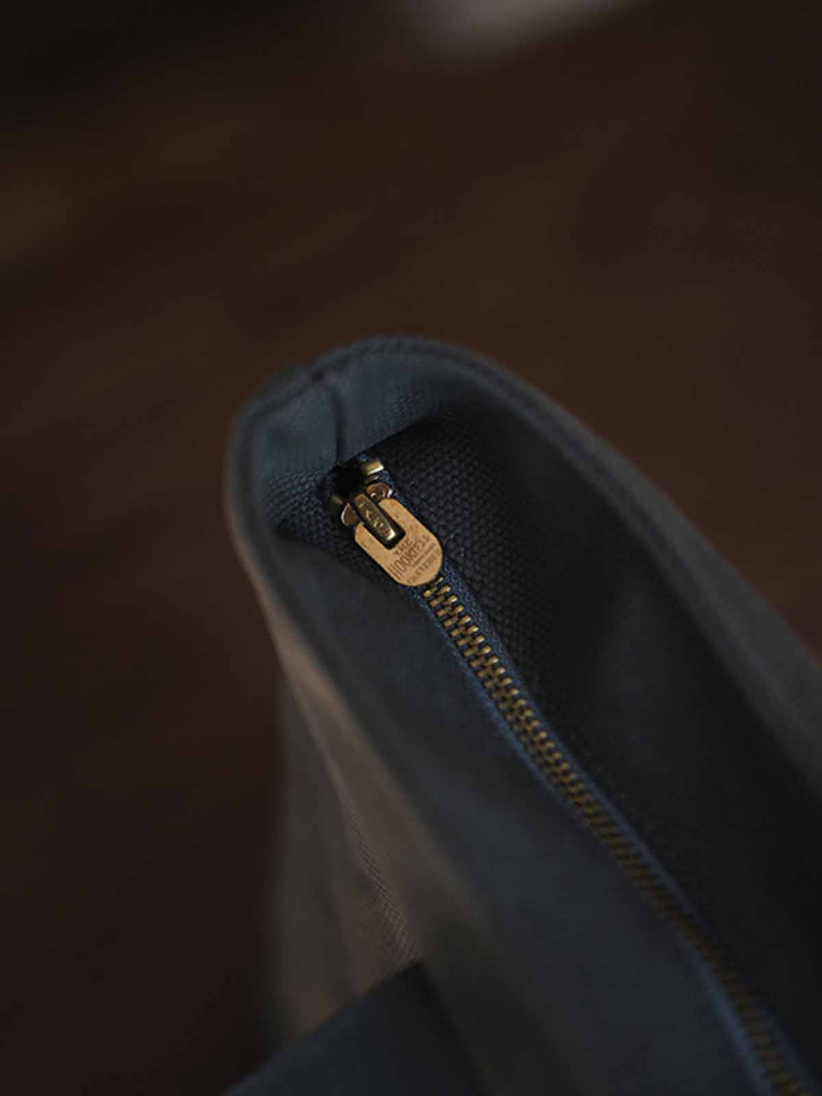 24オンスのデッドストックヴィンテージキャンバスとTalon製ヴィンテージジップを採用したミディアムサイズのトートバッグ。