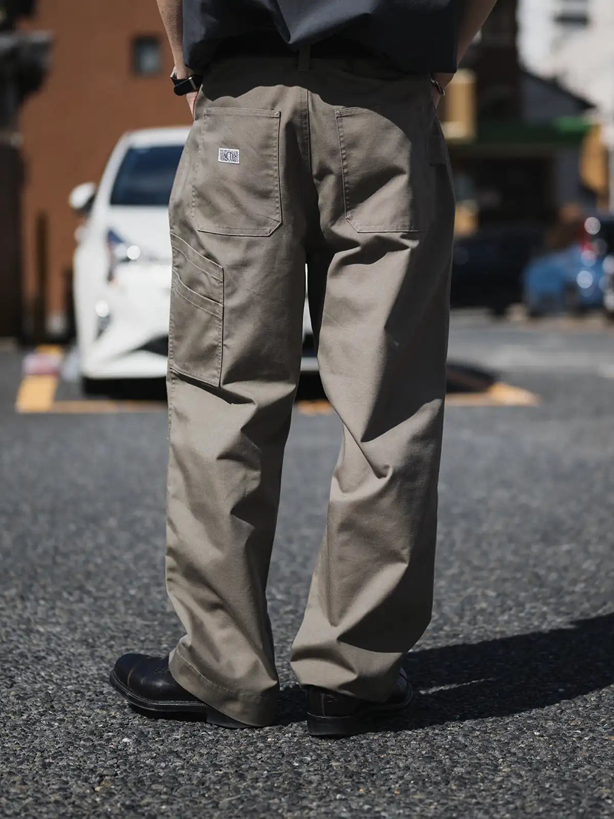 19世紀のデンマークHBTワークパンツをベースに、8つのポケットや工具用ループなどのディテールを追加し、洗い加工でヴィンテージ感を高めたワイドシルエットのワークパンツ。