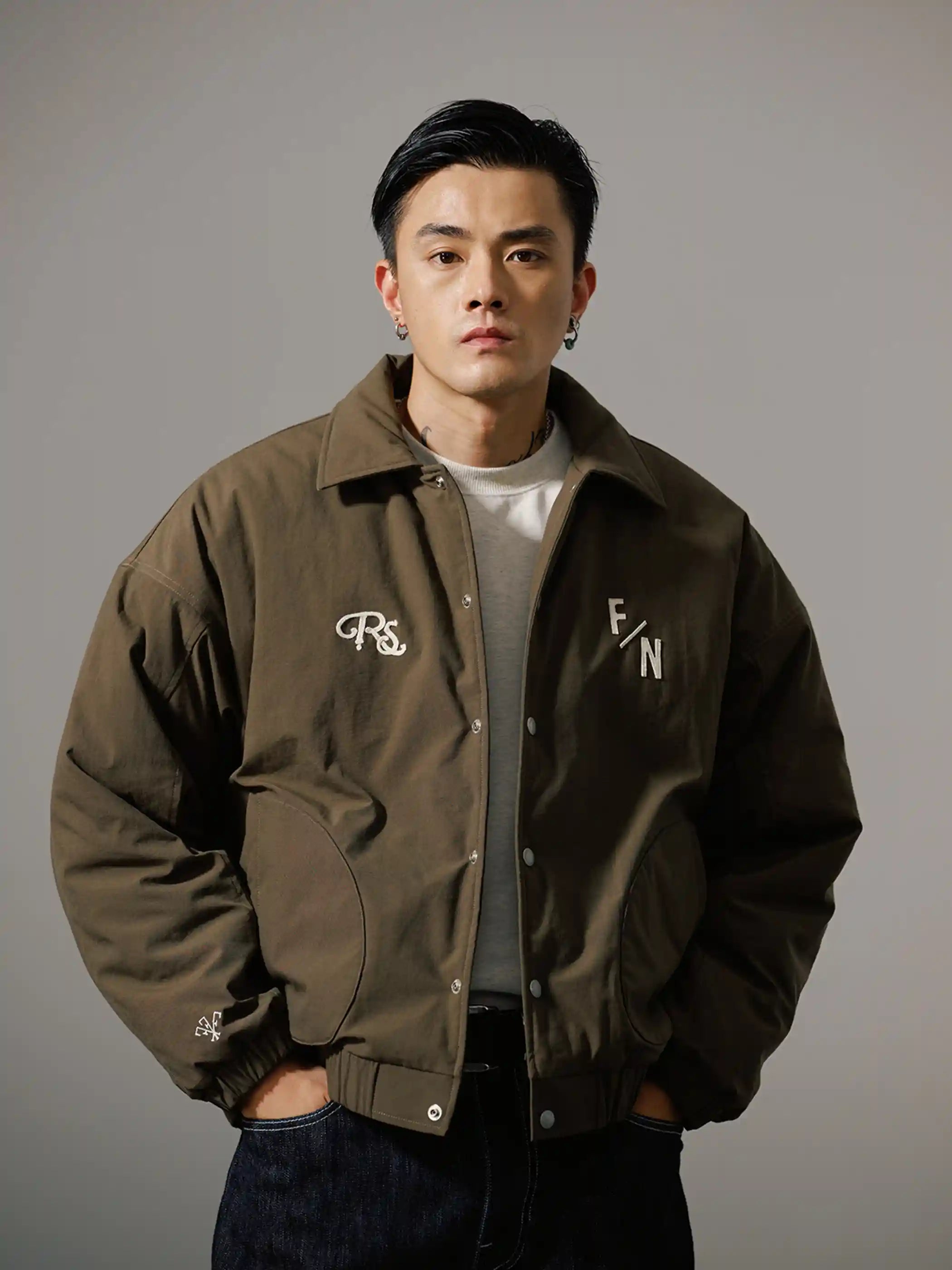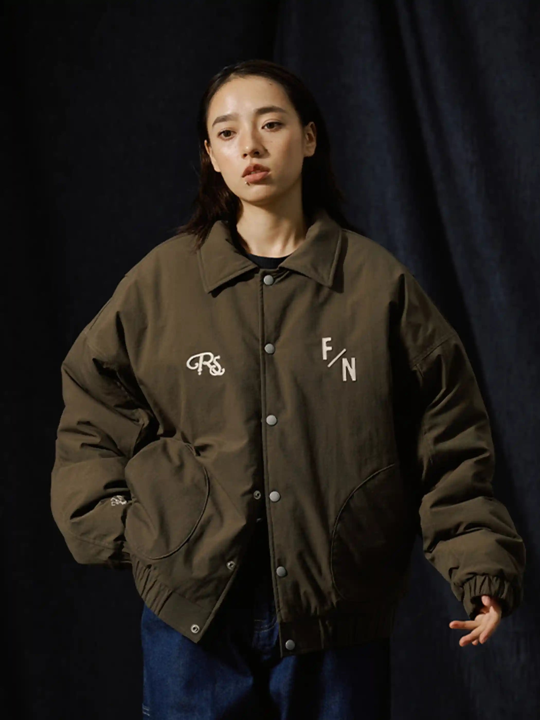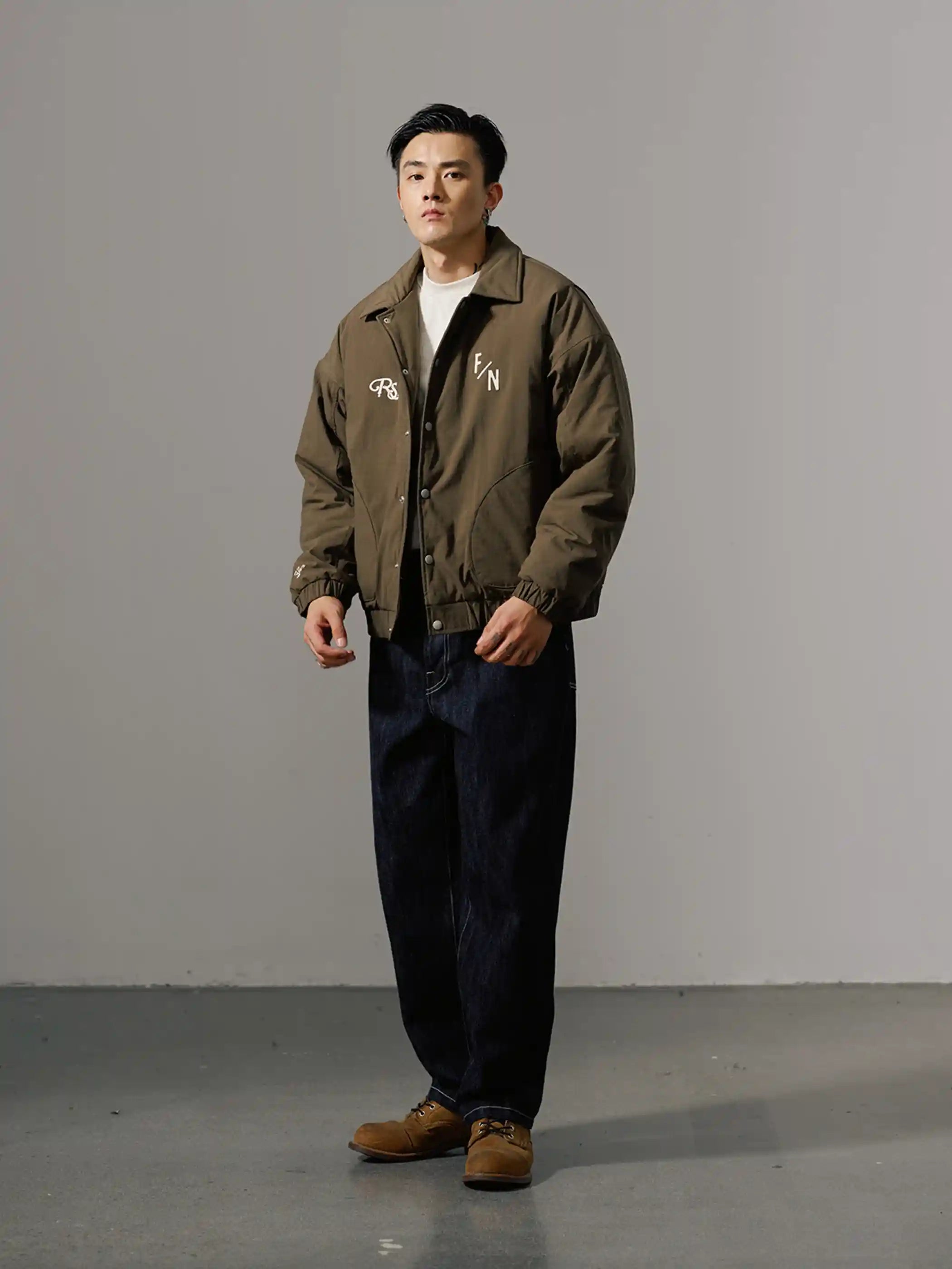 背面のブラックパンサーをはじめとする複数の刺繍ディテールが目を引く一着。表地は230gの皺感あるポリエステル生地を使用し、マットな光沢と独特のテクスチャーを演出。裏地には600gのツイル状フリース(ポリエステル)と200gの新雪丽Thinsulate™中綿を採用し、軽さと高い保温性を両立。短丈でゆったりとしたルーズフィットが特徴で、ヴィンテージ感漂う硬派な雰囲気と現代的なストリートスタイルを融合させたアイテム。秋冬シーズンのカジュアルからデイリーユースまで幅広く活躍。