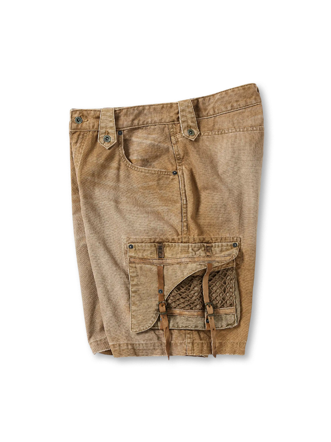 280gキャンバスとタンレザーが生む無骨さとヴィンテージウォッシュの味わいを併せ持つ、夏のミリタリーショーツ。