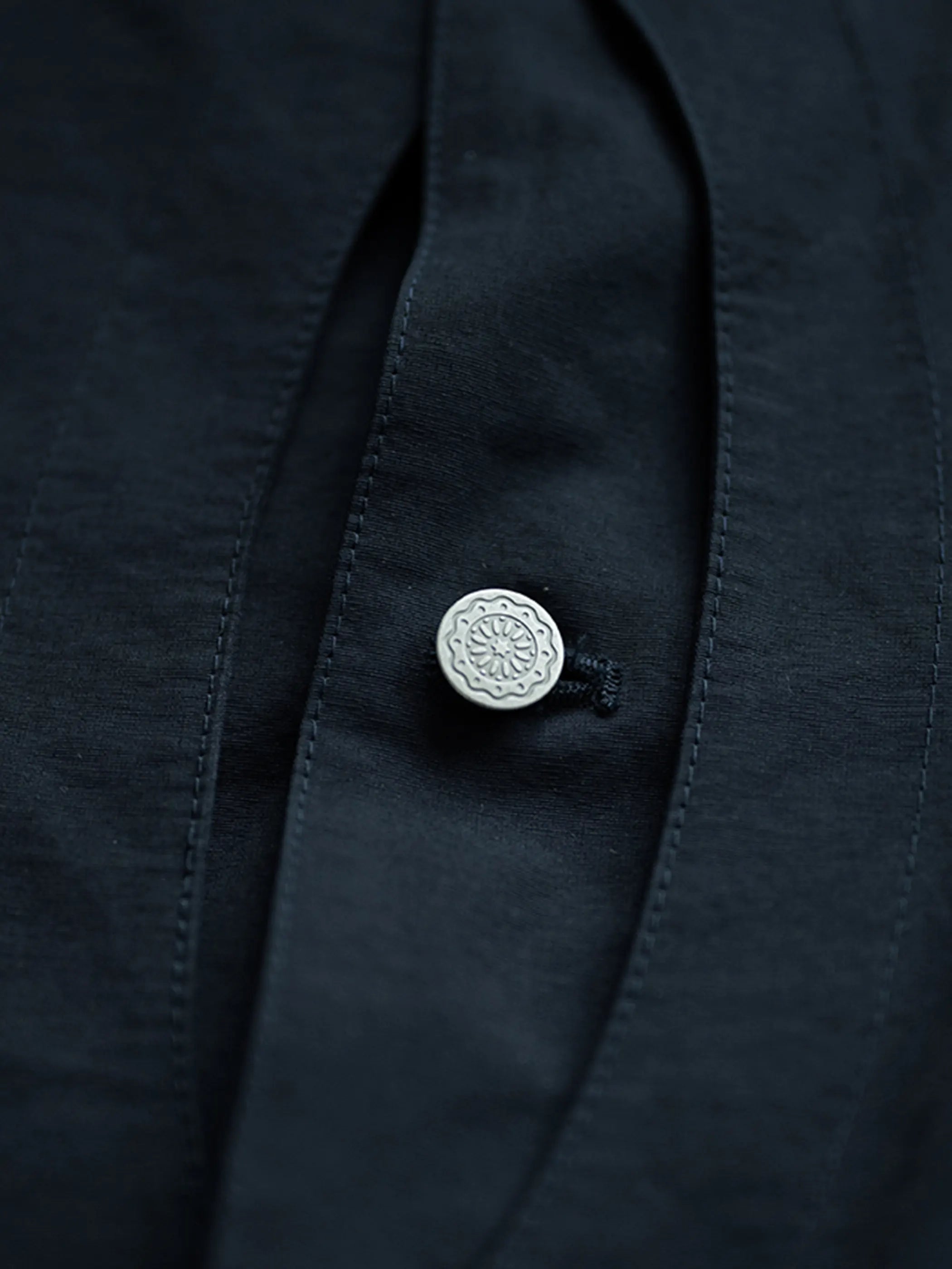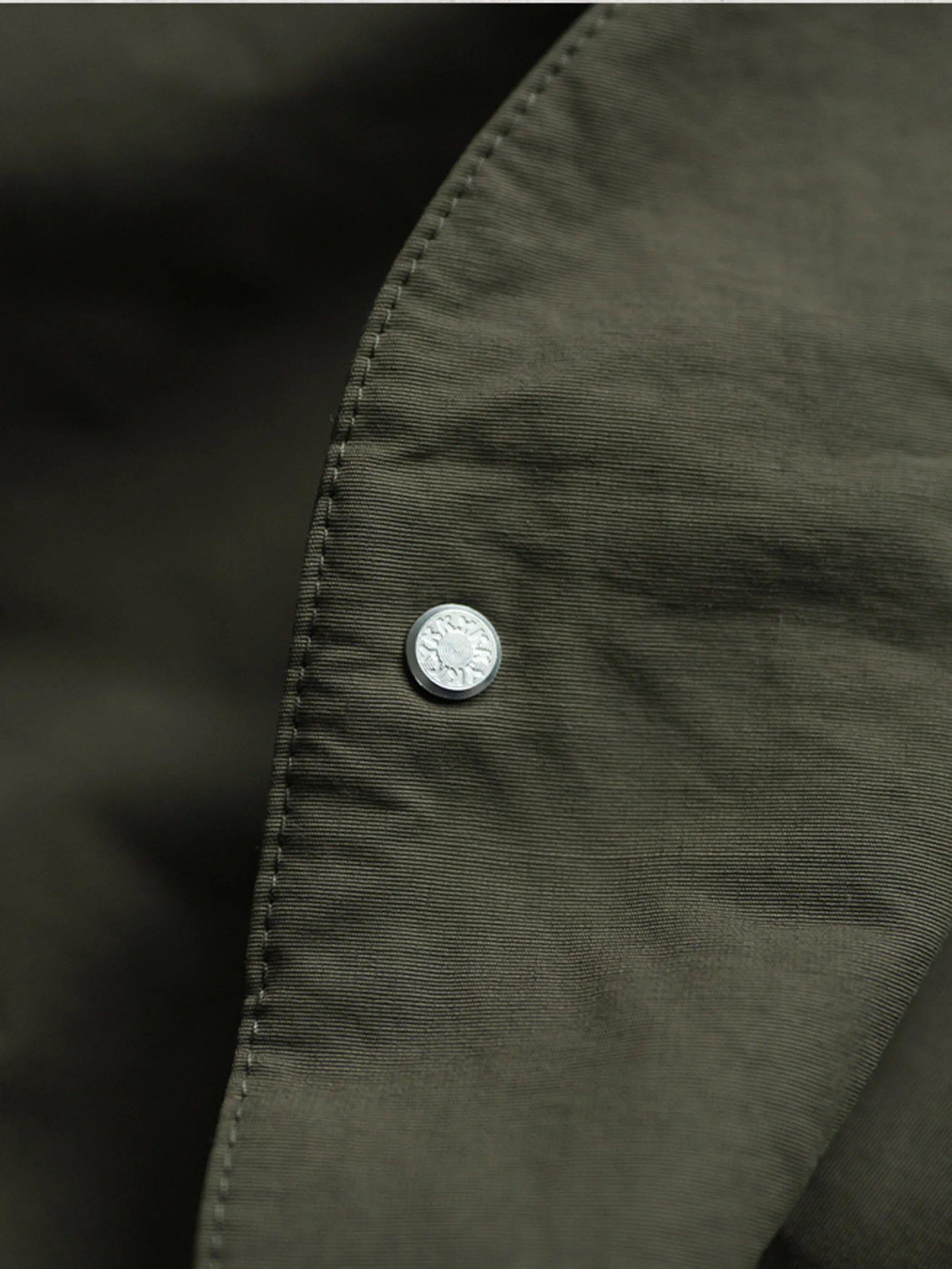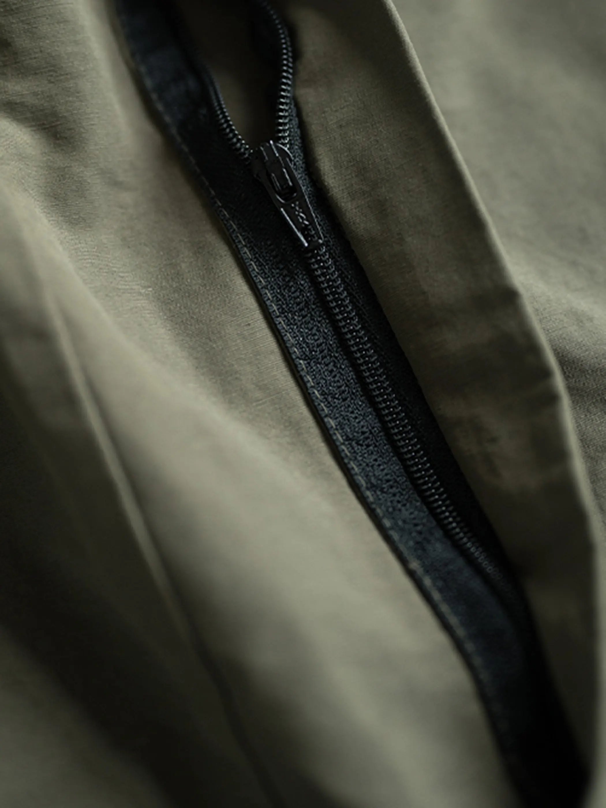 このヴィンテージ風ハンティングベストは、1930年代のCanvas Hunting Vestの伝統的なデザインを踏襲し、胸元のハーフムーンゲームポケットやダブルレイヤーポケットなど、クラシカルな要素を維持しつつ、胸囲や脇にゆとりを持たせたルーズフィット仕様となっています。前襟には、3つの日産YKK太陽模様工字ボタンまたはUNIONMADE銀色工字ボタン、さらに1つの日産UNION MADE四合扣(またはYKK PERMEX純黒四合扣)を組み合わせ、細部にまでこだわりを感じさせます。素材は、60/40綿と锦纶の竹節織り混紡生地(260g)を使用し、強捻糸で織られた生地はウォッシュ加工により自然なシワと旧化感を表現。春夏は単体で、秋冬はレイヤードで多彩な着こなしが可能です。
