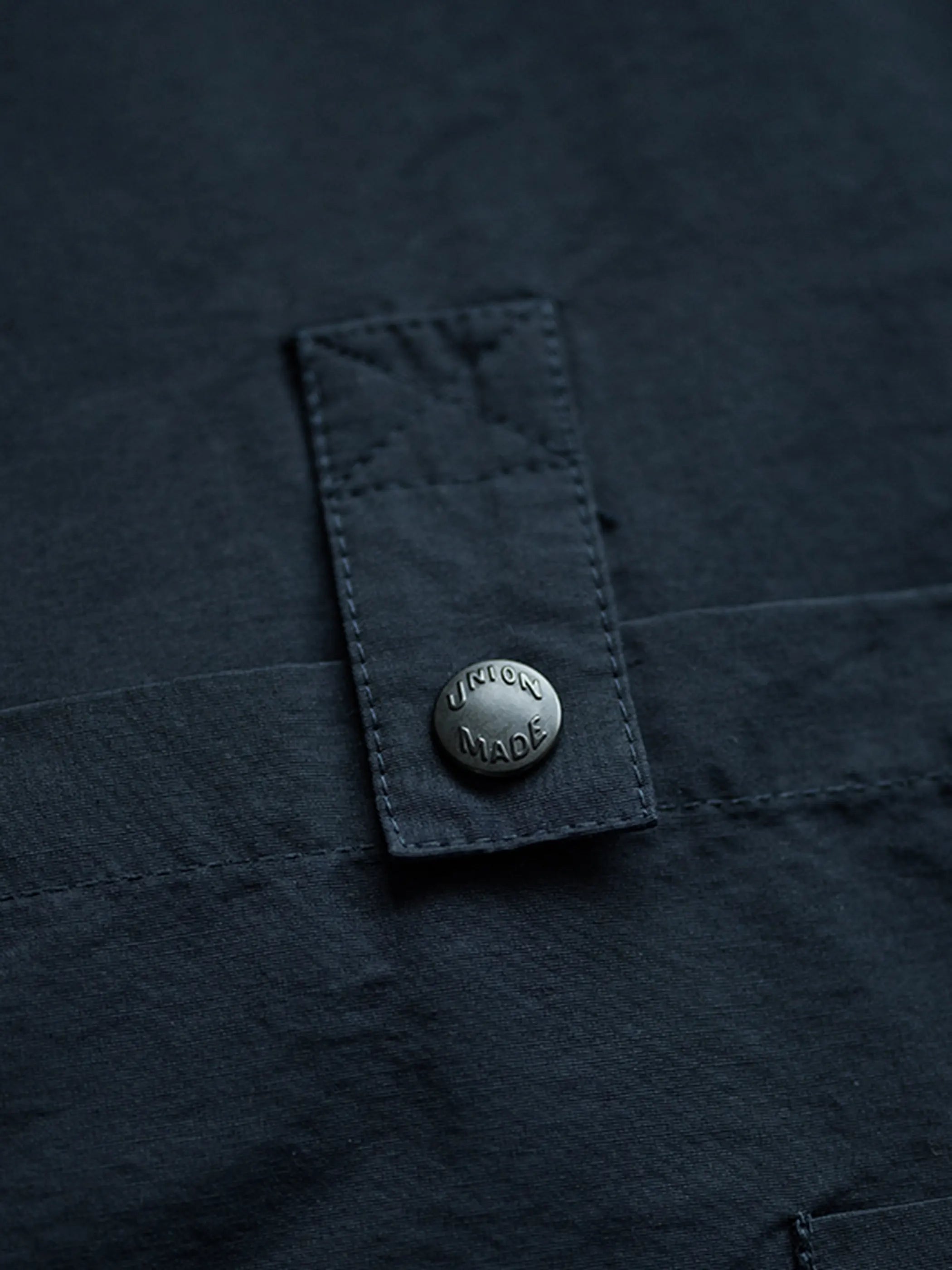 60/40混紡生地は高い支持力と耐久性を持ち、ウォッシュ加工により微妙なシワが加わり、ヴィンテージ感を演出。