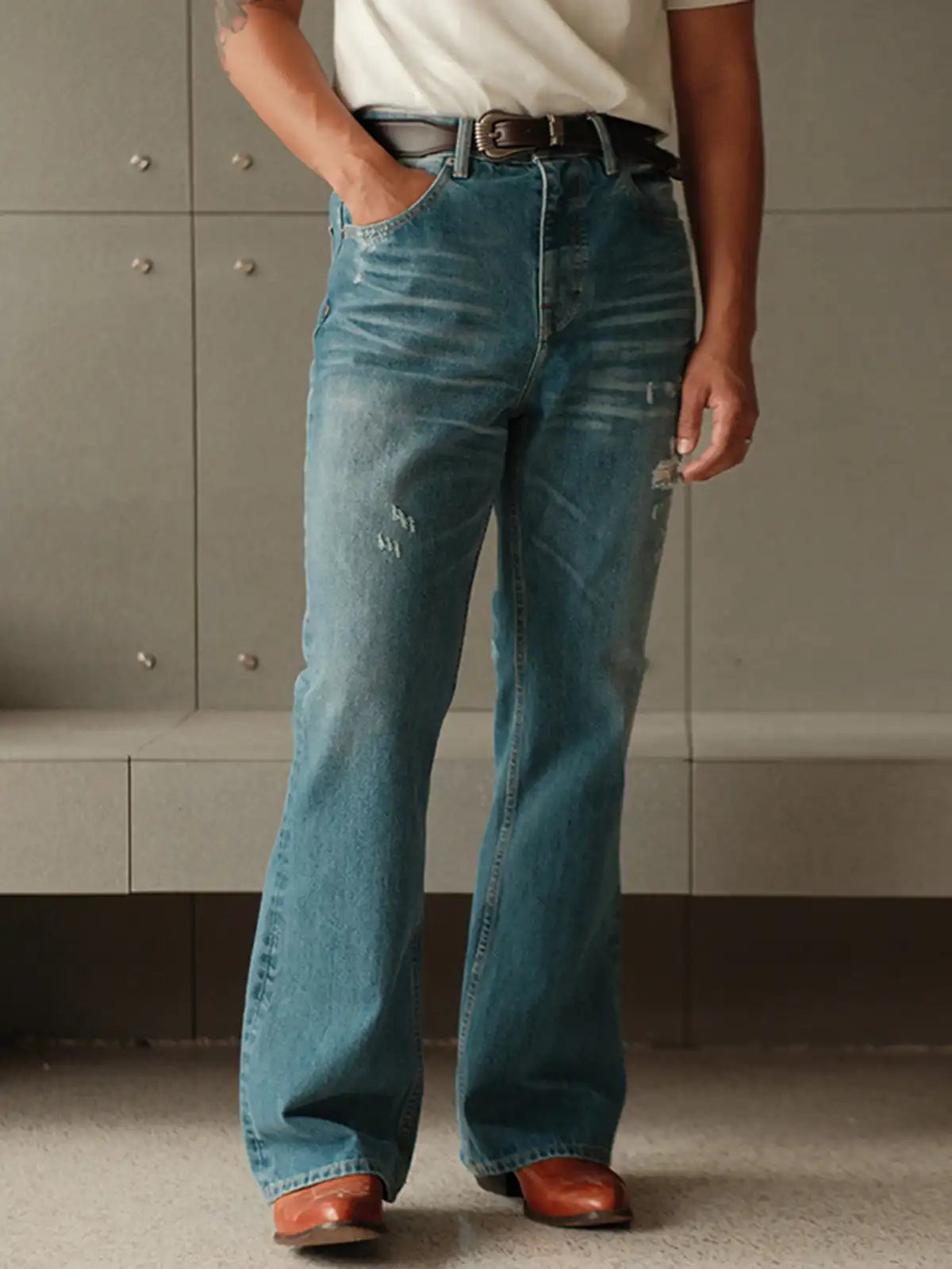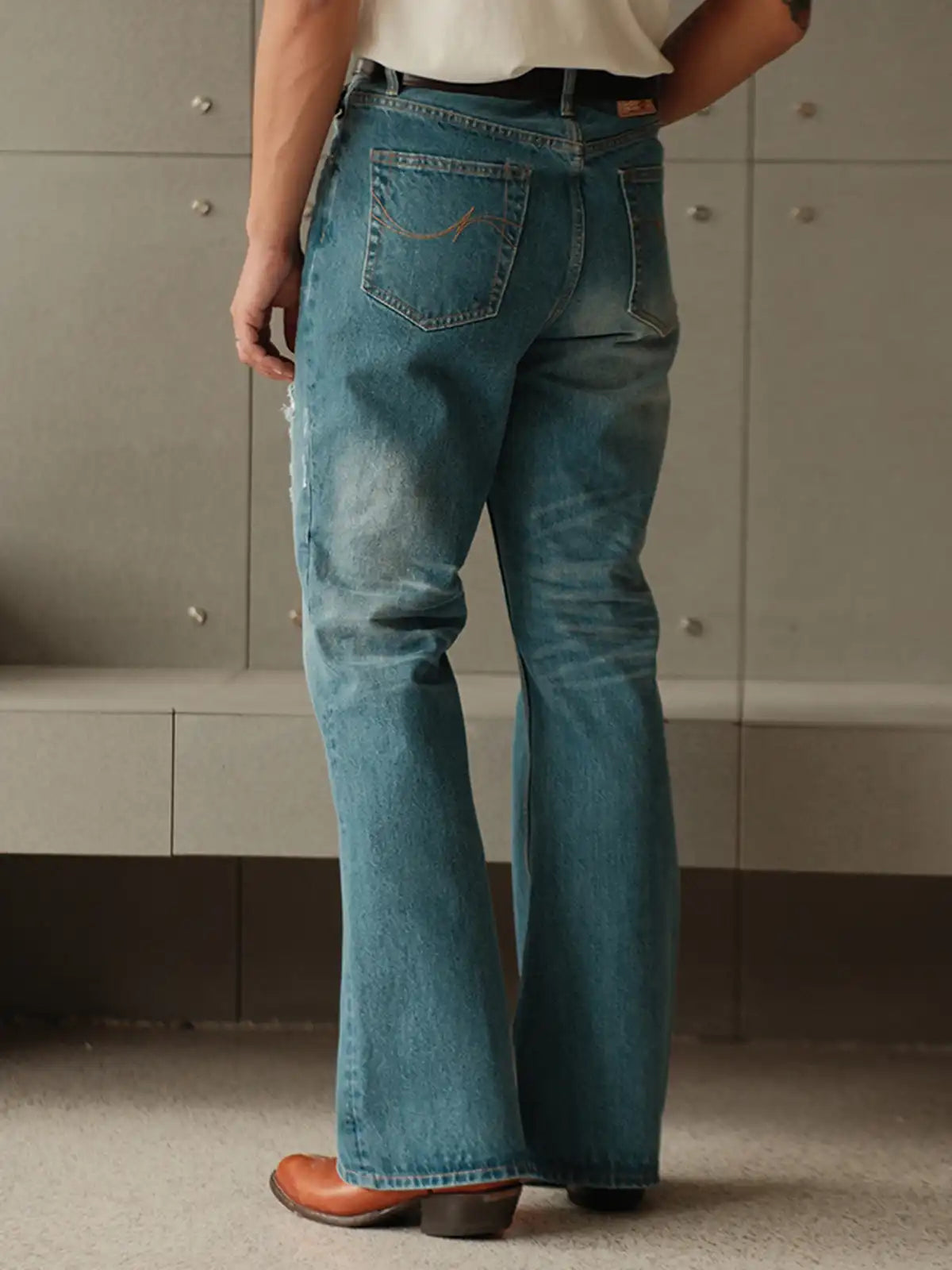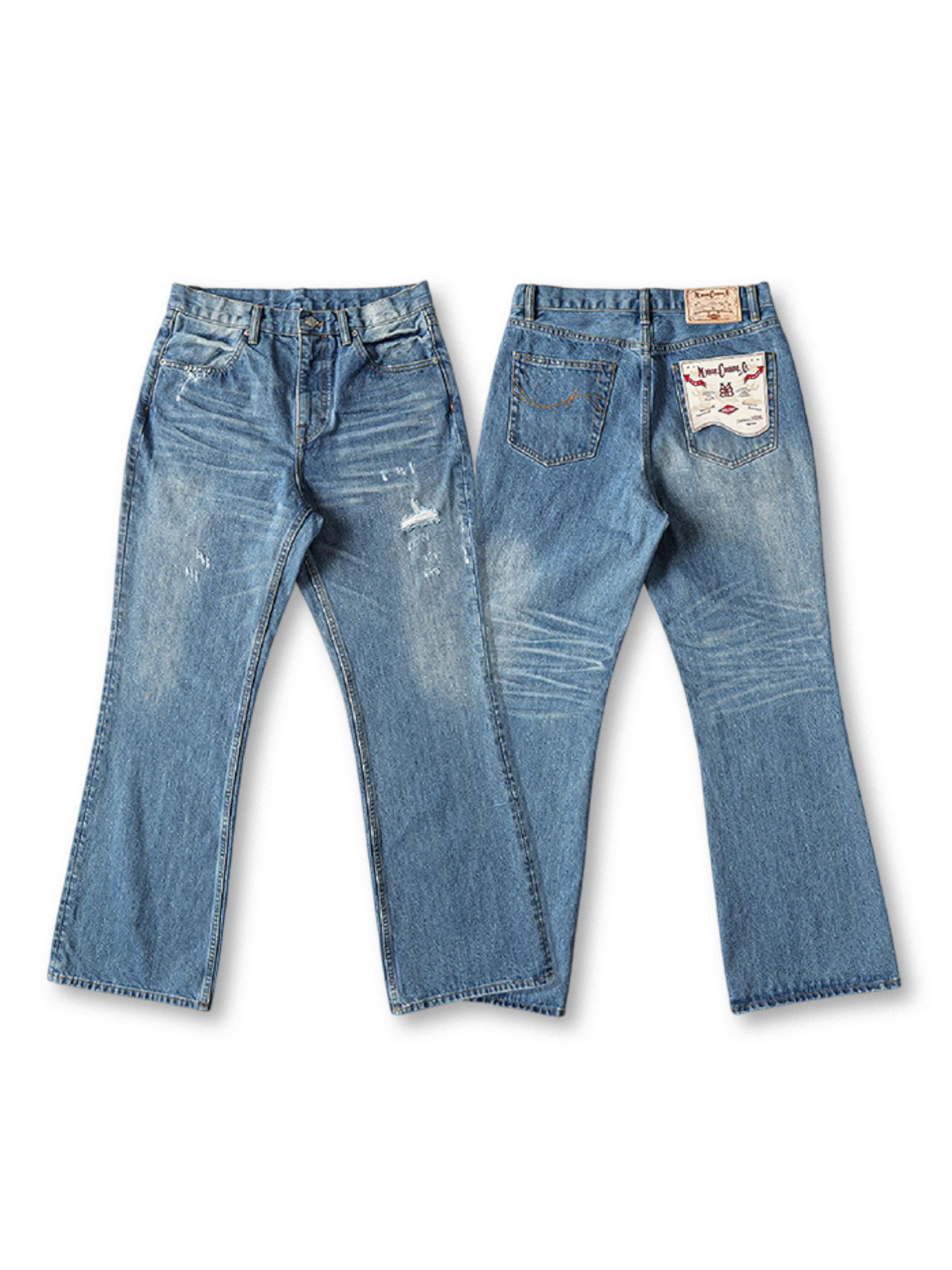 アンティーク織機が生んだ赤耳セルビッジデニムの独特なスラブフェードと、ミッドハイウエストから裾にかけて美しく広がるブーツカットシルエット。