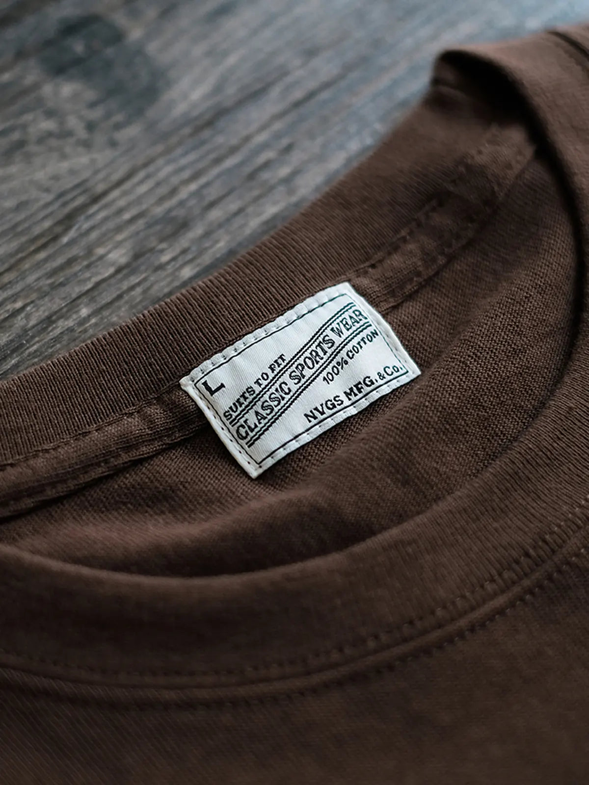 1980年代フランス製丸胴Tを復刻した、泥土色の240gヘビーウェイトで裾に和柄パッチをあしらった一枚。