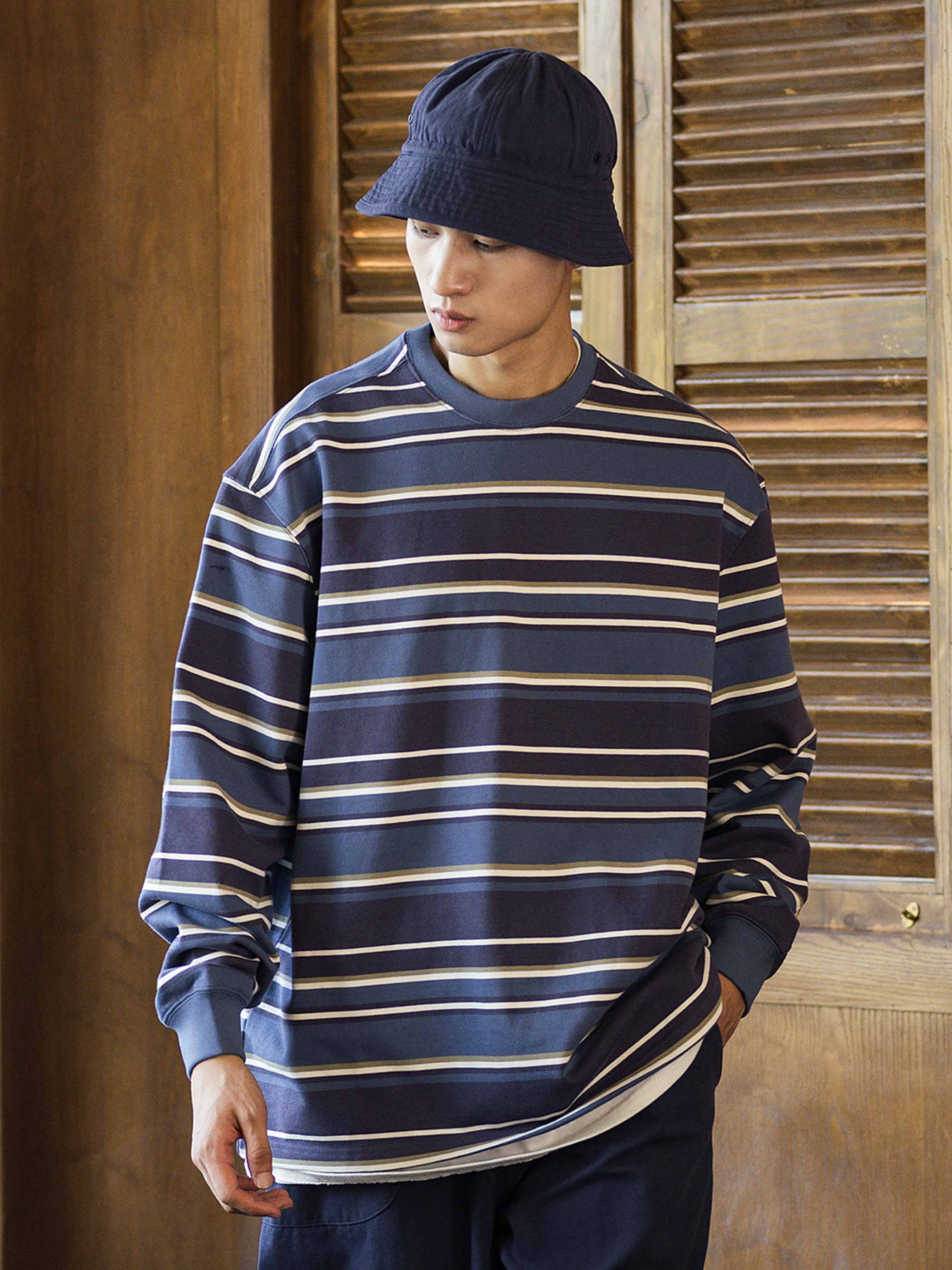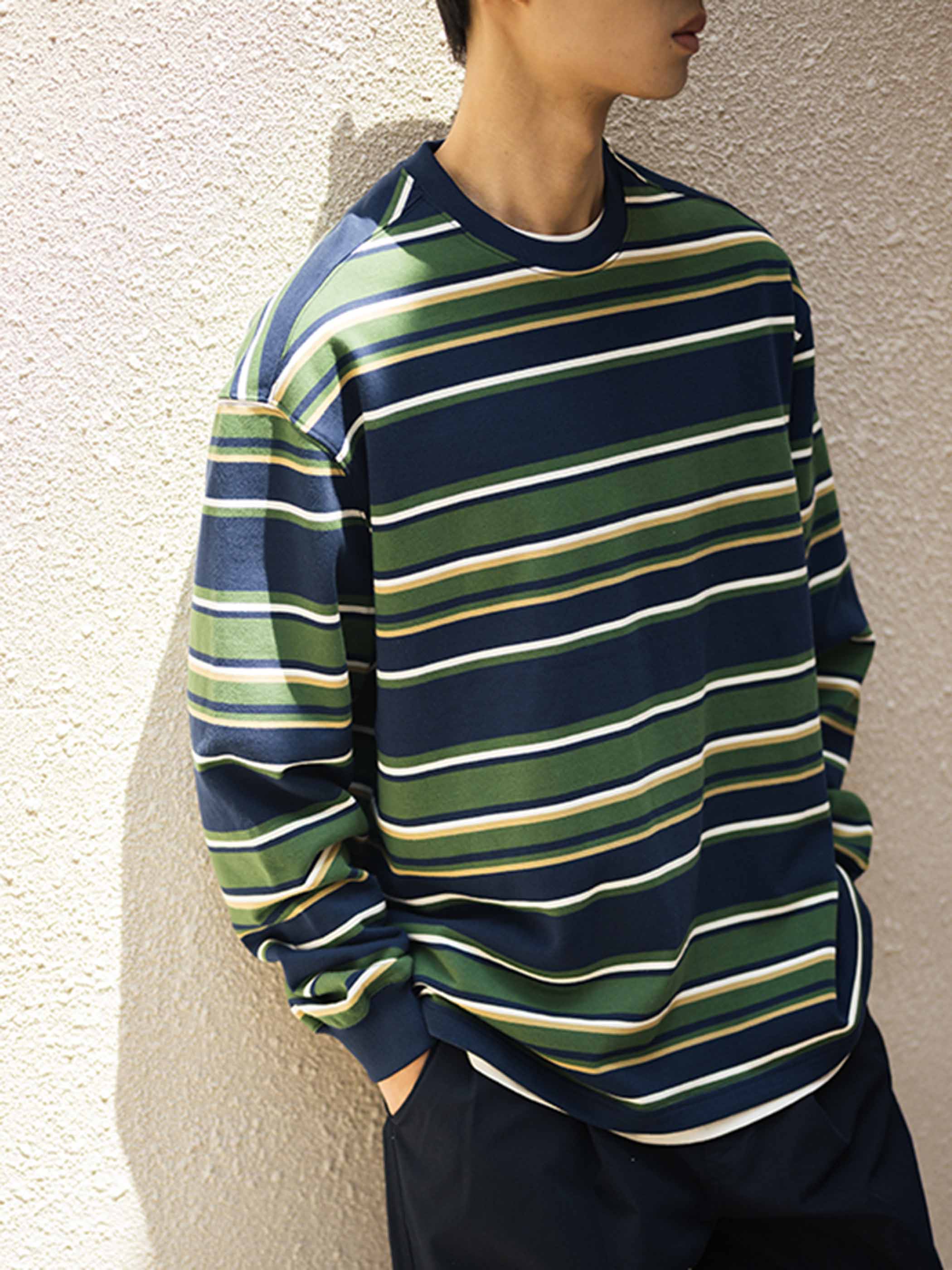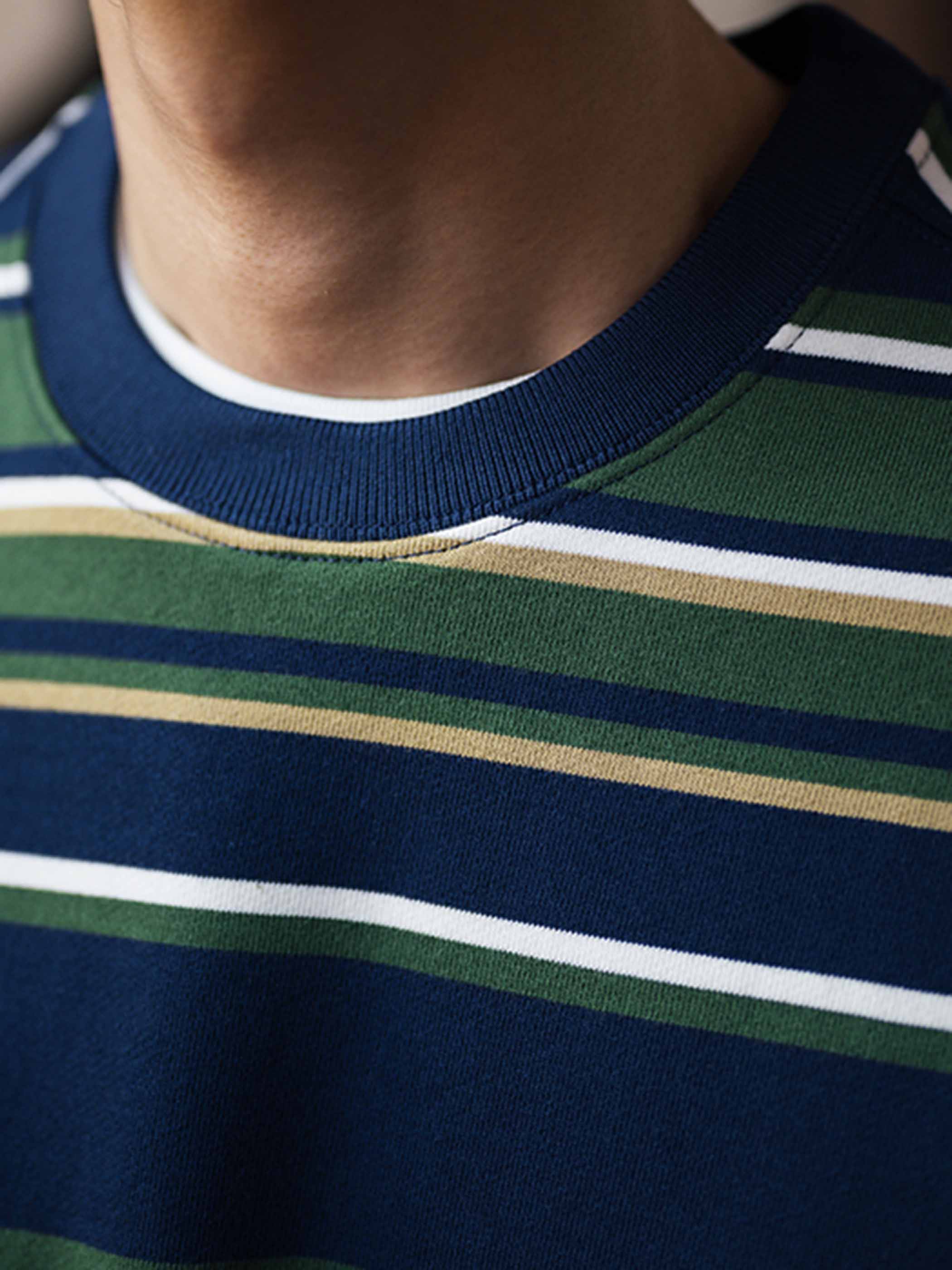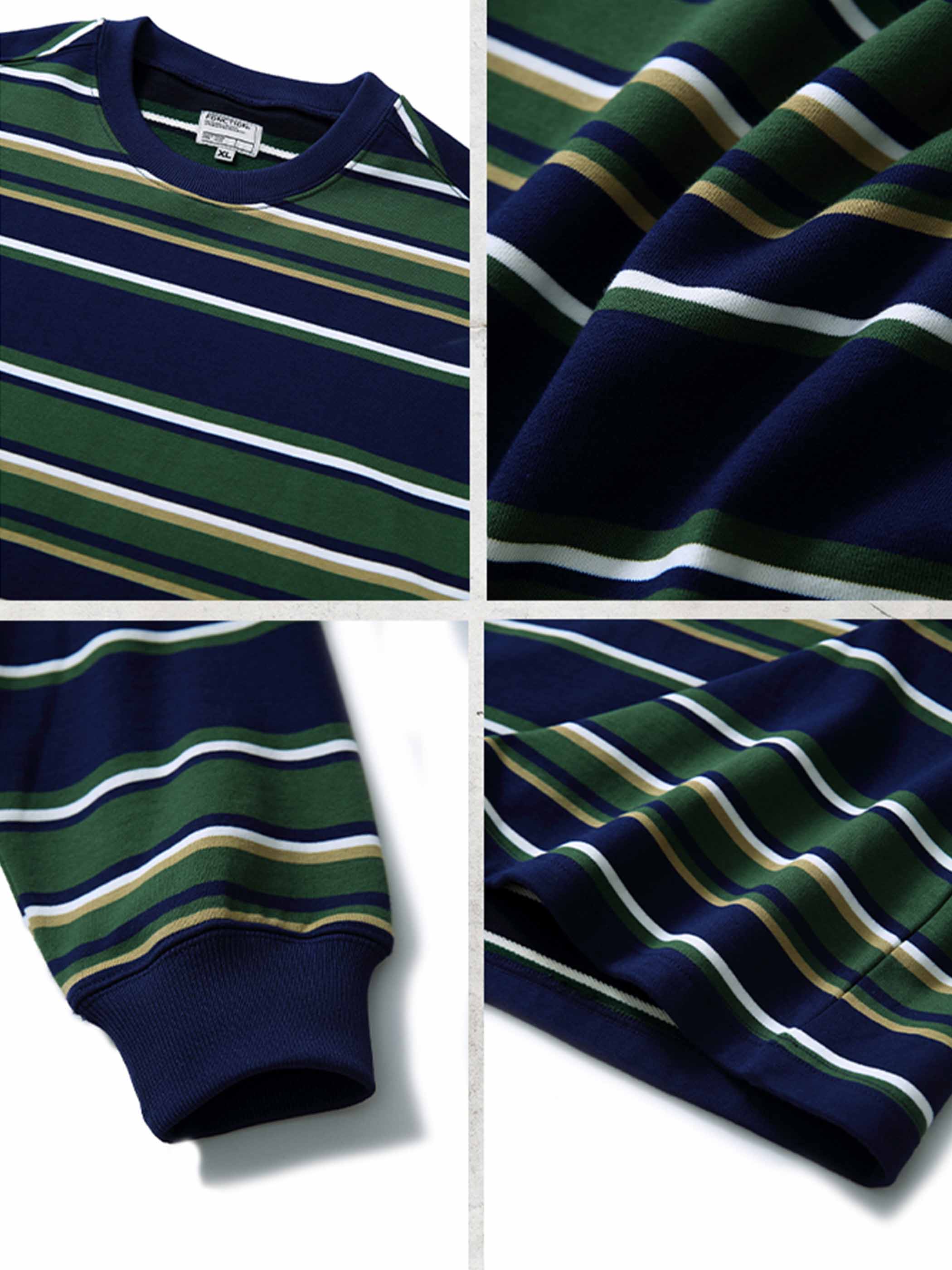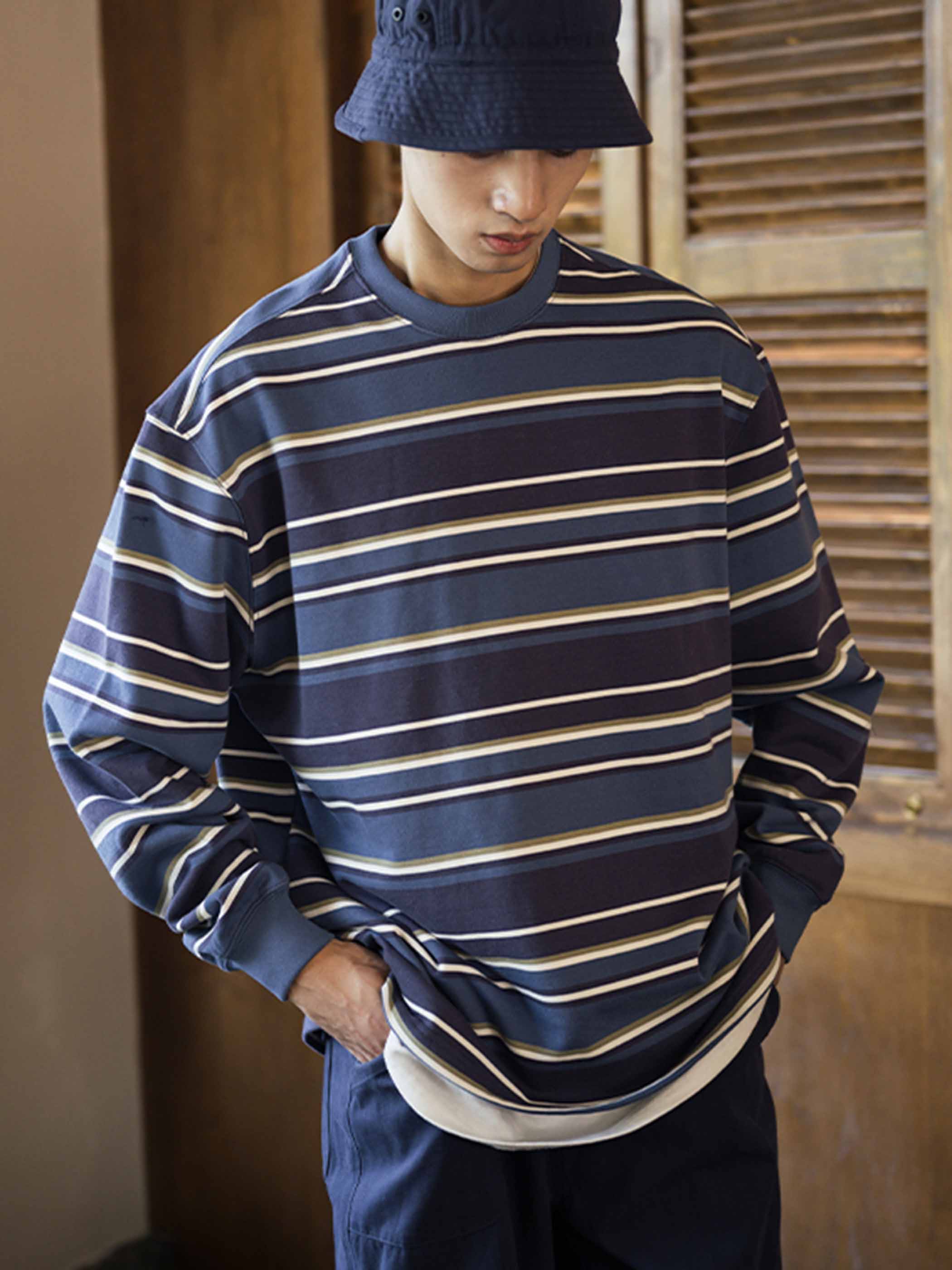 高克重の定織ストライプ生地を使用し、しっかりとした硬さと復古感を実現し、快適さと秋冬の保温性を兼ね備えた一着です。