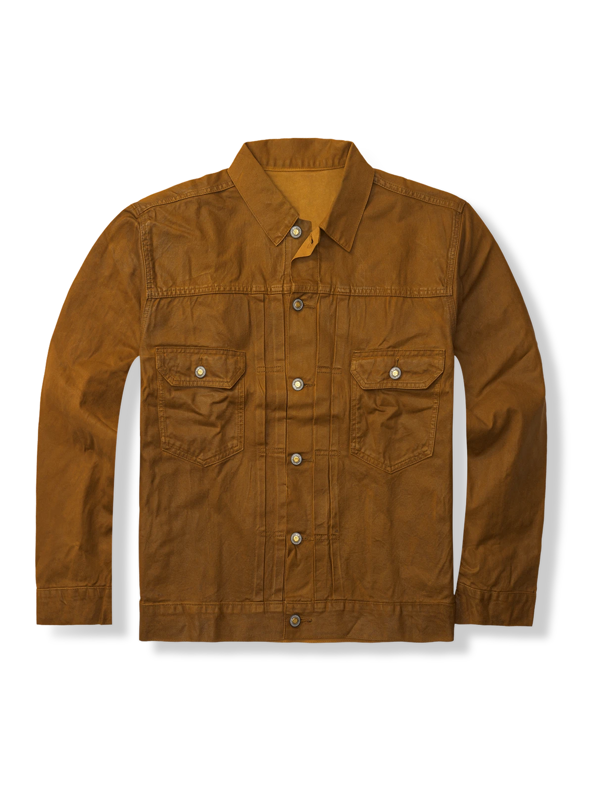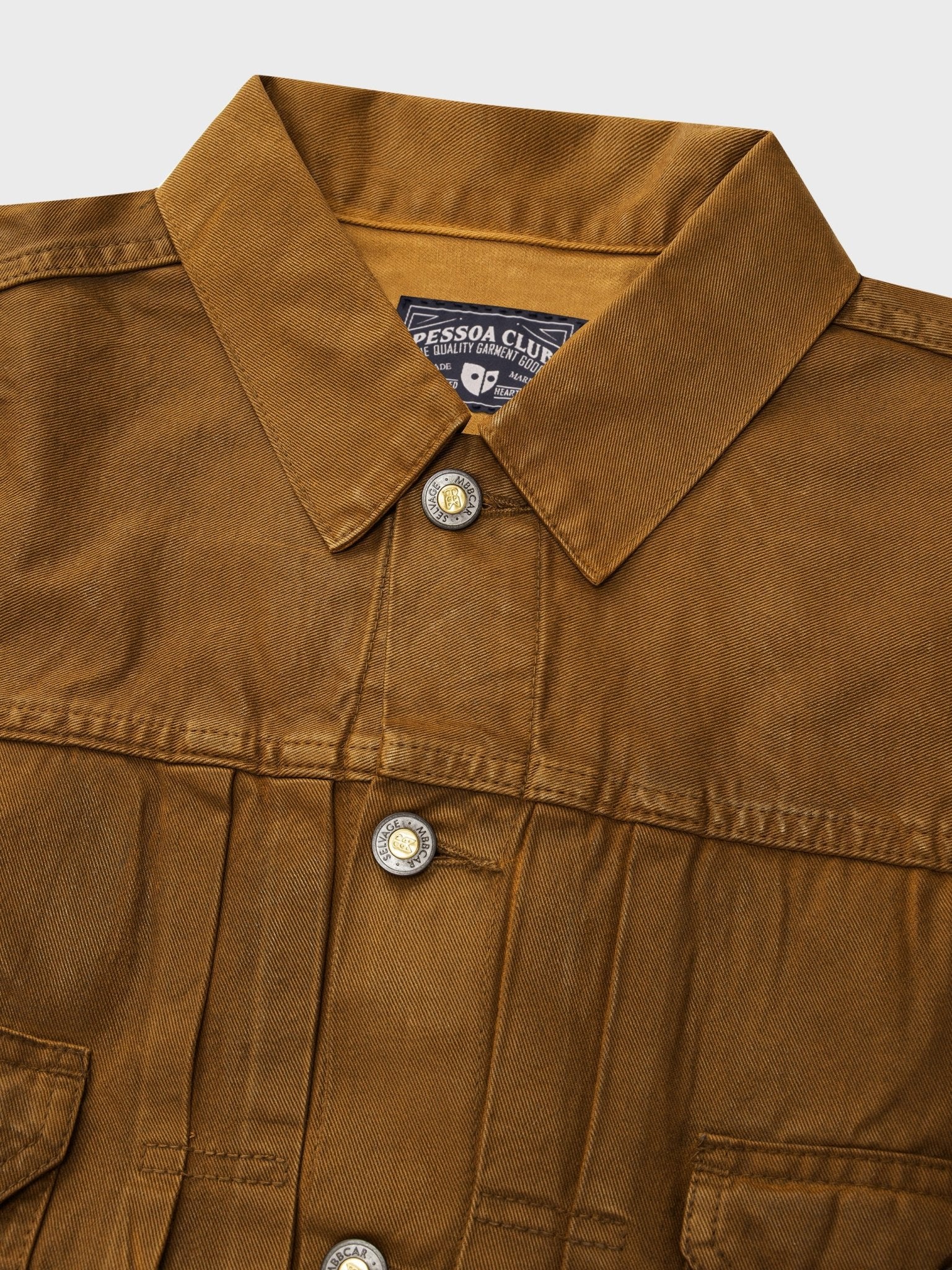 このジャケットはクラシックなレトロデザインを採用し、赤耳地とPUコーティング技術を組み合わせ、懐かしい時代の風格を演出しています。同時に、現代的なデザイン要素も取り入れ、クラシックでありながらも時代を超えた印象を与えます。