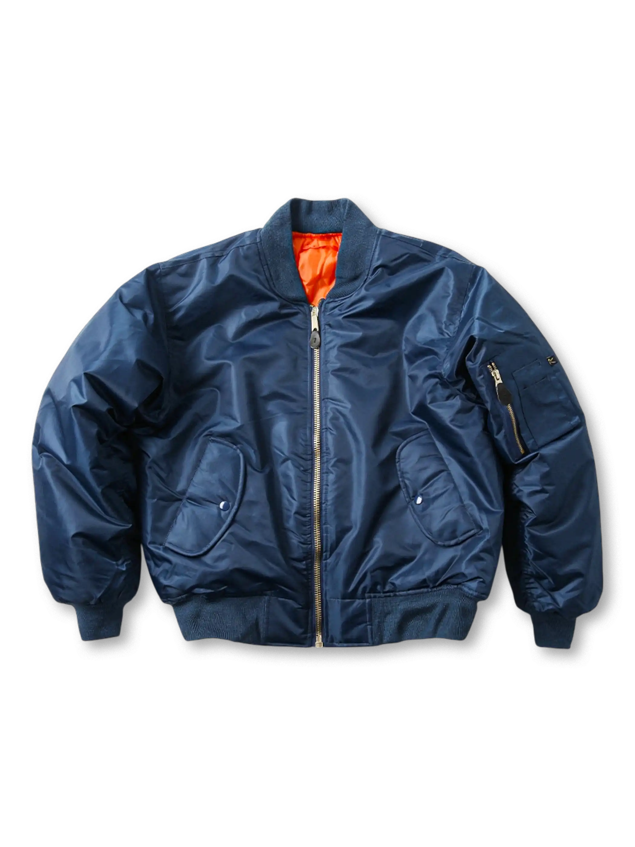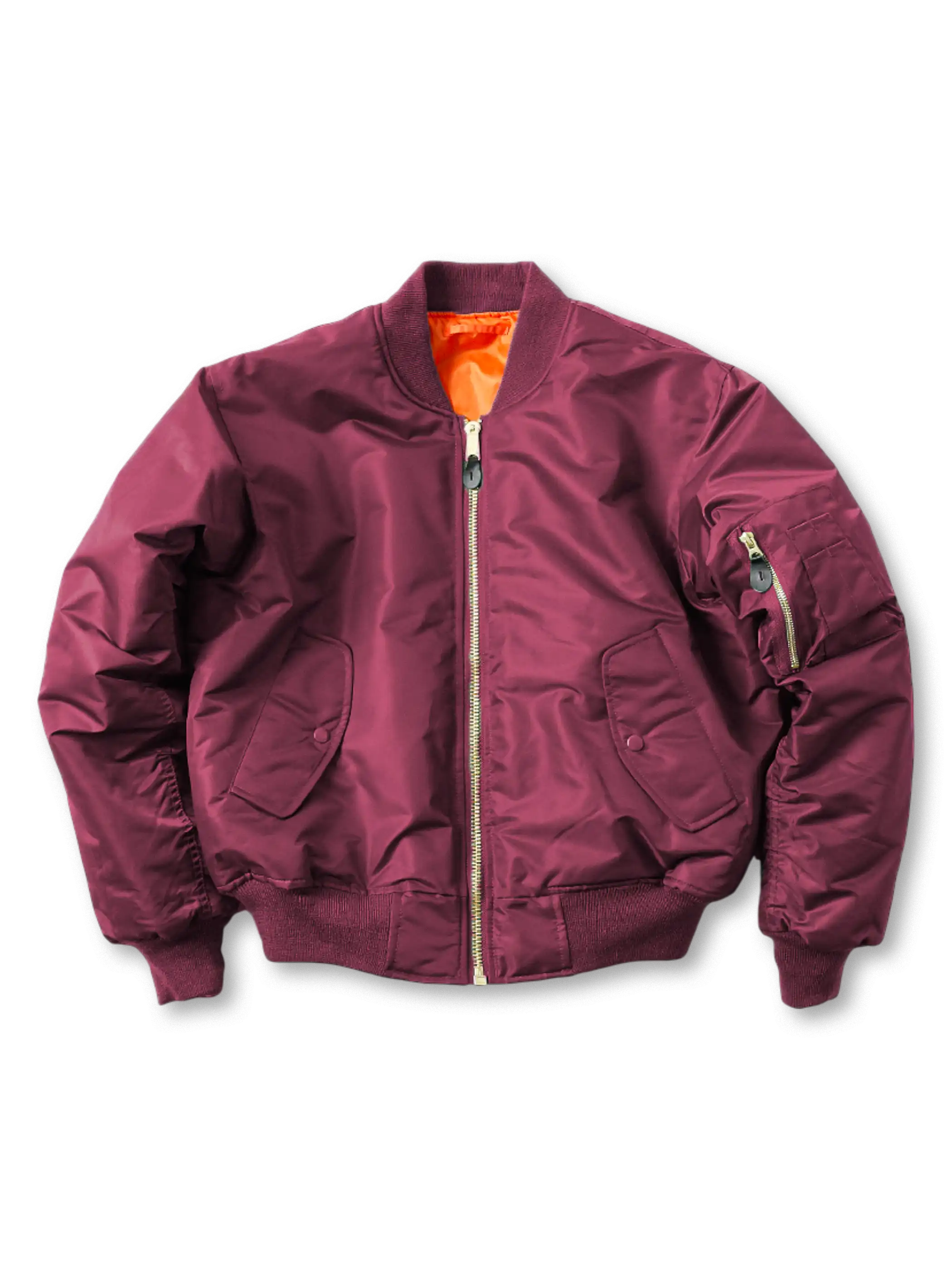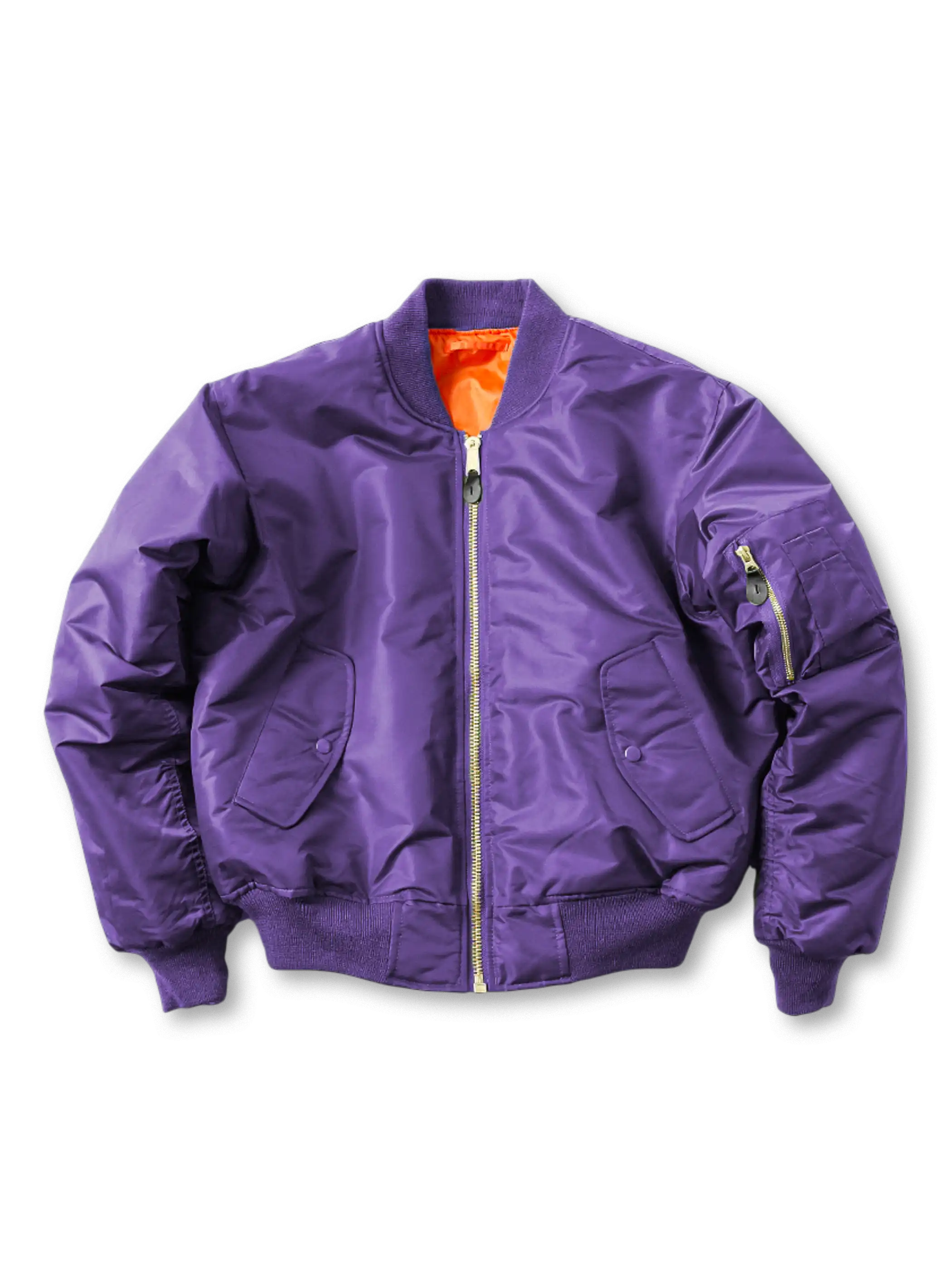 アメリカ空軍パイロットのために設計されたMA-1をベースに、現代的な素材とシルエットで再構築。66ナイロンツイル生地を使用し、撥水・防風性を確保。内側には鮮やかなレスキューオレンジを採用し、リバーシブル仕様を踏襲。袖にはユーティリティーポケット、ウエストにはスナップ付きフラップポケットを配置。裾と袖口のリブが冷気を遮断し、1800g相当の中綿が-10°C〜10°Cの気候にも対応。全体のシルエットはオリジナル同様、袖周りにゆとりを持たせたショート丈のボリュームフォルムで、現代のオーバーサイズスタイルにもマッチする。生地の厚さ:厚手フィット:ルーズフィット伸縮性:なし(リブ部のみあり)丈:短丈