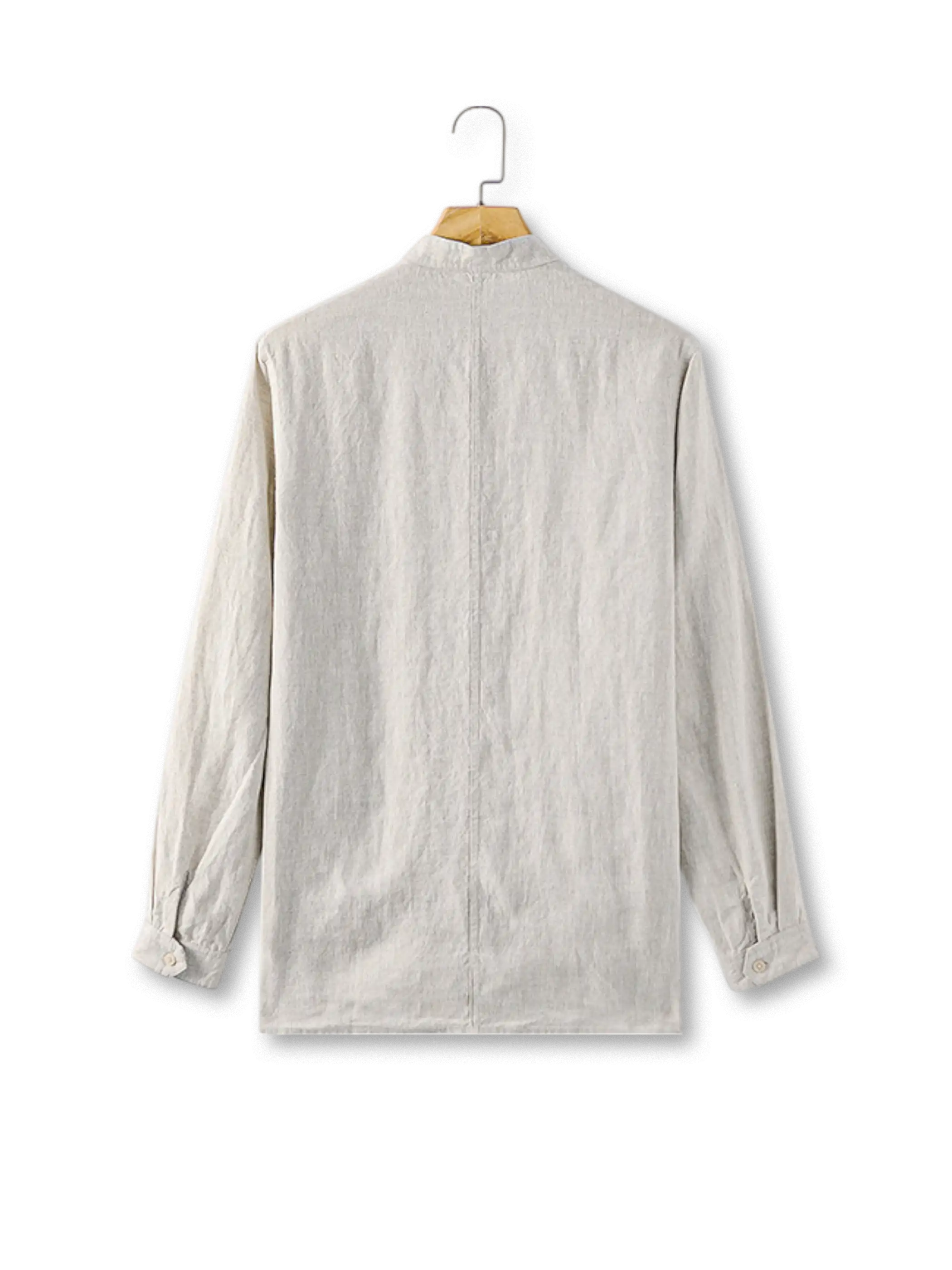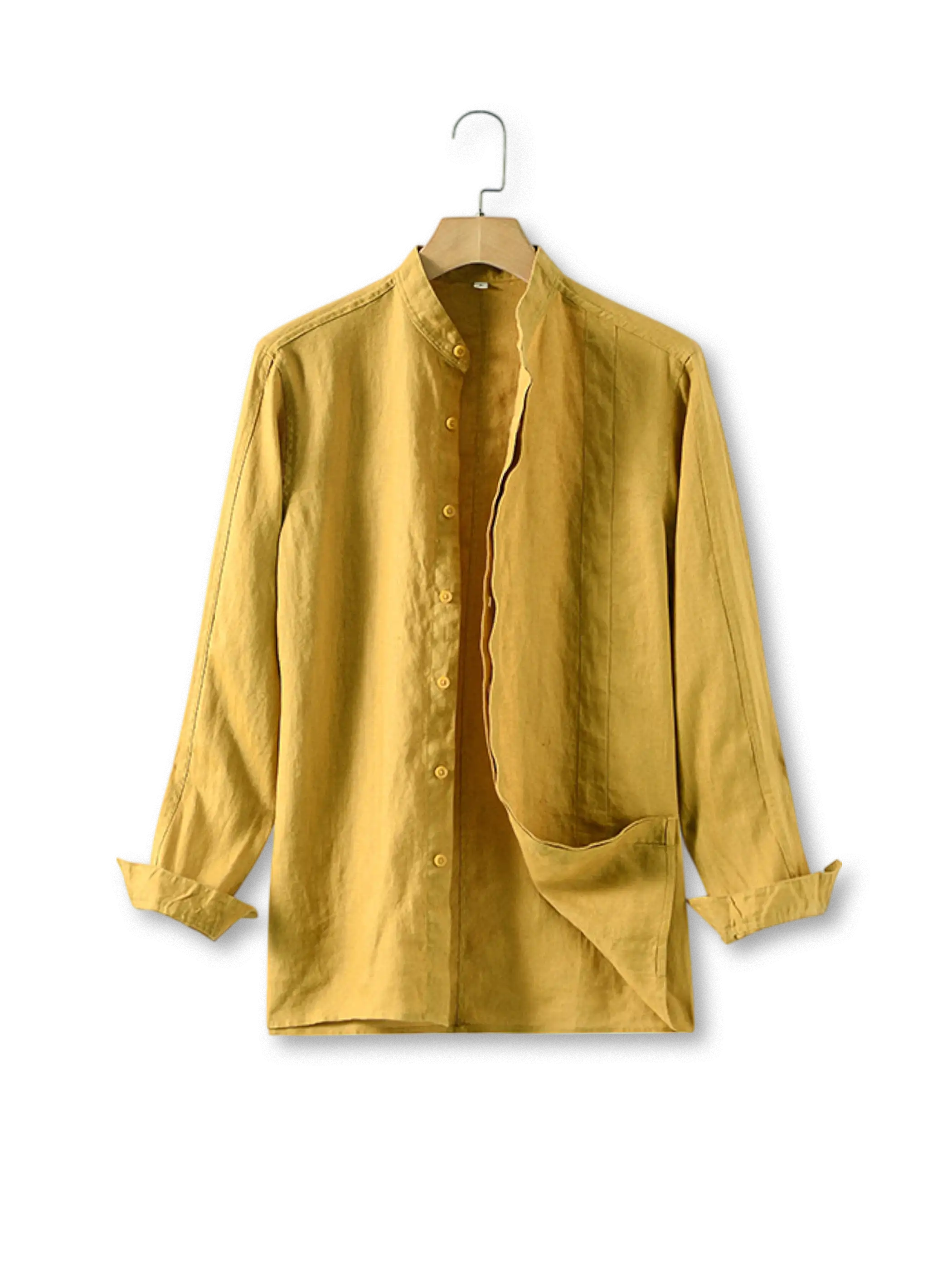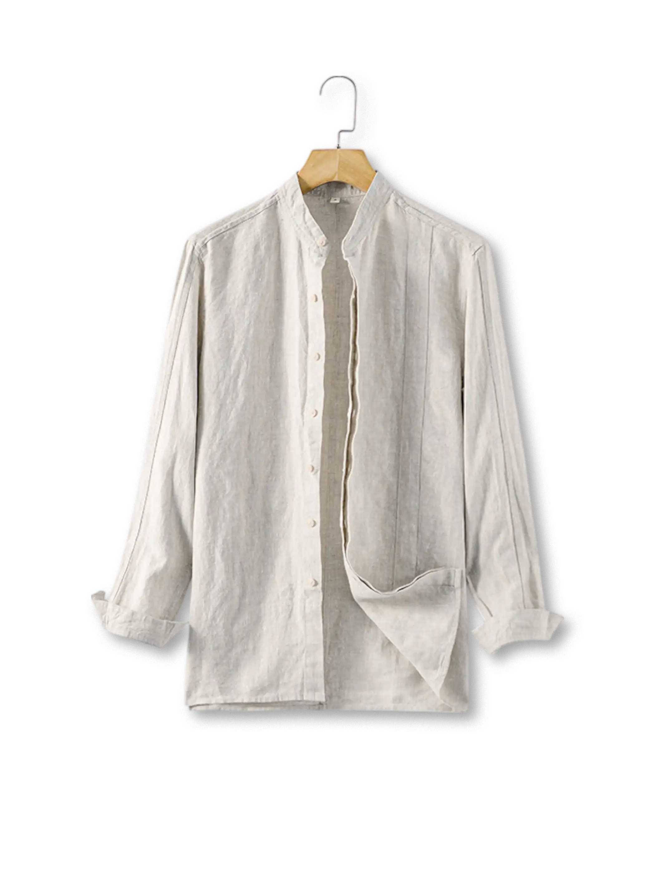 天然リネンが生む清涼感と抜群の吸湿性で、一日中爽やかな着心地を約束するカジュアルリラックスシャツ。