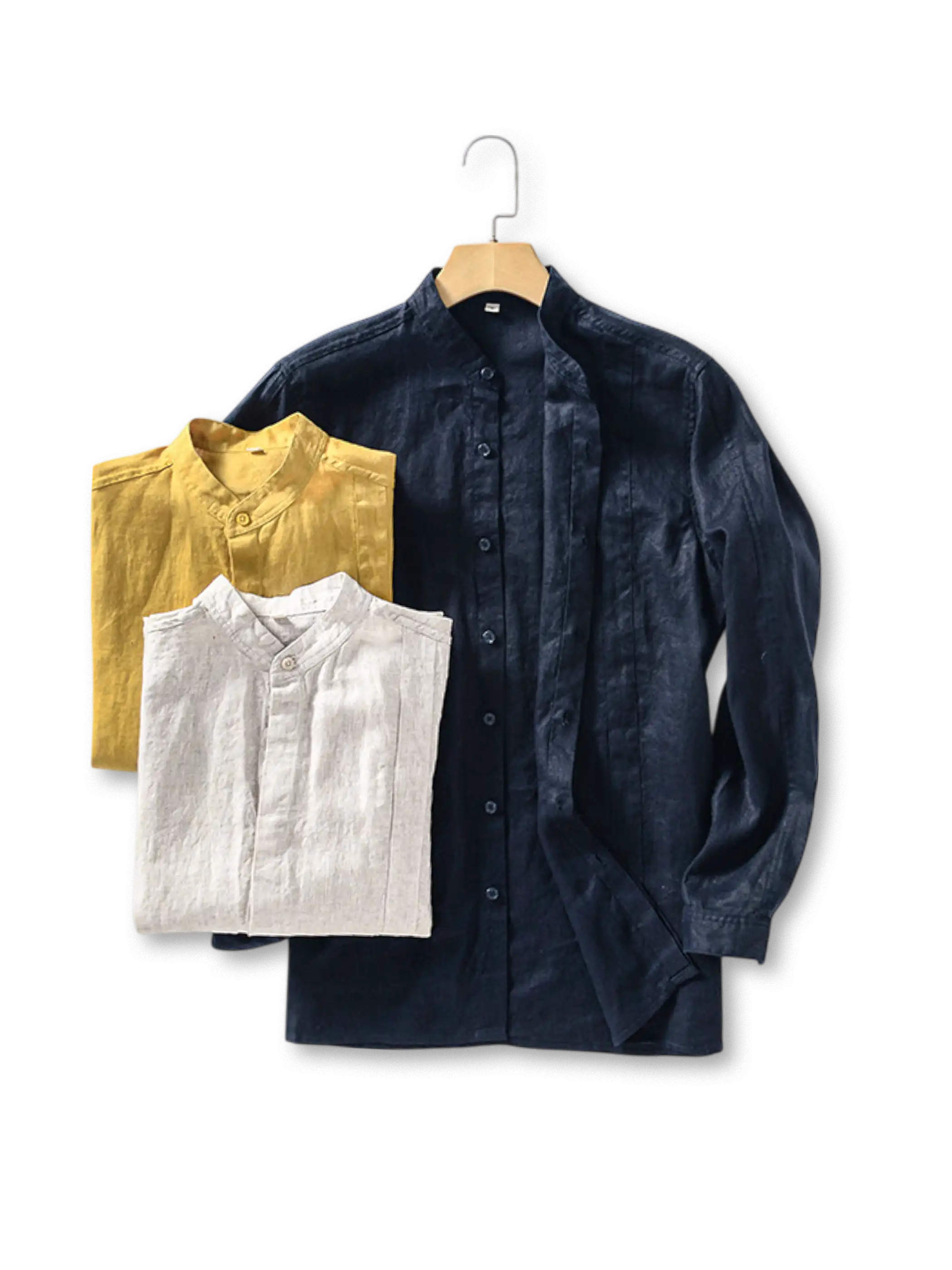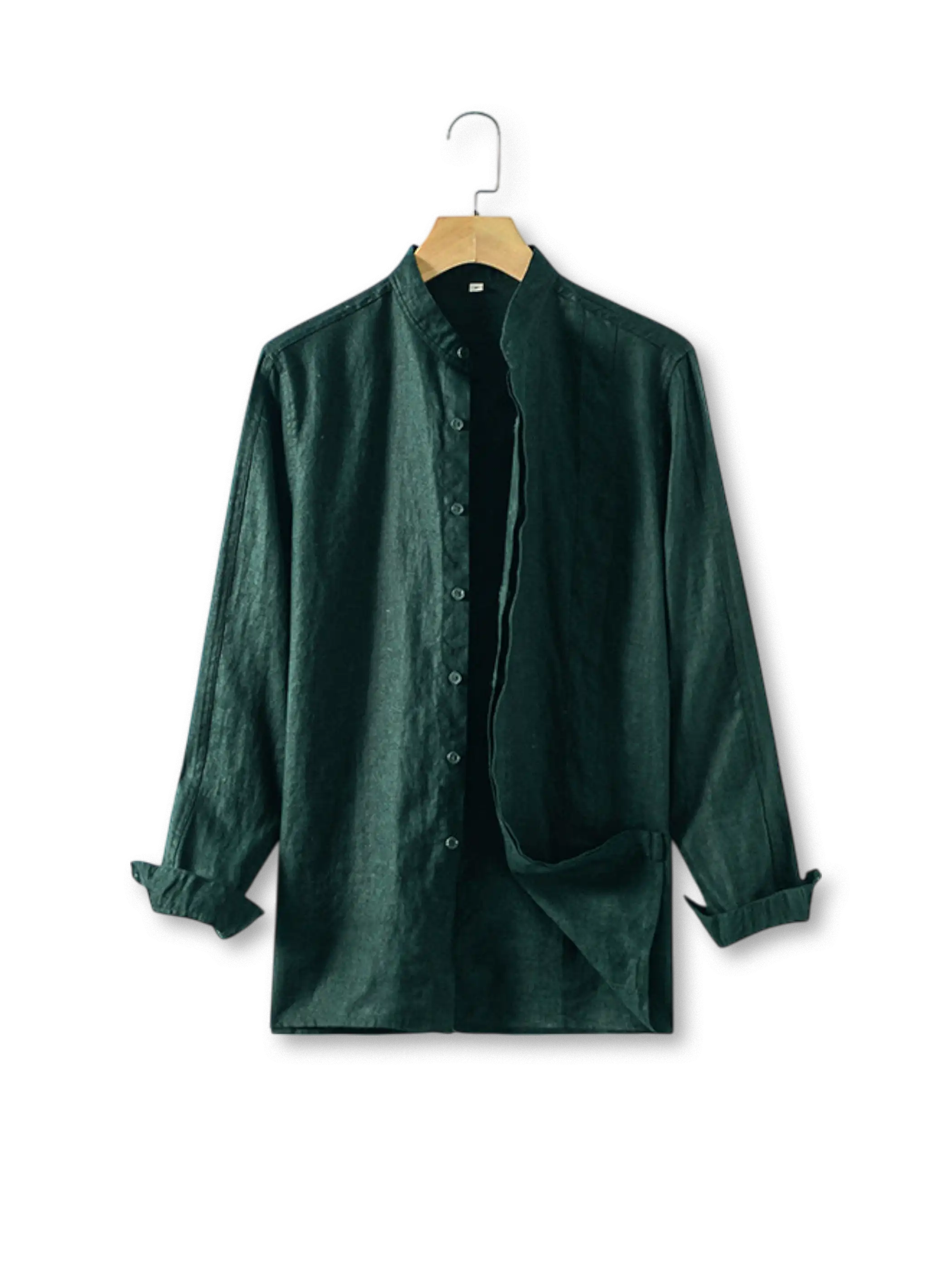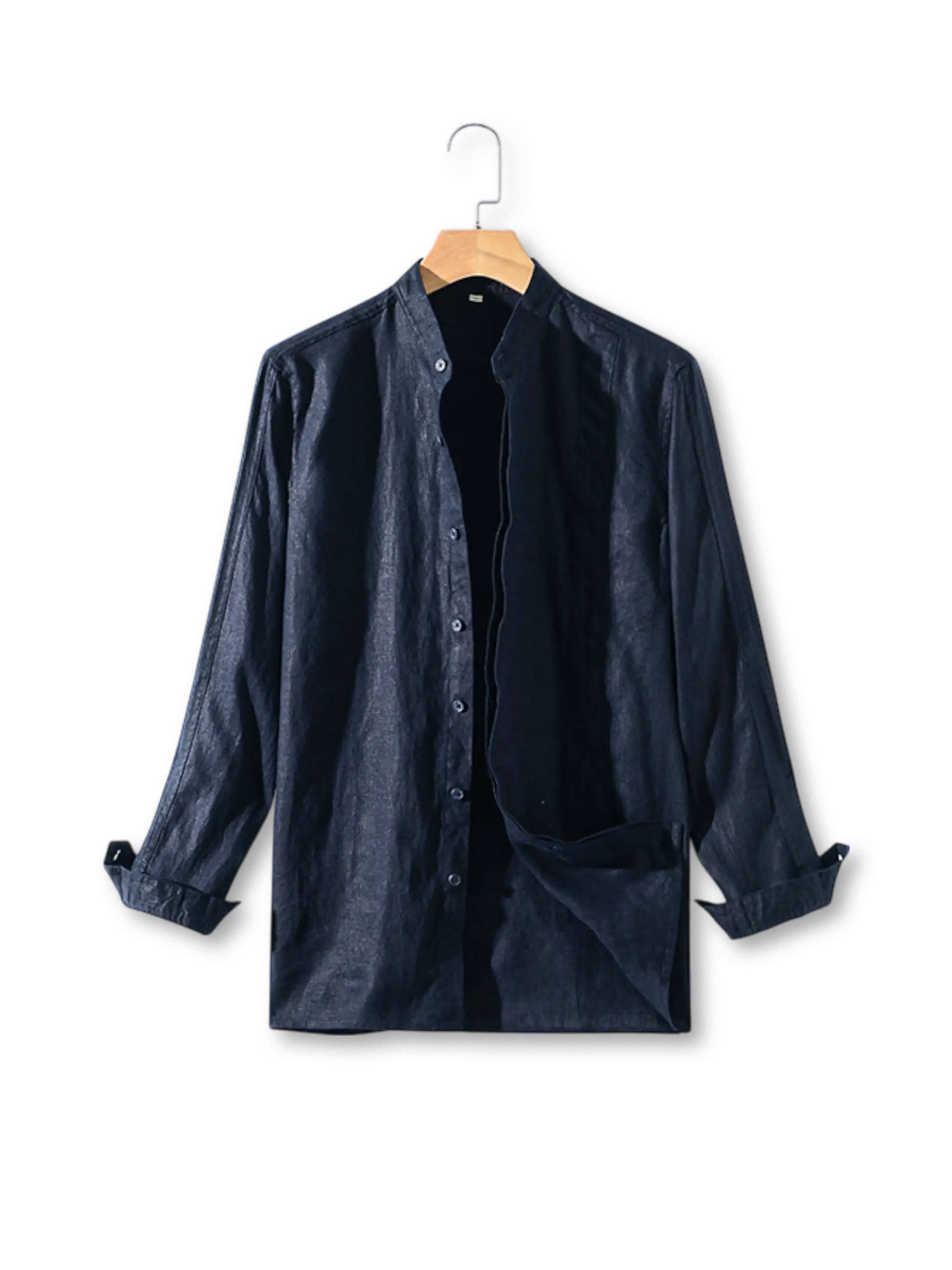 天然リネンが生む清涼感と抜群の吸湿性で、一日中爽やかな着心地を約束するカジュアルリラックスシャツ。
