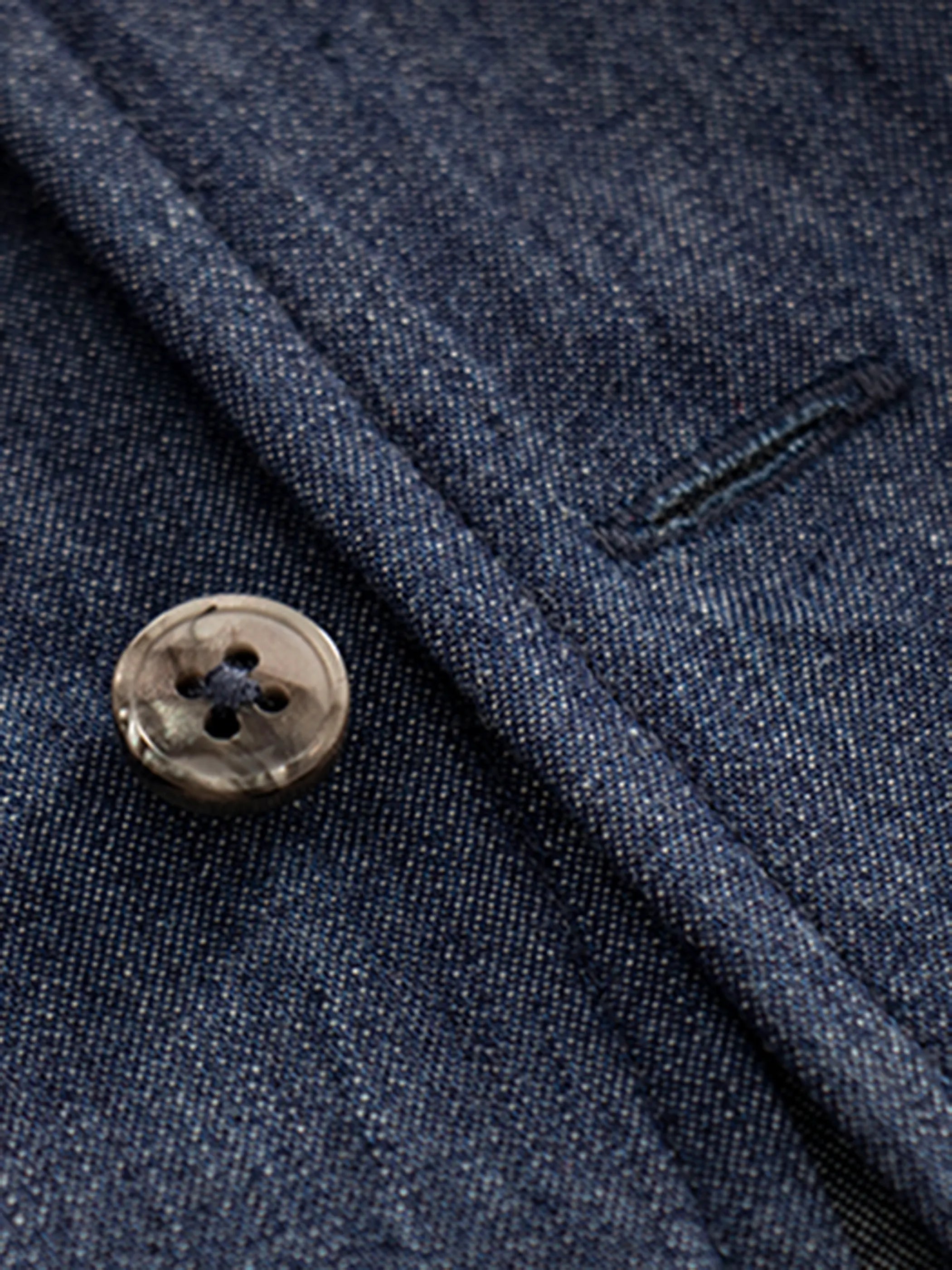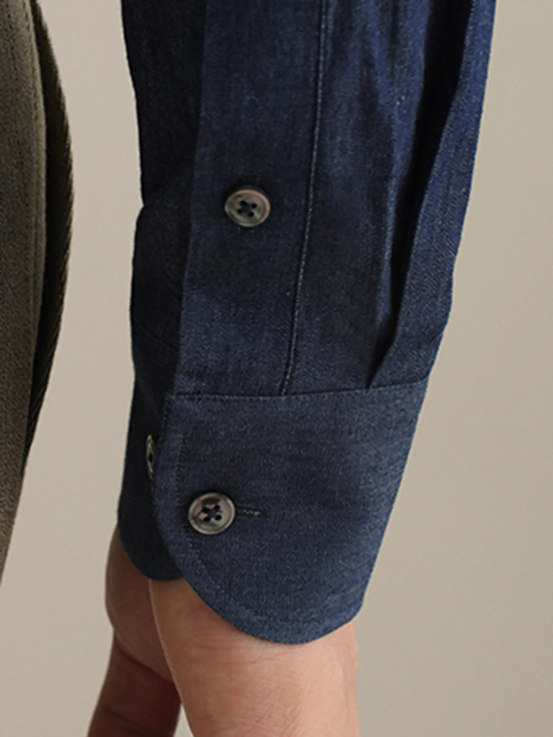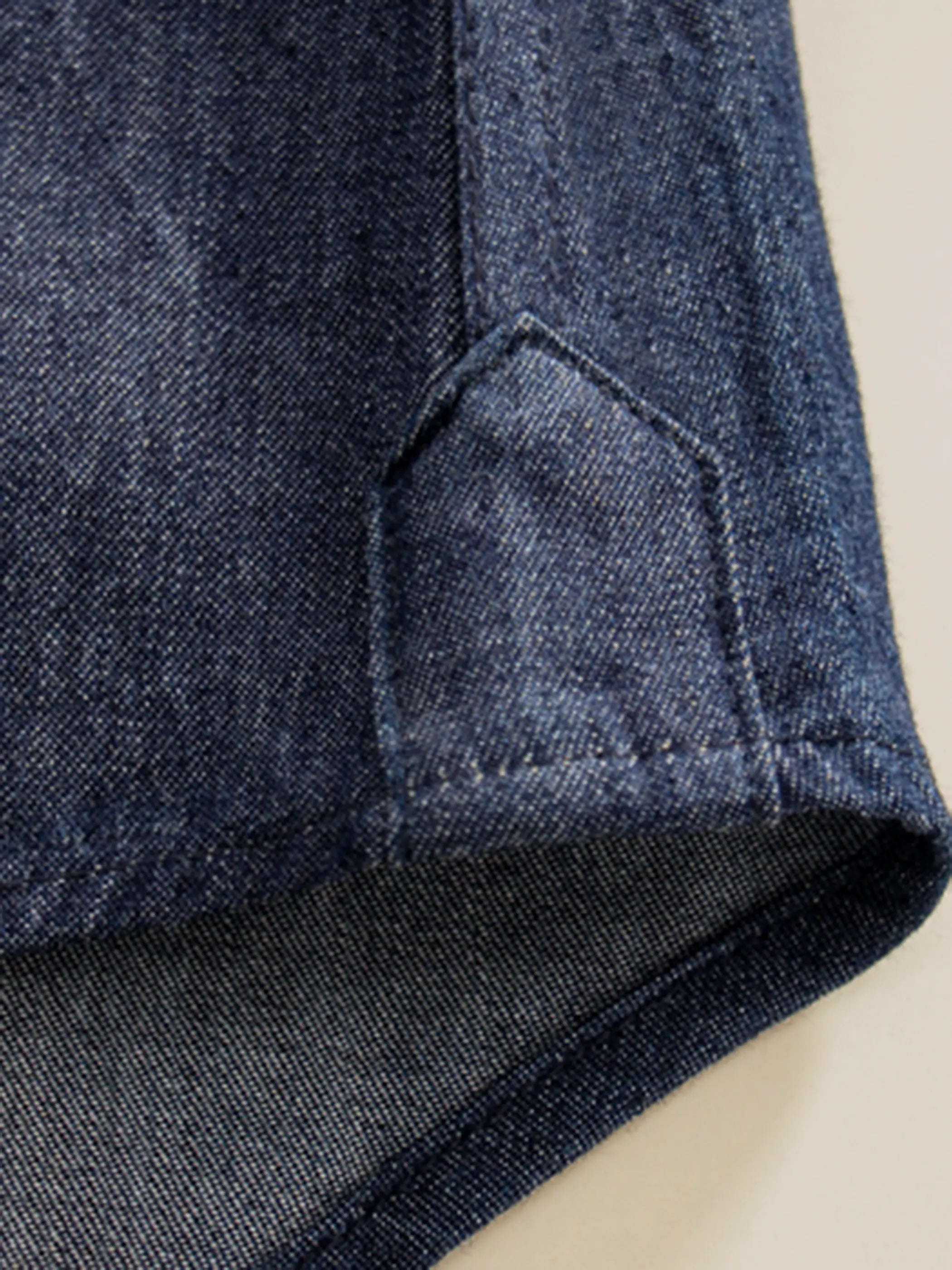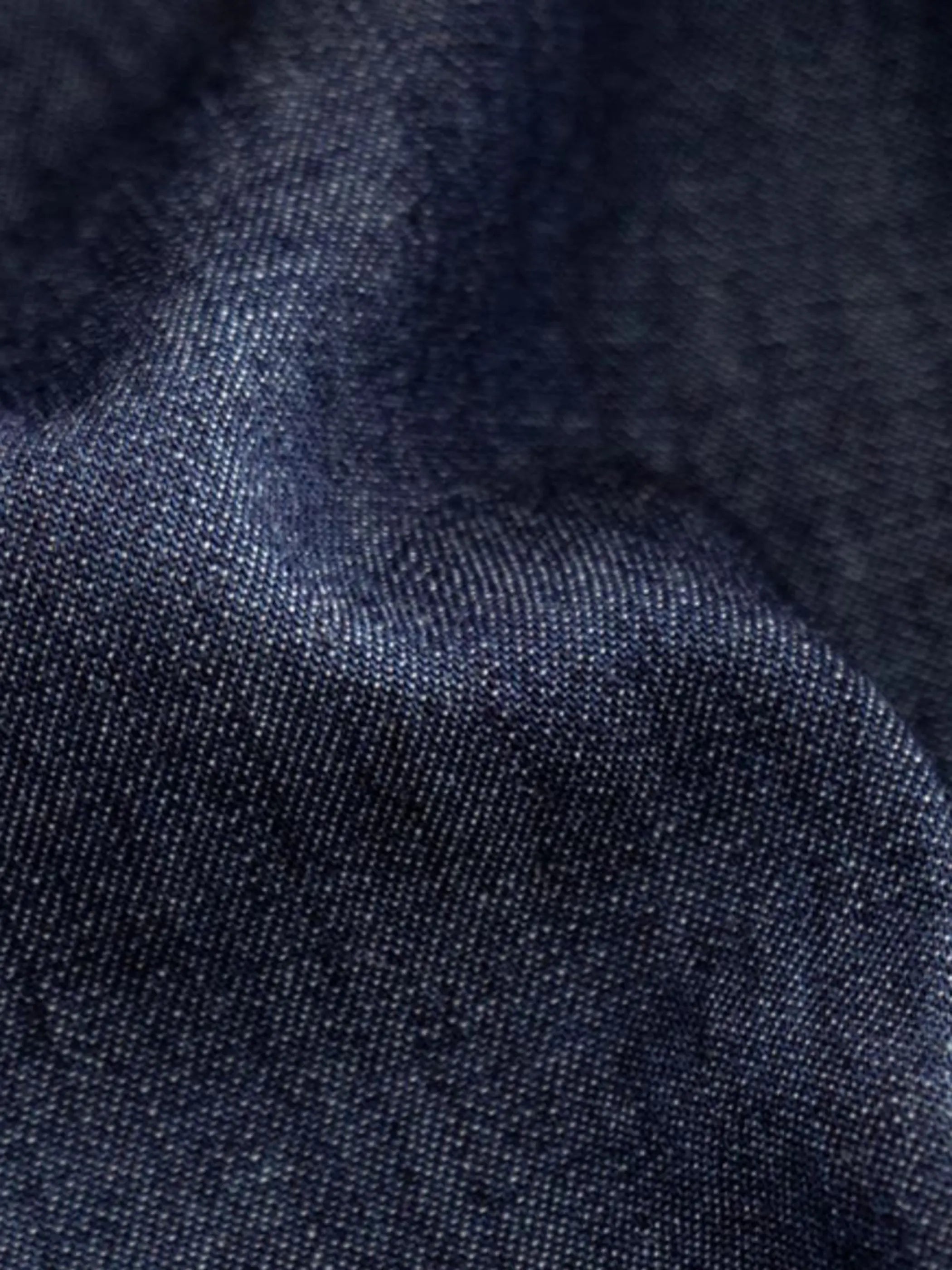 上質な綿100%デニムが生む端正な光沢とシャープなシルエットのビジネス&カジュアル両用シャツ。