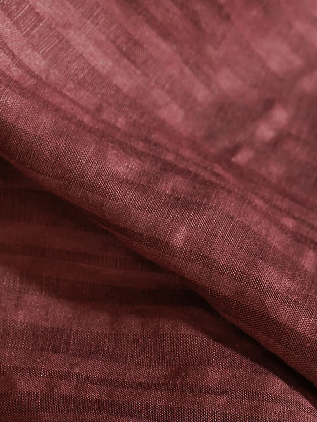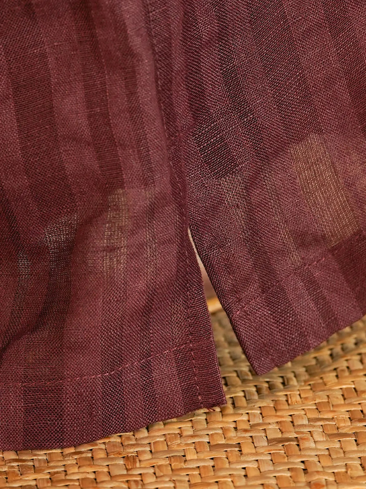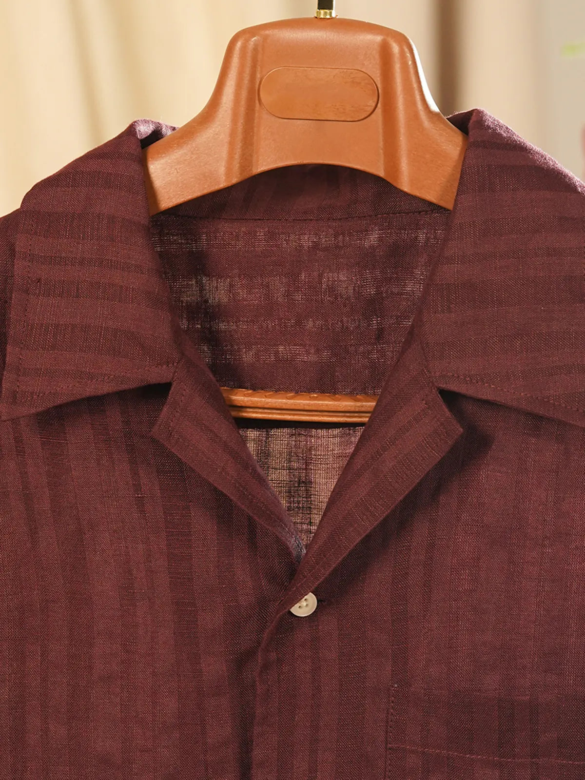 軽やかな肌触りと上品なストライプが映える、真夏も涼しい開襟リネンシャツ。