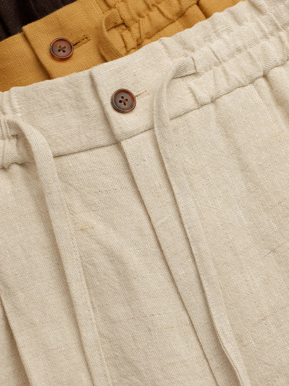 100%フランス産リネンを使用した、ドロップショルダーならぬドロップウエストのリラックスショーツ。