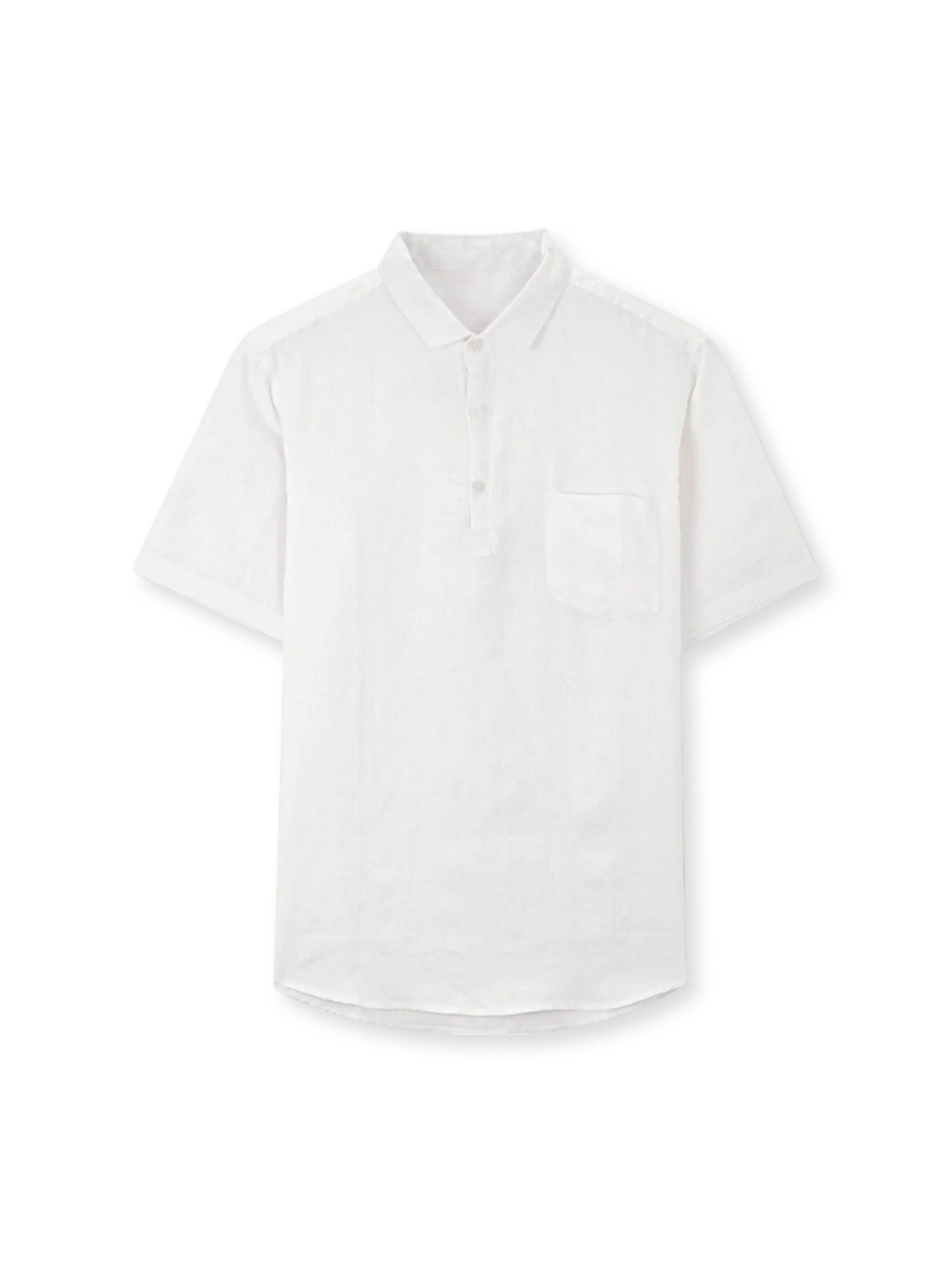 目を引くプルオーバー仕様とミニマルな襟元は、1950年代リゾートウェアのエッセンスを現代に再構築。スラブ糸ならではの微細な凹凸が肌離れを生み、真夏の蒸し暑さでも爽快な着心地をキープ。胸ポケットと緩やかなラウンドヘムが程よくリラックスしたシルエットを演出し、チノパンやデニムショーツとの相性も抜群。自然素材が放つナチュラルな風合いが、一枚で上質なカジュアルスタイルを完成させます。