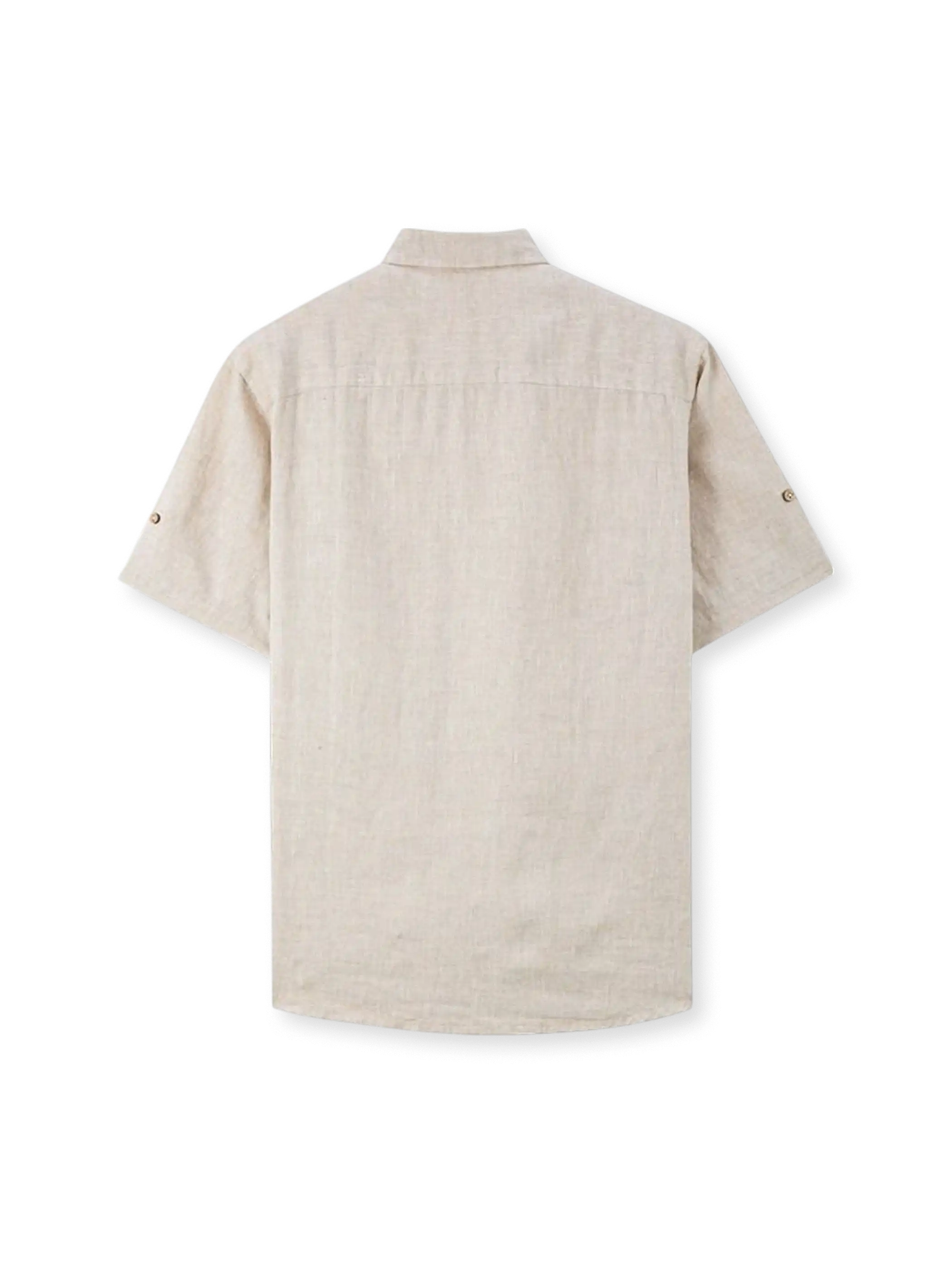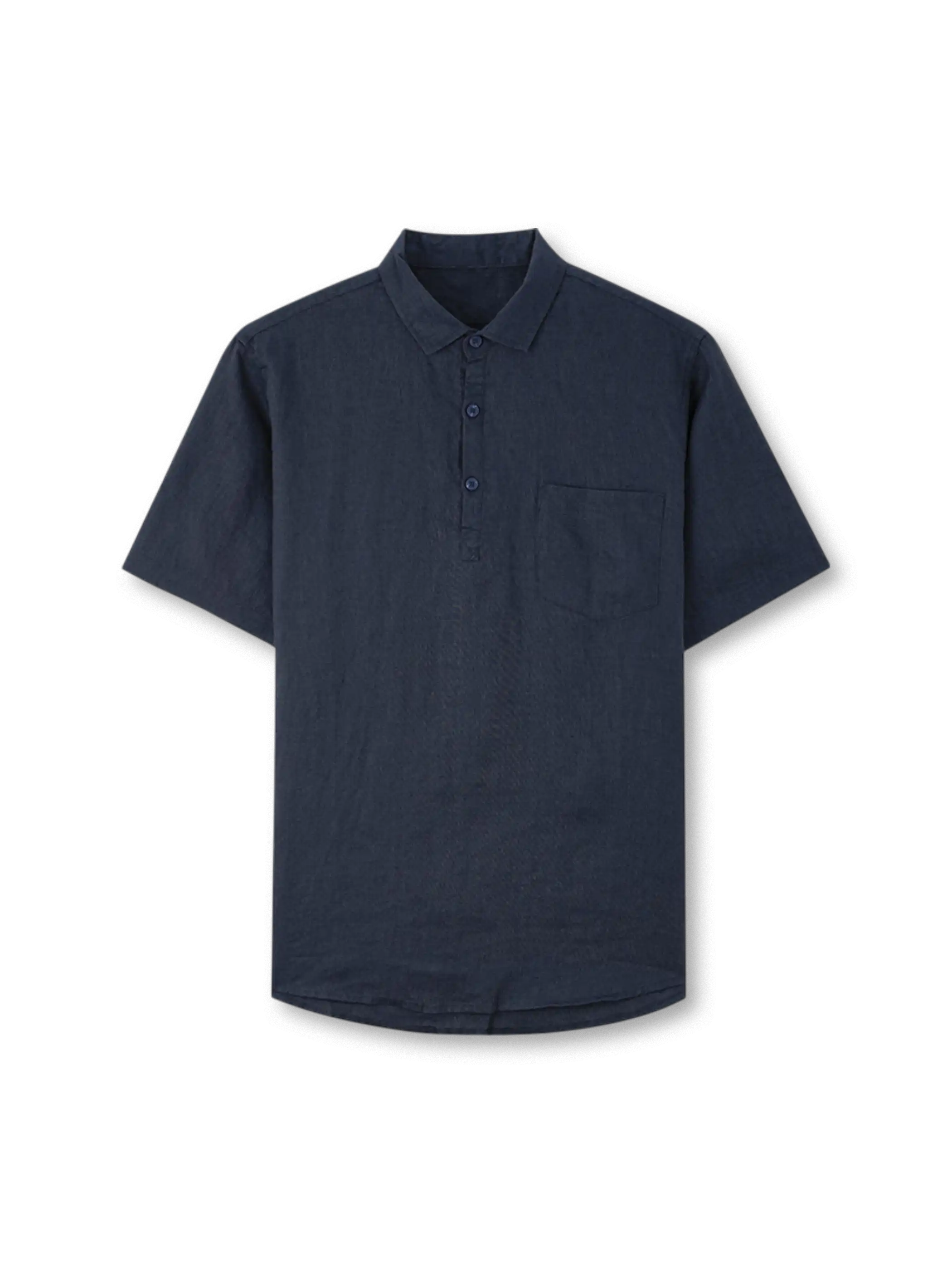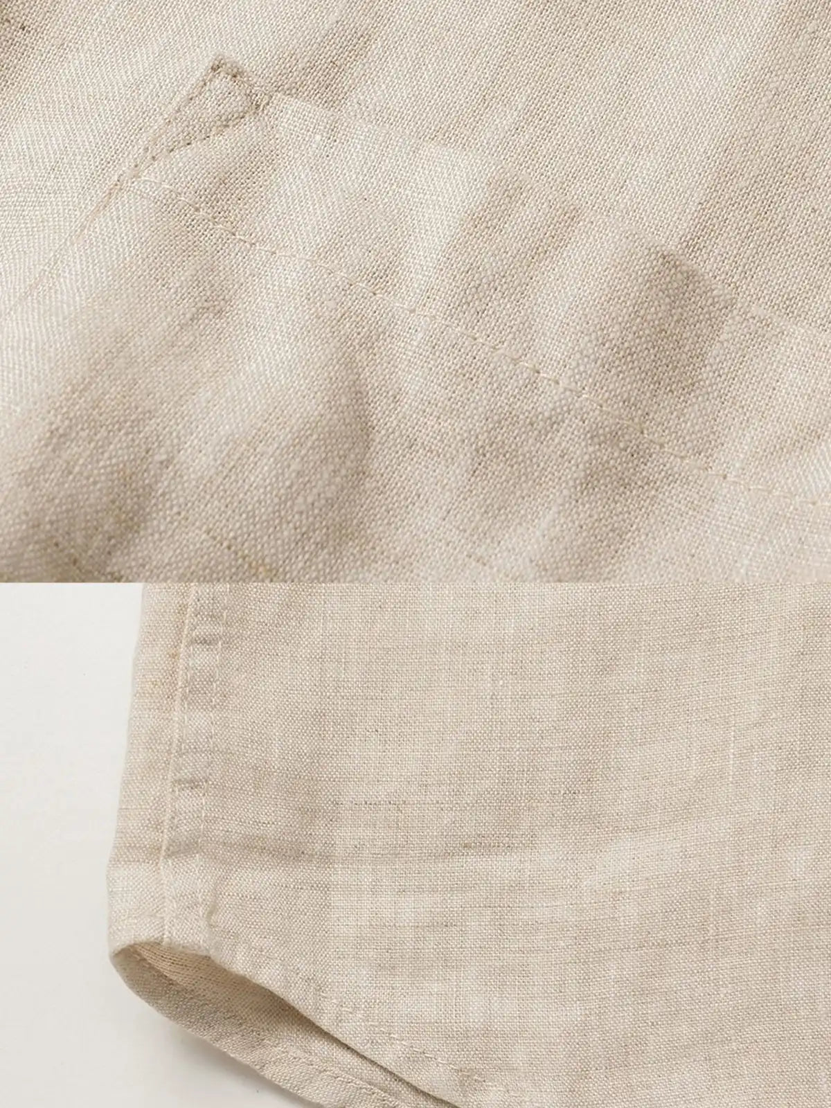 天然リネンの通気性とプルオーバーデザインが、夏の装いに洗練されたリラックス感をもたらす。
