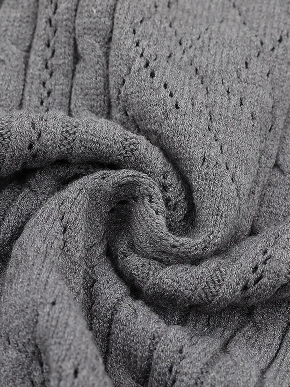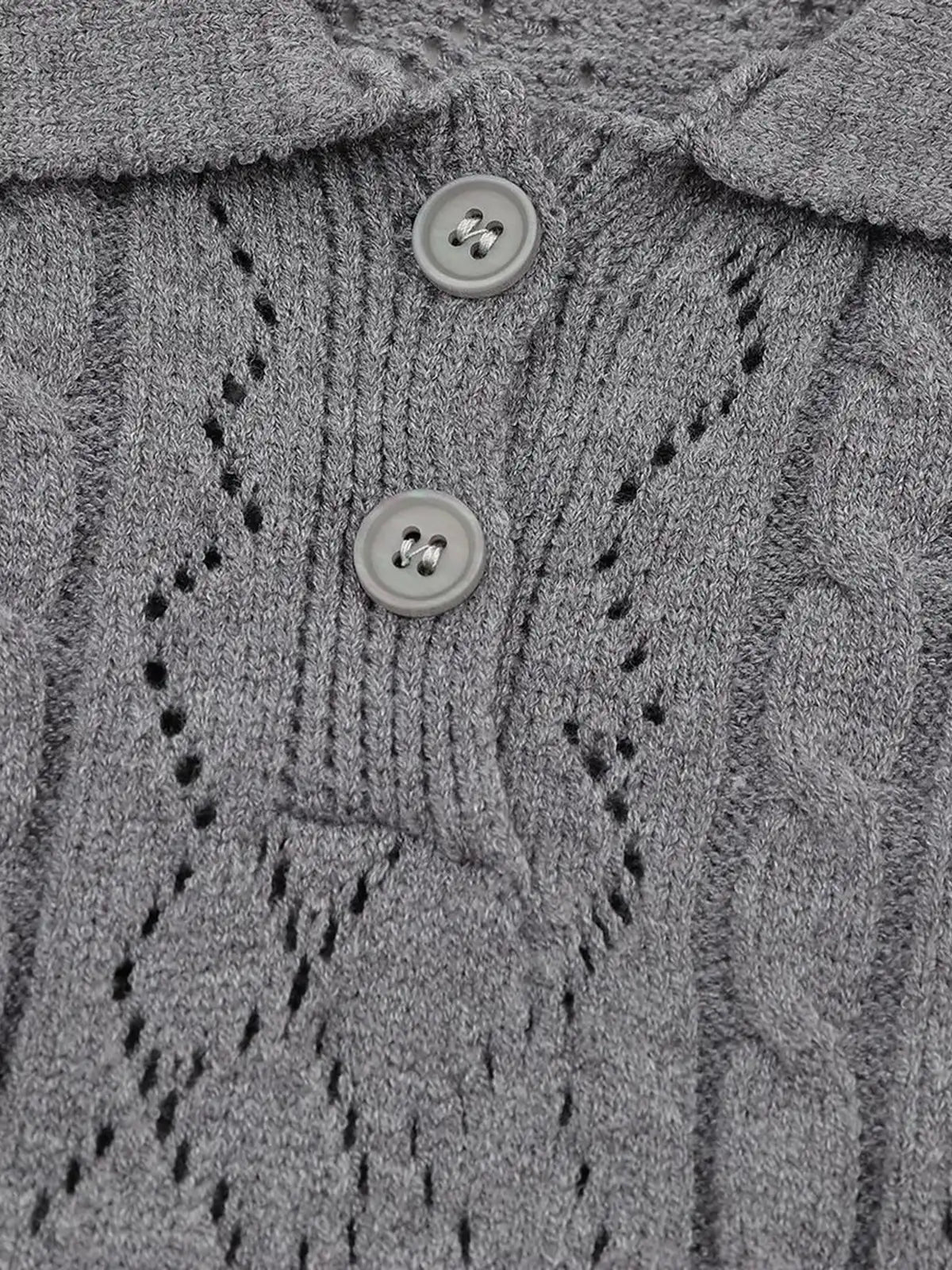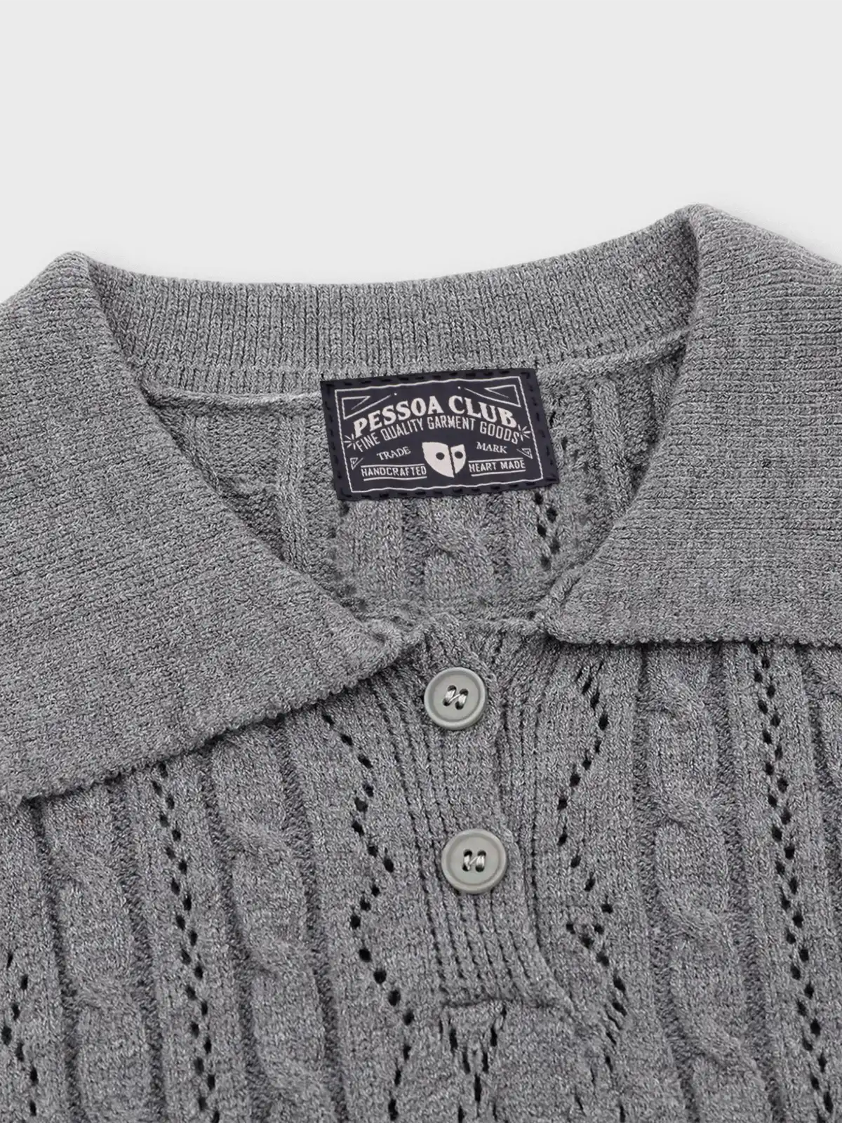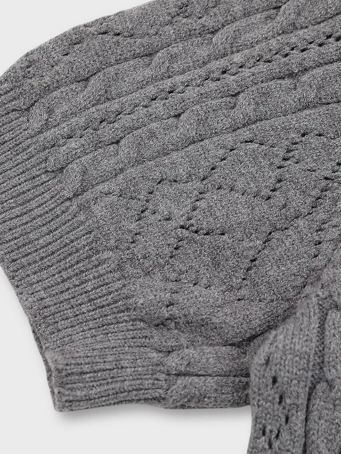 クラシカルなケーブル&アラン風の透かし柄が映える、上品な肌触りのショートスリーブニットポロ。