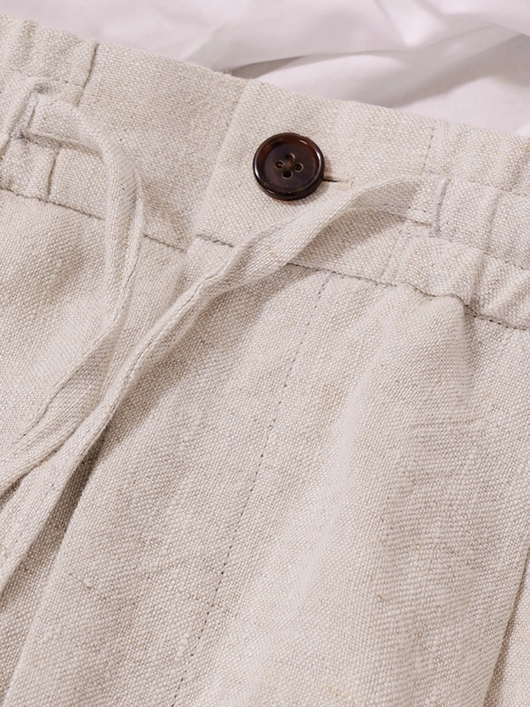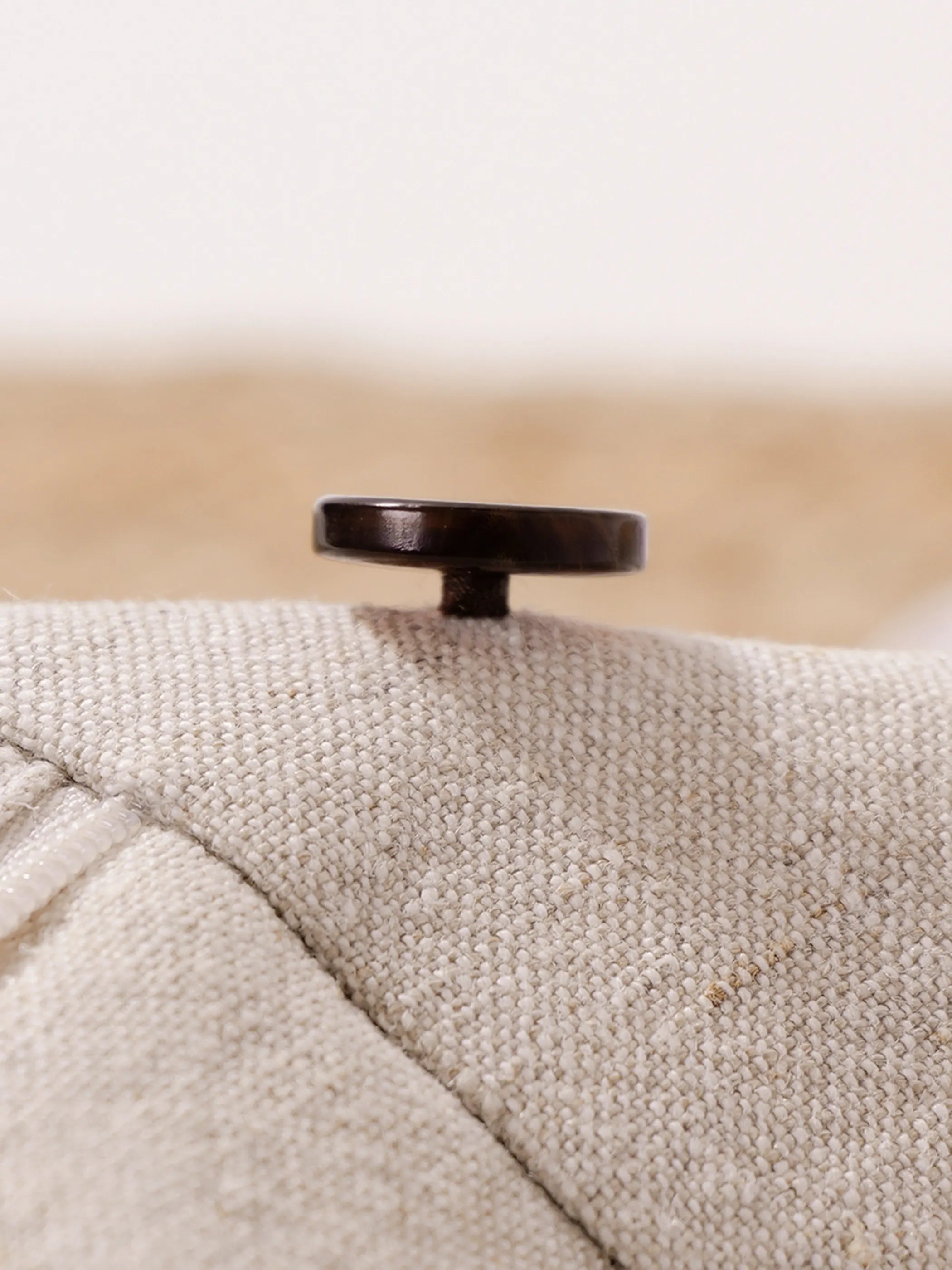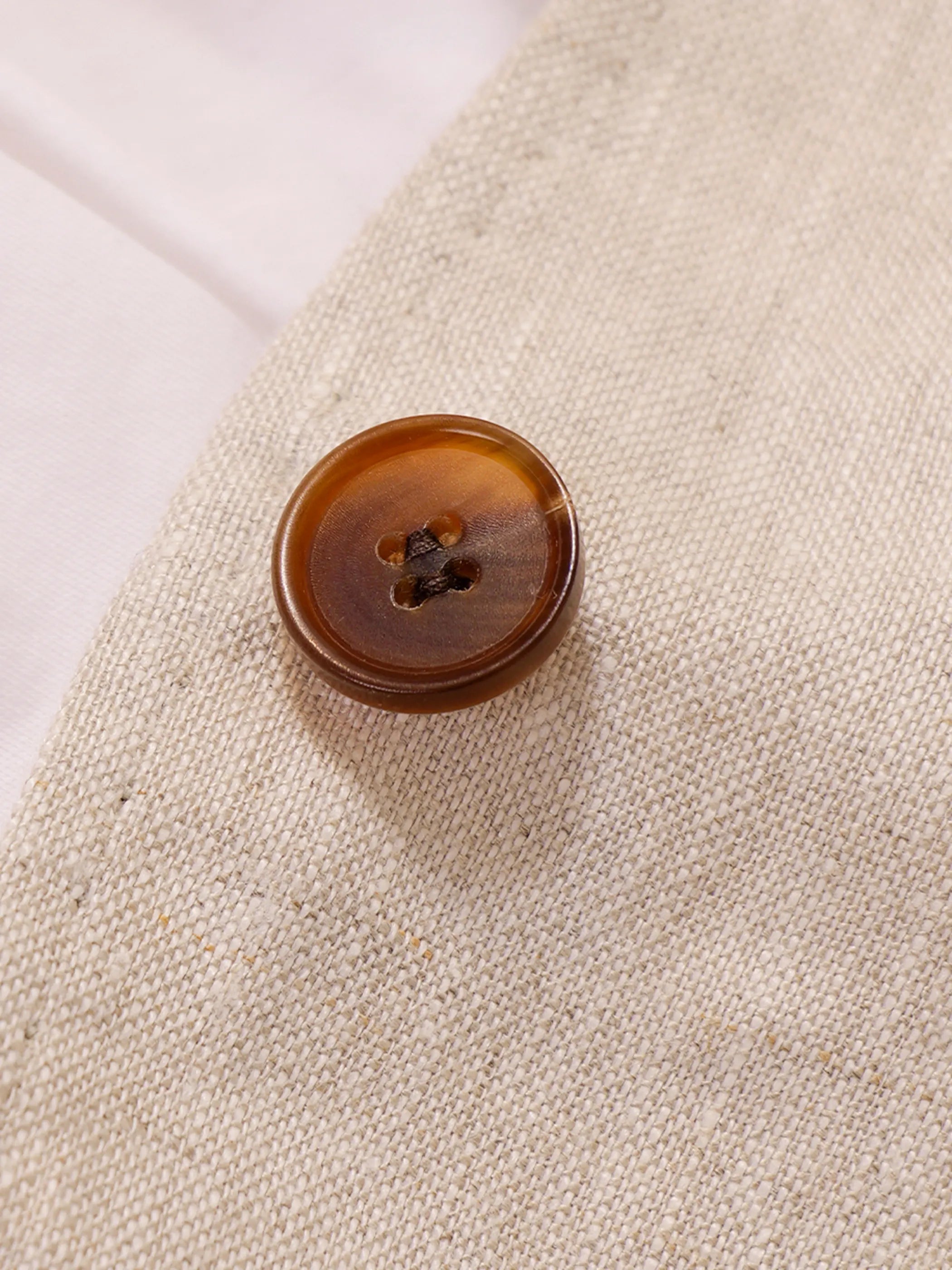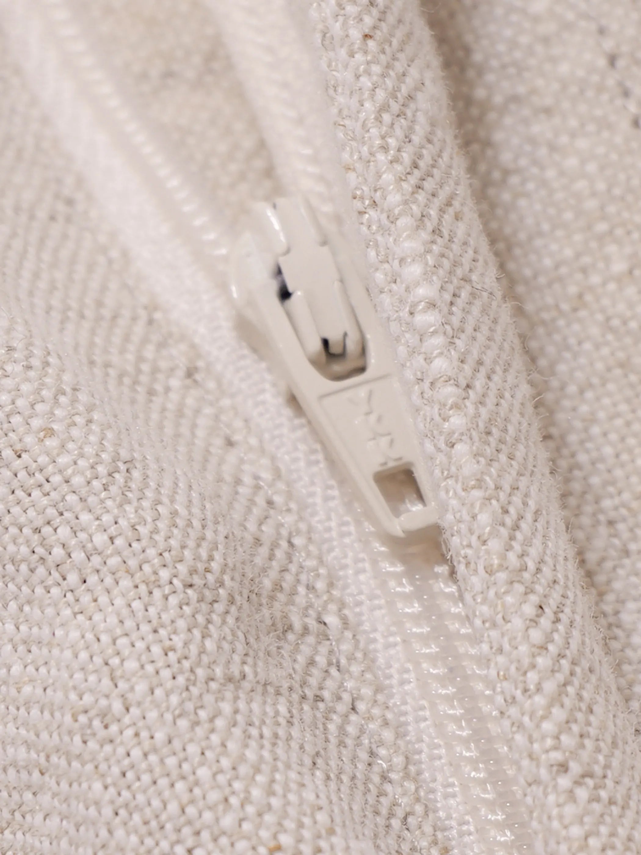 フランス・ノルマンディ産リネン100%を362g/m²の高密度6×6平織で仕立て、自然な陰影と軽やかなドレープを両立。ジャケットは襟を排したノーラペルデザインが肩頸ラインをすっきり見せ、シンプルな一粒ボタンが抜け感を添えます。パンツはハイウエスト&抽繩ウエストで視覚的に脚長効果を生み、わずかに広がるストレートラインがリラックスシルエットを演出。いずれも裏地なしの軽快仕様で、夏の通勤からリゾートまで幅広く活躍します。
