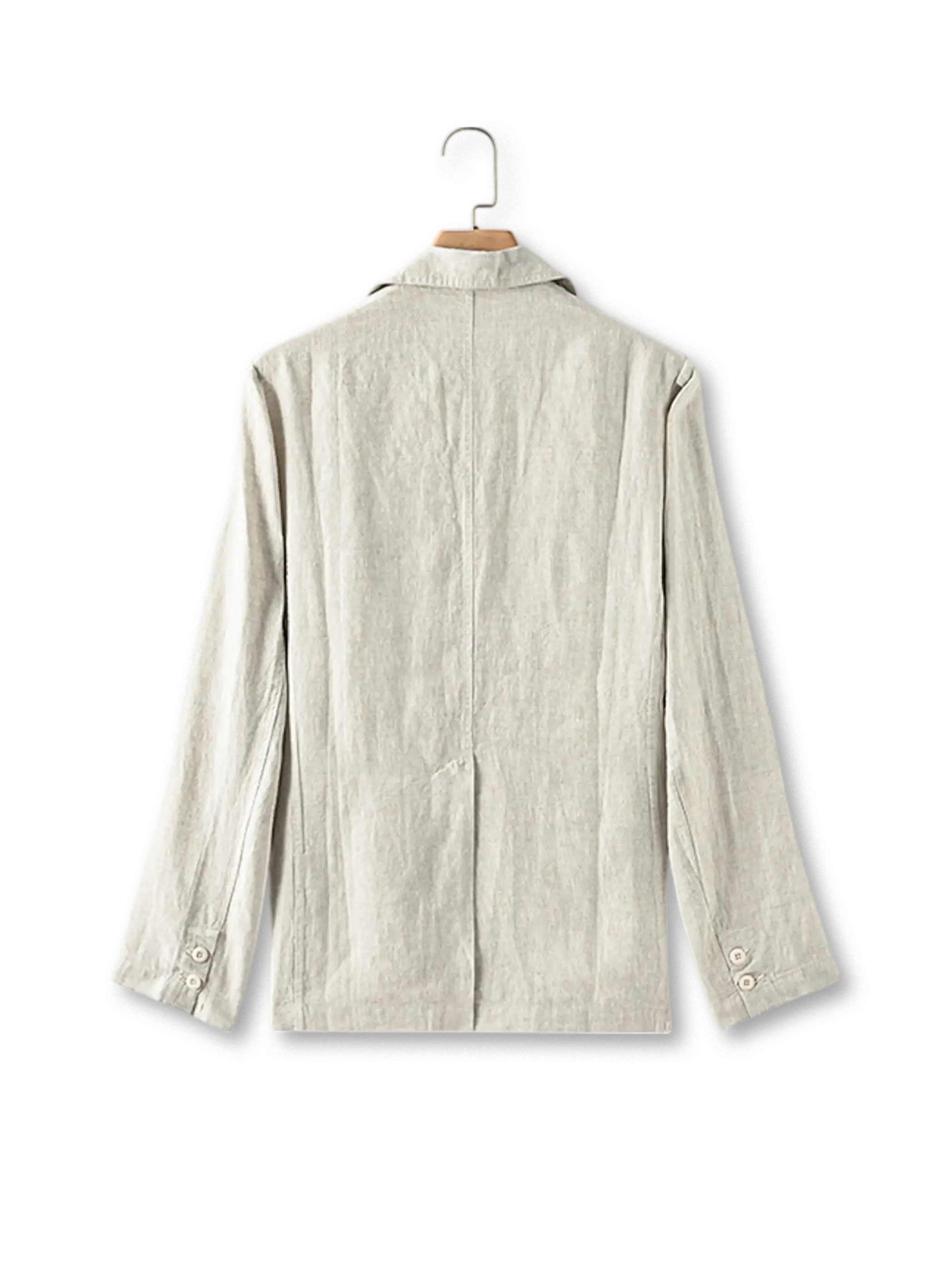 このジャケットは95%リネン混紡素材を用い、長時間の着用でも肌離れが良くドライで快適な着心地を実現。伝統的なテーラードの細部を残しつつボックスシルエットにアレンジすることで、洗いざらしの自然なシワ感とリネンならではの織りムラを美しく引き立てます。ディテールには同色の天然ボタンと背面センターベントを配し、仕立て映えする立体感をプラス。白T+デニムのカジュアルからシャツ+スラックスのビジネスカジュアルまで幅広く対応します。