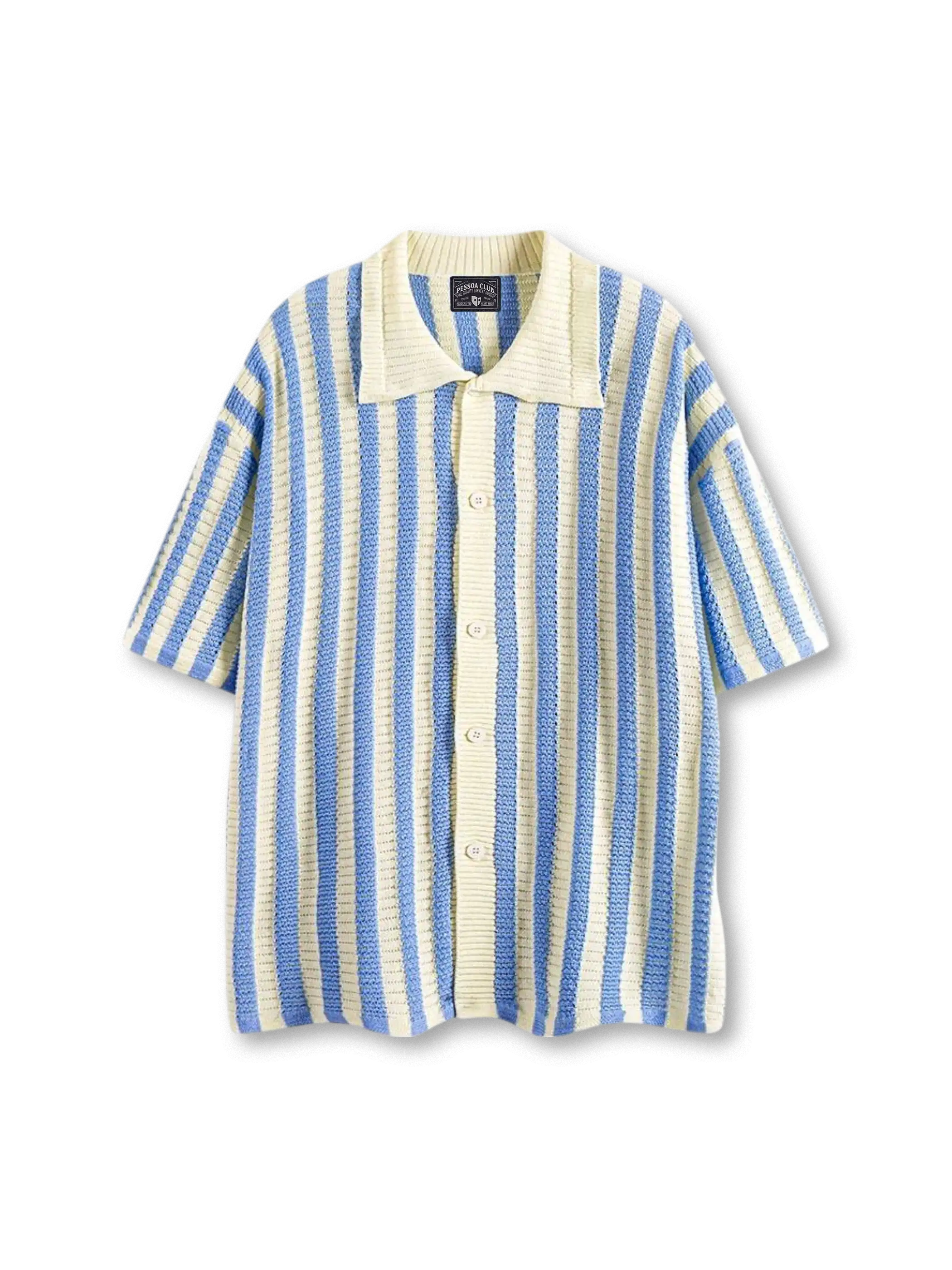 リブ編みのストライプが映える、軽やかで快適な半袖ニットシャツ。
